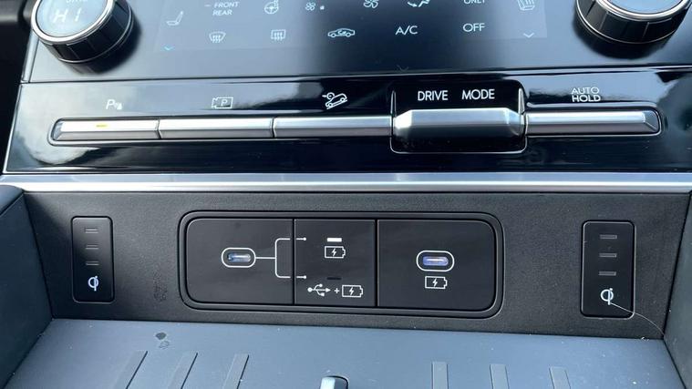 12.3" Drivers supervision instrument cluster with LCD display, 360 degree parking sensors, Blind spot collision avoidance assist (BCA), Blind spot view monitor (BVM), Bluelink and Wireless Apple Carplay/Android Auto, Bluetooth connectivity with voice recognition, Drive mode selector, Driver status monitor (DSM), Dual wireless phone charging pad, Emergency services call system, Forward collision avoidance assist (FCA 2.0), Head up Display, Highway drive assist 2 (HDA 2), Intelligent speed limit assist (ISLA), Lane departure warning system (LDW), Lane Follow Assist 2 (LFA 2), Lane keeping assist (LKA), Low washer fluid warning, Navigation based smart adaptive cruise control with stop and go, Over the air software updates (OTA), Parking Collision Avoidance Assist-Reverse (PCA-R), Power assisted steering, Remote smart parking assist, Safe exist assist (SEA), Smart electric tailgate with hand's free opening function, Surround view monitor, Self levelling suspension, Shift by Wire Gear Selector (SBW), 12.3" Touchscreen display with satellite navigation, 2nd Row USB C Ports x2 Charging, 3rd Row USB C Ports x2 Charging, Front USB C port 1 charging and 1 data/charging, Premium BOSE sound system with 12 speakers and subwoofer, Steering wheel audio, phone and cruise controls, Automatic headlights with dusk sensor, Automatic windscreen wipers with rain sensor, Body colour bumpers, Digital centre mirror, Dual glass electric tilt and slide sunroof, Dynamic welcome lights, Electric adjustable/heated/auto power folding door mirrors, Front and rear electric windows, Heated rear window, Hidden rear wiper, High beam assist, LED daytime running lights, LED Headlights, LED indicator lights, LED indicators in door mirrors, LED positioning lights, LED taillights, LED third brake light, Manual rear door blinds, Rear side wing doors, Rear windows and tailgate privacy glass, Roof rails, Solar glass windscreen and front windows, Windscreen acoustic film, Windscreen auto defog function, 2nd and 3rd row center armrest with cupholder, 3rd row head restraints, Centre rear head restraint, Dual zone climate control air conditioning, Electrically adjustable front seats with 2 way electric lumbar support, Front head restraints, Front seats with memory, Heated front seats, Heated rear seats, Height and reach electrically adjustable steering column, Leather upholstery, Leather wrapped heated steering wheel, Luggage cover, Luggage hooks, Luggage net, Multi colour LED ambient lighting, Rear head restraints, Single front passenger seat, Split folding (50/50) third row seats, Split folding (60/40), sliding and reclining second row seats, Sun Visors with driver and passenger illuminated vanity mirrors, Two front cup holders, Ventilated front seats, Trailer wiring pack - Santa Fe, 3 point seatbelts on all seats, Adjustable regenerative braking paddle shifters, Airbag - Front, front side, curtain and centre front airbags, Anti-lock brake system (ABS), Dynamic brake control, Electric parking brake with auto hold function, Electronic Stability Control (ESC), Hill start assist control (HAC), Manual child lock in rear doors, TSA (Trailer Stability Assist), Tyre pressure monitoring system, Immobiliser, Smart Key - Keyless entry with Power On/Off button, 20" Standard silver alloy wheels, Tyre mobility kit,