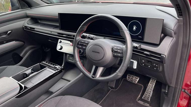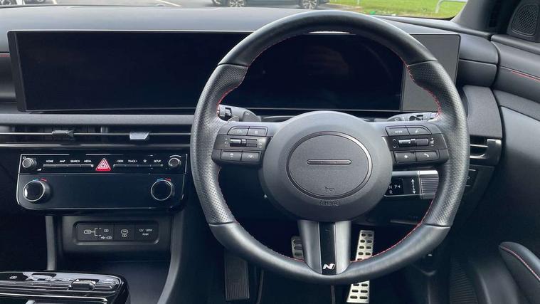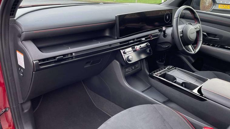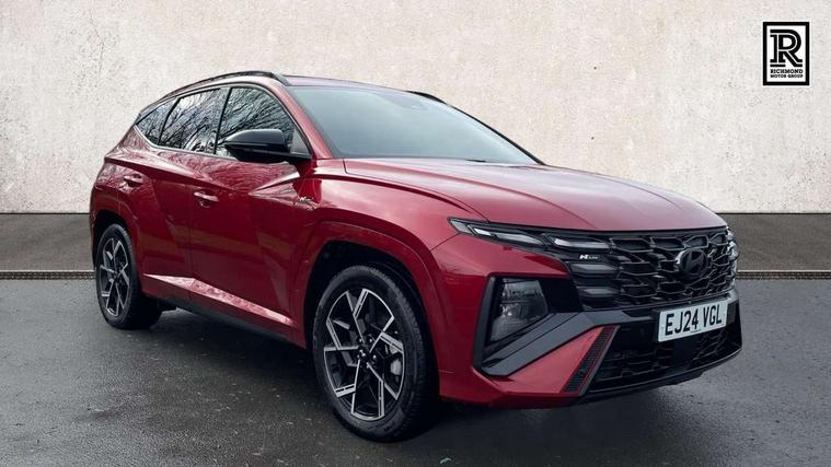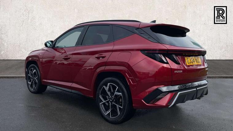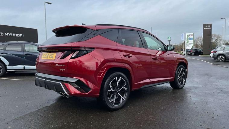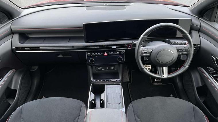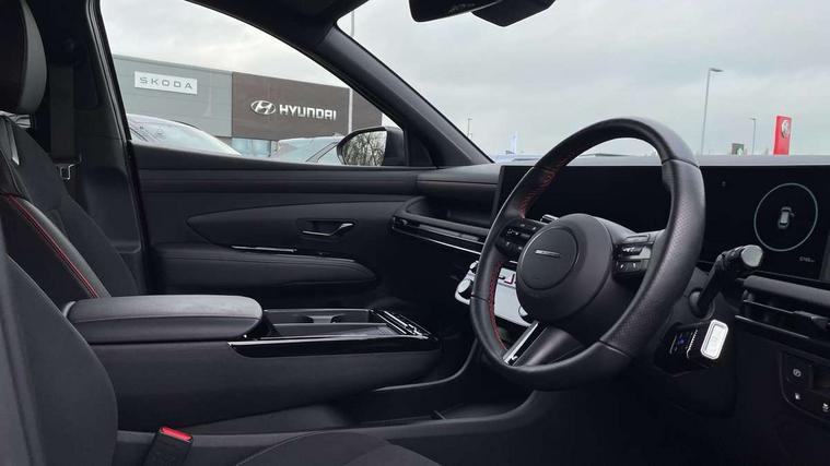 12.3" LCD display with driver's supervision instrument cluster, 12.3" widescreen navigation with bluelink and mapcare, Apple car play/Android Auto, Bluetooth system, Cruise control - smart adaptive speed control with stop and go function, Digital clock, Drive mode selector, Driver attention warning, E-call, Emergency stop signalling system, Forward Collision Avoidance Assist (FCA) - Car, Pedestrian and Cycle, Forward Collision Avoidance Assist Junction Turning (FCAJX), Front and rear parking sensors, Highway Driving Assist (HDA), Hyundai road side assistance, Intelligent speed limit assist, Lane follow assist, Lane keep assist, Over the air updates(OTA), PAS, Rear camera and guidance parking system, Rev counter, Smart power tailgate, Tailgate open warning light, Trip computer, Trip odometer, Voice recognition, Water temperature gauge, Windscreen washer fluid sensor and warning indicator, Wireless phone charging pad, 2 front and 2 rear speakers with 2 tweeters, 2 front and 2 rear USB-C ports, DAB Digital radio, Steering wheel mounted audio/phone controls, Adjustable intermittent front windscreen wipers with aero wiper blade, Auto dimming rear view mirror, Automatic defog system, Automatic headlights with dusk sensor, Automatic windscreen wipers with rain sensor, Body colour bumpers, Body colour door mirrors with integrated indicators, Body colour exterior door handles, Body coloured wheel arches, Electrically adjustable, heated and power folding door mirrors, Follow me home headlights, Front and rear electric windows with anti-trap mechanism and one touch control, Front fog lights, Glossy black bumper mouldings, LED daytime running lights, LED Headlights, LED rear lights, Positioning Lights - LED, Privacy glass - Rear windows and tailgate, Rear side wing doors, Rear wash/wipe with intermittent wipe setting, Roof rails, Soft touch rear door paneling, Tinted glass with windscreen shade band, Trailer stability assist, 12V power outlets in front console and luggage compartment, 3 seat bench in 2nd row, 40/20/40 split folding rear seat, 64 colours interior ambient lighting, Adjustable head restraints (Up and down), Cupholders in rear armrest, Door courtesy lights, Driver and passenger sunvisors with illuminated LED vanity mirrors, Driver's seat manual height adjust, Dual zone climate control, Front and rear door pockets, Front armrest with storage box, Front centre console and door bottle holders, Heated front seats, Height/reach adjustable steering column, Illuminated/air conditioned glove compartment, ISOFIX child seat anchorage points attached on outer rear seats, Leather wrapped steering wheel and gear knob, Leather/faux textile suede upholstery, LED interior lighting, Luggage compartment lighting, Luggage cover, Luggage hooks, Luggage net, Manual height adjustable front passenger seat, Map and reading lights, Metal pedals, Rear seat remote folding function, Rear side window sunblind, Reclining rear seats, Retractable load cover, Single front passenger seat, Sunglasses holder, Touch sensitive climate controls with temperature dials, TUCSON branded metal door scuff plate, Underfloor boot compartment, N Line design package - Tucson, N Line interior design package - Tucson, Trailer wiring package - Tucson, 3x3 point rear seatbelts, Active bonnet, Airbag - Front, front side, curtain and centre front airbags, Anti-lock brake system (ABS), Brake assist function, Childproof rear door locks, Curtain airbag roll over sensor, Downhill brake control, Electric parking brake, Electronic stability control, Front and rear seatbelt reminder, Front passenger airbag deactivation switch, Front seatbelt pretensioners, Hill start assist control (HAC), Multi-Collision braking, Outer rear seatbelt height adjustment, Seatbelt height adjustment for front seats, Traction control, Tyre pressure monitoring system with individual tyre pressure display - TPMS, Vehicle stability management, Deadlocks, Immobiliser, Locking wheel nuts, Remote control central locking, Smart key with keyless entry and engine start/stop button, Speed sensitive auto door locking, Thatcham category 1 alarm, 19" Alloy wheels, Tyre repair kit,