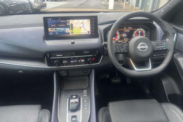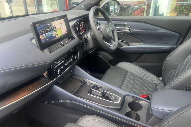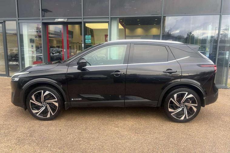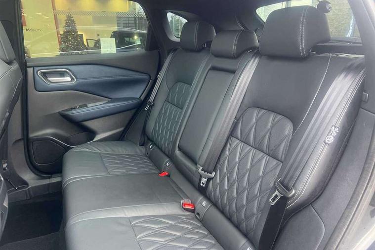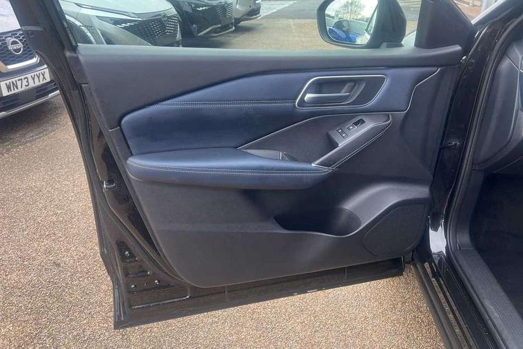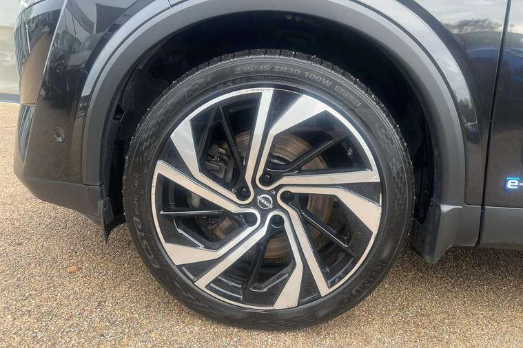 Advanced windscreen head up display, Android auto/Apple CarPlay (Wired), Blind spot warning, Drive modes (sport, normal, eco), Electric speed sensitive power steering, Emergency and breakdown call, Front and rear parking sensors, Full Digital 12.3" TFT Digital Combimeter, Google maps services - search, weather, 3D maps and Google street view, Hands free power tailgate, Idle stop/start system, Intelligent around view monitor, Intelligent Cruise control (ICC), Intelligent driver alert system, Intelligent forward collision warning, Intelligent lane intervention, Lane departure prevention, Lane departure warning system, Lane keep assist, Moving object detection, Nissan connect 12.3 inch touchscreen infotainment system, Nissan connect navigation, Pro pilot park assist, ProPILOT with Navi-Link, Push button starter, Rear cross traffic alert, Rear view camera, Remote control services - door locks, lights, horn and car locator, Telematics - notifications and connectivity services, TomTom live traffic services, Traffic sign recognition with legal speed adjustment, Trip computer, Virtual personal assistant and firmware over the air capability, Wireless apple carplay, Wireless charging pad, 10 Bose speakers - 2 tweeters, 6 high and medium frequency door speakers and 2 in subwoofer, AM/FM audio system with DAB, Bluetooth audio streaming, Bose acoustimass bass box, Digital amplifier, Front USB connections (Type-A and Type-C), Rear USB charging only ports (Type-A and Type-C), Auto dimming rear view mirror, Auto rear wiper when reversing, Automatic hazard signal with emergency stop signal, Body colour mirror caps, Body coloured door handles, Bodyside mouldings, Chrome side window finisher, Door handle with button, Door mirror memory, e-POWER badging, Electric auto folding door mirrors, Electrically adjustable and heated door mirrors with LED turn indicator, Follow me home headlights, Front and rear LED turning signals, Headlights auto levelling system, Intelligent auto headlights, LED daytime running lights, LED front fog lights, LED headlights with adaptive driving beam, LED rear lights, One touch front and rear electric windows with remote opening and closing, Privacy glass, Rear bumper with graphite insert, Rear reversing light (bulb lighting), Rear roof spoiler, Rear side wing doors, Rear styling plate, Reverse tilting door mirrors, Shark fin antenna, Splash free rain sensing wipers, Super UV and infrared cut glass, Thermaclear heated windscreen, Three blink turn signal, 12v power socket in dashboard and luggage, 2x Rear coat hooks, 3 bench rear seats in 2nd row, 3 rear headrests, 4 folding assist grip, 6 Luggage hooks - 4 on floor, 2 on side, 60/40 split folding rear seat bench, Ambient lighting around centre console, Ambient lighting in front doors, Centre console storage tray, Chrome interior door handles, Dark black/blueish PVC wrapping, Dark headlining, Driver and front passenger sunvisors with illuminated vanity mirrors, Driver seat back pocket, Dual zone automatic climate control with pollen filter, e-POWER shifter, Electric 4-way lumbar support for drivers seat, Electric adjustable 4 way lumbar support for passenger seat, Electrically adjustable driver seat with massage and memory functions, Front and rear door storage, Front centre console and armrest, Front cupholders x 2, Front door with bottle holders, Glovebox with light, Hard trunk cover, Heated front seats, Heated steering wheel, Height adjustable driver's seat, Height adjustable front headrests, Height adjustable passenger seat, Leather steering wheel, Luggage board system, Luggage space lighting, Manually adjustable passenger (slide recline + lifter), Multifunction steering wheel, Passenger seat back pocket, Quilted premium leather upholstery, Rear armrest with 2 cupholders, Rear door bottle holders, Single front passenger seat, Soft PVC kneepad, Steering wheel switches, Tilt/telescopic adjustable steering wheel, Two rear isofix child seat anchorage points with top tether, Welcome light and doors with console tray ambient lighting, Glass roof pack with roof rails - Qashqai, 3x3 point rear seatbelt pretensioners + load limiters, ABS with EBD and brake assist, Active brake limited slip, Auto hold function, Child locks on rear doors, Curtain and front side, far side airbags, Driver and passenger airbags, Driver, passenger and 2nd row rear seat belt reminder, Electronic parking brake, Front seatbelt pretensioners + load limiters, Height adjustable front seatbelts, Hill start assist, Intelligent blind spot intervention, Intelligent front emergency braking with pedestrian, cyclist recognition and junction assist, Intelligent rear automatic braking, Tyre pressure monitoring system, Vehicle dynamic control, Advance intelligent key with driver memory storage (seats, mirrors, audio), Capless fuel filler, Engine immobiliser, Remote central door locking with deadlocking, Thatcham Cat.1 alarm, Interior instrumental panel C finisher, 20" Diamond cut alloy wheels, Tyre puncture repair kit,