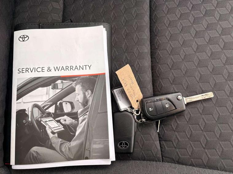Adaptive cruise control, Adjustable speed limit with speed warning, Bluetooth connectivity, Colour binocular inspired displays with digital speedometer, E-call, Electric power steering, Hybrid energy display, Multi information display switches on steering wheel, Reversing camera, Smartphone integration with Apple CarPlay and Android auto, Tailgate, Voice recognition, Vehicle Stability Control (VSC), 4 speakers, 8" Multimedia display touch screen, USB connection, Acoustic windscreen glass, Auto windscreen wipers, Automatic headlights, Body coloured door mirrors, Electric adjustable heated door mirrors, Follow me home headlights, Front auto power windows with anti jam protection, Full LED rear lights, LED daytime running lights, LED front fog lights, LED front light guide, LED Headlights, LED High mounted stop lamp, LED Indicators, LED rear light guide, Manual headlight levelling, Painted chequered front grille, Rain sensor, Rear auto power windows with anti jam protection, Rear privacy glass, Rear side wing doors, Rear spoiler, Rear wiper, Shark fin antenna, Turning signal integrated indicators in door mirrors, Variable front intermittent wipers, 3 adjustable rear headrests, 3 spoke leather steering wheel, 60/40 split folding rear seat, Active headrests, Adjustable boot height, Auto air conditioning, Coat hooks in rear grab handles, Cup holders (2 front & door), Data Communication Module (DCM) connected services, Fabric upholstery, Front armrest, Glovebox, Grey roof lining, Height adjustable driver's seat, Isofix seat fixing, Leather gearshift, Pollen filter, Shopping bag hooks, Single front passenger seat, Tilt/telescopic steering column, 3 point seatbelts on all rear seats, ABS+EBD+Brake assist, Electronic parking brake, Emergency brake light system (EBS), Front passenger airbag on/off switch, Front seatbelt reminder, Hill start assist control (HAC), Rear child proof door locks, Rear seat belt reminder, Supplemental Restraint System (SRS) 8 airbags: Driver & passenger's airbags, dual side curtain airbags, side impact airbags, front centre airbag, Toyota Safety Sense 2, Precollison + Night time Pedestrian & Cyclist Detection, Lane Trace Assist, Auto High Beam, Intelligent ACC & Road Sign Assist, Tyre pressure warning system, 2x Master key, Alarm/immobiliser, Remote powered central double locking doors, Soft touch instrument panel, Space saver spare wheel,