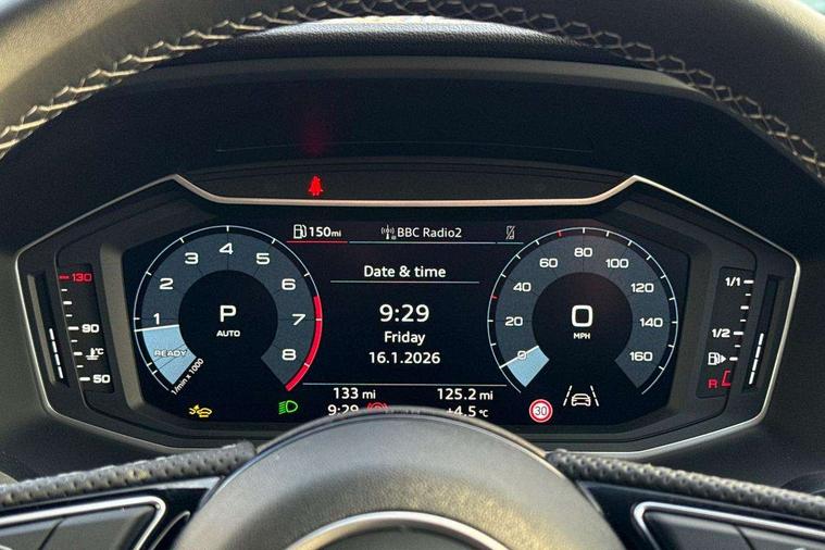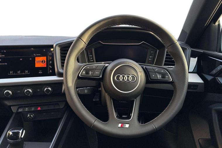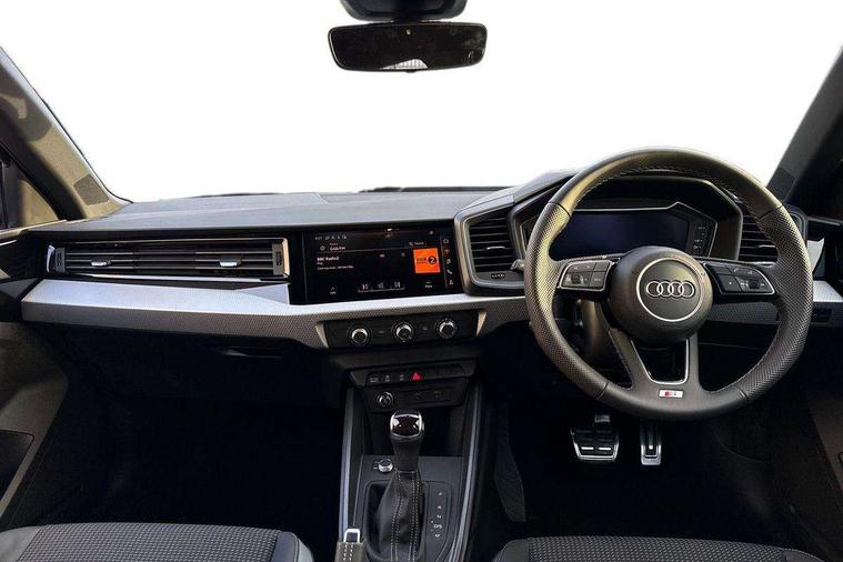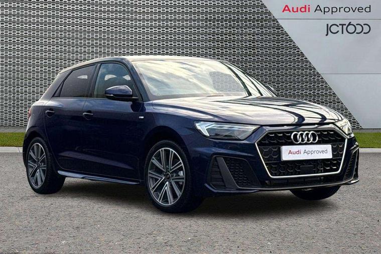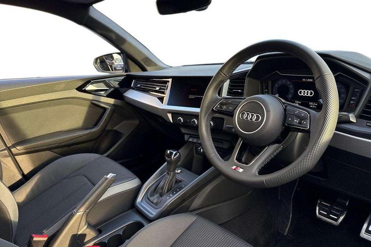 10.25" Digital instrument cluster display classis style instrument dials + speed, odometer, time, outside temperature, telephone menu + fuel level warning, Advanced driver attention and drowsiness monitor, Audi connect emergency call and service, Audi drive select, Audi remote connect and control, Audi smartphone interface, Bluetooth interface, Camera based traffic sign recognition, Cruise control, Driver's information system, Electromechanical power steering, Lane departure warning system, Rear parking sensor, Service interval indicator, Speed limiter, Start stop system with recuperation, Voice control system, Washer fluid level indicator, Sports suspension, 2 x USB type C connection points, 6 loudspeakers, DAB Digital radio, MMI radio plus with 10.1" colour MMI display screen and MMI touch, Auto dimming rear view mirror, Body coloured door mirrors, Door sill trims with aluminium inlays and S line logo in front, Electric front and rear windows, Electrically adjustable, heated, folding door mirrors with integrated LED side indicator, Front side air inlets in grained matt black and C frame in anthracite black, Headlight cleaning system, Heat insulating glass windscreen and side windows, Heated rear windscreen, High level LED brake light, LED daytime running lights, LED headlights with range control LED rear lights + dynamic rear indicators, Light and rain sensors, Privacy glass, Radiator grille and rear diffuser in matt anthracite black, Radiator protective grille frame in matt aluminium silver, Rear fog lights, Rear side wing doors, Rear wiper, S line badges on front wings, Side front spoiler lips in grained matt black, 12V socket in centre console with two cup holders, 3 rear seats with headrests, 3 seat bench in 2nd row, 3 spoke leather multi-function plus steering wheel features S badging and grips in perforated leather with contrast stitching, 40:60 Split folding rear seat or fully collapsed, Black cloth headlining, Front and rear velour black floor mats with contrast stitching in fine silver, Front head restraints, Front passenger seat, Height and reach adjustable steering wheel, Interior lighting includes roof module, front and rear reading lights and right luggage compartment lighting, ISOFIX child seat mounting for front passenger and outer rear seats including top tether attachment point of outer rear seats, Leather gear knob with aluminium trim, Leather handbrake grip, Manual air conditioning, Manual height adjustable for driver and front passenger seat, Manually adjustable lumbar support in front seats, Stainless steel pedals, Ambient lighting package - A1, Luggage compartment pack - A1, S line exterior styling pack - A1 Sportback, 3x3 point rear seatbelts, Audi pre-sense front with pedestrain and cyclist recognition, Brake assist function, Driver and front passenger airbag with front side and head airbags, Electronic Stability Control including ABS, EBD, ASR and EDL, Front passenger airbag deactivation switch, Hill hold assist, Manual rear child locks, Seatbelt height adjustment for front seats, Seatbelt monitoring, Tyre pressure loss indicator, Warning triangle and first aid kit, Anti theft alarm, Anti theft wheel bolts, Immobiliser, Remote control key with safelock, Aluminium trim for control switches, air vents and digital instrument cluster, Black dashboard, Silver grey inlays polygon structure in diamond paint finish, Structured grey accent surfaces insert of air vents, interior door handle recesses and centre console in quartz paint finish,