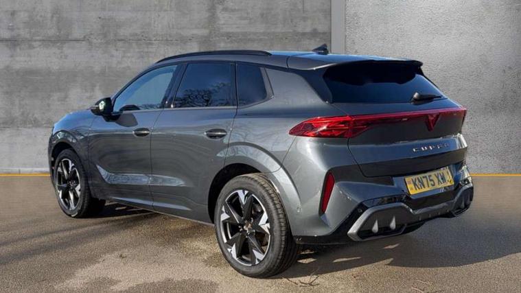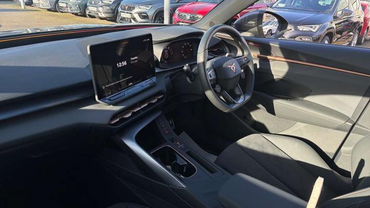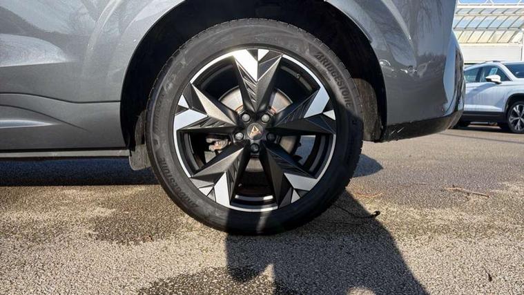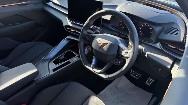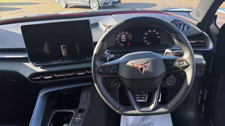 10.25" digital cockpit and configurable dashboard, Adaptive cruise control with follow-to-stop and speed limiter, Advanced driver alert system, Advanced lane assist with semi-automatic vehicle control in a medical emergency and traffic jam assist, Driving profile selection and conventional shock absorber, Dynamic road sign display, E-call, Electric tailgate with virtual pedal, Emergency steering support with turn assist, Front and rear parking sensors, Front assist (Forward collision warning with automatic braking) with multifunction camera and front cross traffic assist, Head up Display, Intelligent park assist, Media system with Nav - 12.9" touch display, voice control, full link phone (wired/wireless), DAB and Steering wheel mounted controls, Rear traffic assist, Side and exit assist, Speed sensitive power steering, Start/stop system with regenerative braking, Top view camera (front camera, rear camera, 2 side cameras), Wireless phone charger, Auto dimming rear view mirror, Black roof rails, CUPRA 3D rear lights with ceremony & swiping indicator and illuminated logo, Dark tinted rear windows, Daytime running lights with automatic headlight control and Coming and Leaving home function, Door mirrors with memory function and lowing function on passenger mirror, Dynamic headlight range control, Electric front/rear windows, Electrically adjustable, heated and folding door mirrors, Front fog lamps with cornering function, Heat reflecting windscreen, High beam assist, LED headlamps with signature "CUPRA LED", Rain sensing wipers, Rear fog light on one side, back up light on both sides, Rear side wing doors, Rear wash/wipe, Third brake light, Welcome lights (within exterior mirror housing), 3 seat bench in 2nd row, Black roof lining, Cupra sports pedals, Dinamica cloth upholstery, Driver seat memory function, Electrically adjustable front seats including lumbar support, Four x USB Type C ports (2 in front and 2 in rear), Front and rear head restraints, Front and rear reading lights X 4, Front centre armrest, Heated front seats, Heated leather wrapped multi function sports steering wheel with tiptronic, Illuminated interior front door sills, Isofix, Operating voltage 12V, Single front passenger seat, Smart wraparound interior lighting, Sunvisors with illuminated mirror, Three zone climate control with control panel in rear, Unsplit rear seat bench, split folding backrest, with centre armrest, Variable luggage/load compartment floor, 3 point seatbelts in front with pretensioner and electric height adjustment, 3 point seatbelts on all rear seats, Brake control system - ESC and brake booster, Child proof door locks, Driver and front passenger airbags, Electronic parking brake, Front and rear disc brakes, Front interaction airbag, Front passenger airbag deactivation switch, Front side airbags with curtain airbags, Pre-crash front and rear seat belt tensioner, window closure and hazard lights, Tyre pressure monitoring system, Visual and acoustic seat belt reminder, electric contact in front and rear, Anti theft alarm, Keyless locking and starting system with keyless access, Locking wheel bolts, Black decorative trims, Chrome interior detailing, 19" Spectrum exclusive machine alloy wheels, Tool kit,