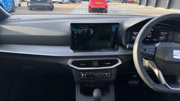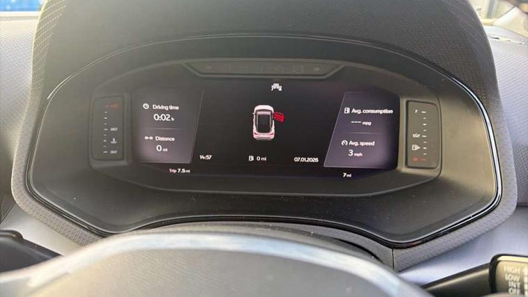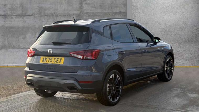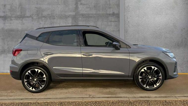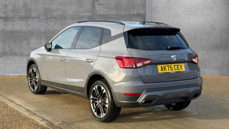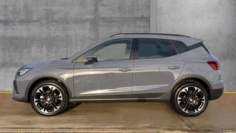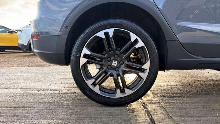 'Lights On' Reminder warning buzzer, 10" Digital cockpit, Digital clock, E-call, Electric speed sensitive power steering, Front parking sensors, Full link smartphone integration with mirror link, wireless apple carplay, Google android auto + USB Type C cable for apple and android devices, Low fuel warning light, Outside temperature display, Rear view camera, RPM counter, SEAT Drive profile - Four different models normal-sport-eco-individual, steering response, throttle response and gear shifts mode, Trip computer, Wireless phone charger, 9.2" colour touchscreen with navigation system, voice control and USB port (type c), Bluetooth interface for hands free and audio streaming, DAB digital radio and AM/FM radio, Steering wheel mounted audio controls, Anti theft roof antenna, Auto dimming interior rear view mirror, Automatic activation of hazard warning lights, Black roof rails and window surrounds, Body coloured bumpers, Body coloured door handle inserts, Dark tinted rear windows, Electric front/rear windows, Electrically adjustable, heated and folding door mirrors, Front fog lights with cornering function and rear fog light, LED 3rd brake light, LED daytime running lights, LED rear tail lights and licence plate lights, Protective side mouldings, Rain sensing wipers, Rear side wing doors, Rear spoiler, Rear window wash/wipe, Roof colour door mirrors, SEAT design Full LED automatic headlamps with dynamic headlight range control, coming and leaving home feature, Twin exhaust pipe styling with double flow exhaust pipe, Visible VIN plate, 2 cupholders, 3 seat bench in 2nd row, 60/40 split folding rear seat, Aircare filter, Black headliner, Cloth upholstery with embossed textile/Sport bucket seats, Double boot floor, Driver sunvisor with covered mirror + card holder, Dual zone climate control, Front courtesy light with front reading lights, Front seat back storage pockets, Heated front seats, Height adjustable front seats, Height/reach adjustable steering column, Illuminated air vent surrounds, Interior ambient lighting, Interior light in footwell, central console and door panel, ISOFIX points in outer rear seats with top tether anchorage points, Passenger sunvisor with vanity mirror, Perforated flat bottomed leather steering wheel/gear knob/handbrake with red stitching and FR logo, Red coloured interior air vents, Single front passenger seat, Steering wheel mounted gearshift paddles, Two front and three rear height adjustable headrests, Interior chrome pack - Arona, Safe and driving pack (S) - Arona, Storage pack - Arona, 3 point seatbelts on all rear seats, ABS, Active front headrests, Child locks on rear doors, Driver and front passenger airbags with front passenger airbag de activation, front side and curtain airbags, Emergency Brake Assist (EBA) and front assist, Front and rear seatbelt reminder, Hill hold control, Multi-Collision braking, Tiredness recognition system, Traction control, Tyre pressure monitoring system, Anti-theft alarm (perimeter and interior monitoring) with backup horn and towing protection, Central locking with radio remote control, interior controls and SAFELOCK, Deadlock, Electronic engine immobiliser, KESSY Keyless entry and go, Locking wheel bolts, 18" Performance machined alloy wheels in black,