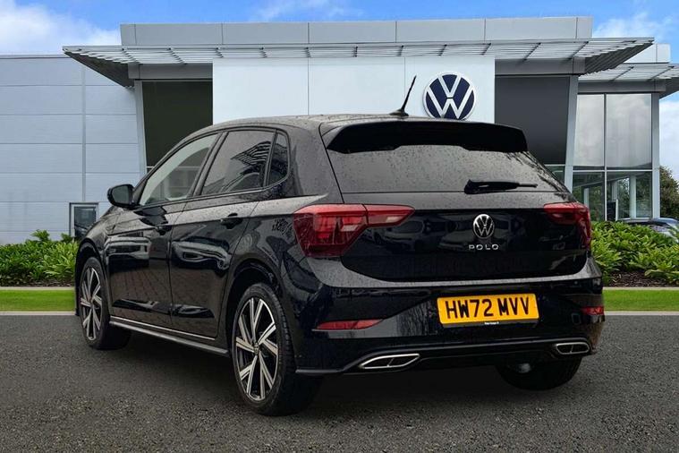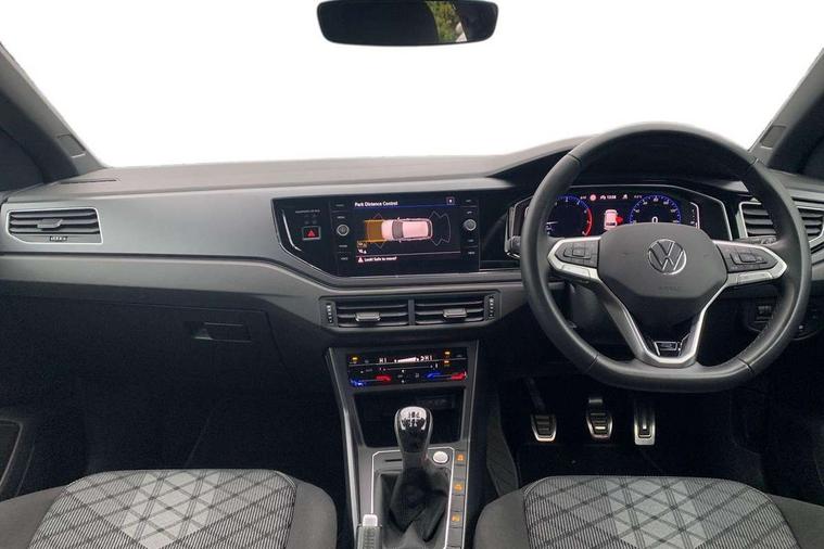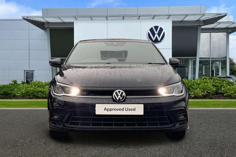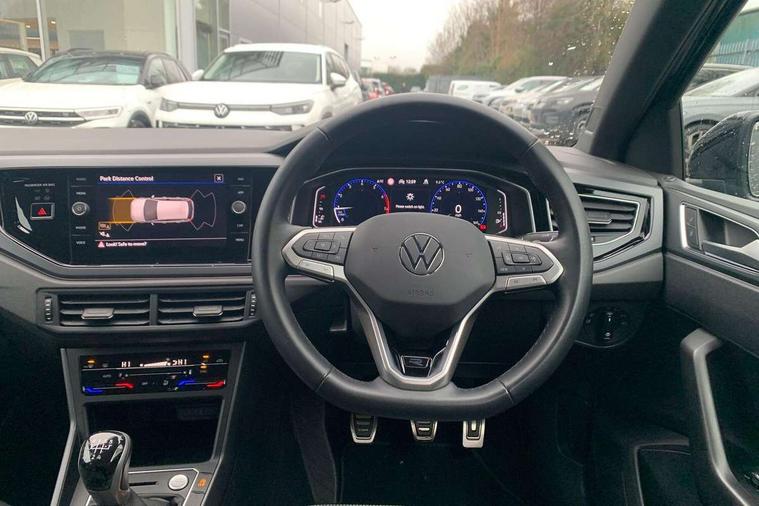 Adaptive cruise control without follow-to-stop and speed limiter, Bluetooth mobile phone interface, Digital Cockpit Pro with 10.25" Display, Driver alert system, Dynamic road sign display, Emergency call service, Power assisted speed sensitive steering, Preparation for We connect and We connect plus, Speedo and rev counter, electronic odometer, trip, service interval display and fuel gauge, Standard rear axle, Travel Assist - Lane keeping system and traffic jam assist, Travel assist including emergency assist, Trip computer, Warning signal and warning light for front and rear seatbelts not fastened, Washer fluid level indicator, Wireless app connect, Front wheel drive, Rear shock absorpion, Start-stop system with battery regeneration (recuperation - energy recovery during braking), DAB Digital radio, Diversity antenna for FM reception, Front and rear 6 speakers, Body colour bumpers, Body colour door handles, Body colour door mirrors, Electric front windows, Front scuff plates with R-Line logo, Heat insulating darkened glass in side and rear windows, Heat insulating glass windscreen, Power folding adjustable/heated exterior mirrors and front passenger exterior mirror lowering function, Rear electric windows, Rear fog light, Rear side wing doors, Rear tinted glass from B-pillar backwards approx 65% tinted, Rear windscreen washer and wiper with interval delay, Third brake light, 12V power socket in centre console, 2 USB-C ports in the front, 2 USB-C charging sockets on the center console in the rear, 3 rear head restraints, 60/40 split folding rear seat and rear seat bench not split, Air care climatronic air conditoning system with active combination filter and 2-zone temperature control, Black roof lining, Ceramique headliner, Chrome plated radiator grille inserts, air vent surrounds and light switch surrounds, Door and side trim panel, Driver and front passenger seat height adjustment, Driver/passenger sunvisors with illuminated vanity mirrors, Front + rear carpet mats, Front centre armrest, Front footwell illumination, Front seat backrest storage pockets, Front sports comfort seats, Handbrake lever handle in leather, Isofix child seat preparation easy-fit (for two outer rear seats, and front passenger seat) compatible with I-size, Karoso artvelours cloth upholstery, Leather trimmed gear knob, LED interior light with switch off delay and dimmer, 2 reading lights front and rear, Luggage compartment cover, Luggage compartment floor, Luggage compartment lighting, Lumbar adjustment for front seats, Multifunction steering wheel, Single front passenger seat, Stainless steel pedals, Standard pedal cluster, Light and sight pack - Polo R-Line/Black Edition, 3 point height adj front seatbelts + pretensioners, 3x3 point rear seatbelts, ABS, Driver and front passenger airbag with front passenger airbag deactivation, Drivers and front passengers safety optimised head restraints, ESC (Electronic stability control) + EDL (Electronic Differntial lock) and ASR (Traction control), Extended and predictive pedestrian/ cyclist protection, Front curtain and side airbags with center airbag, Hill hold control, Manual child lock in rear doors, Single tone horn, Tyre pressure loss indicator, Alarm with interior protection, Anti-theft alarm system with interior monitoring, backup horn, and towing protection, Anti-theft wheel bolts, Electronic engine immobiliser, Chrome applications on rotary light, mirror adjustment, window regulator switches, outlet with frame in black, Dark grey anodised matt decorative inserts in dash and front door panels, Low rolling resistance tyres,