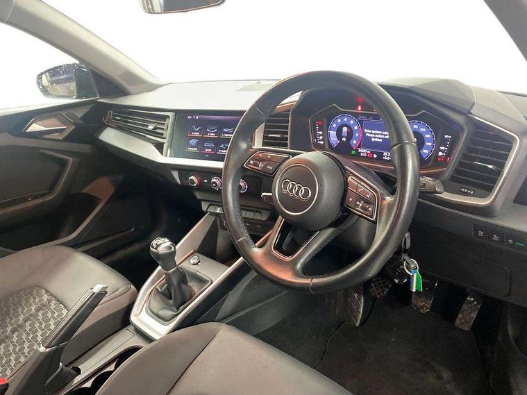 10.25" Digital instrument cluster display classis style instrument dials + speed, odometer, time, outside temperature, telephone menu + fuel level warning, Audi connect safety emergency and service including E-call, Audi smartphone interface with connect compatible smartphone via USB directly MMI display + Nav, music, third party apps controlled via MMI controller, Automatic start/stop system, Bluetooth interface, Cruise control, Driver's information system, Electromechanical power steering, Lane departure warning system, Rear parking sensor, Service interval indicator, Speed limiter, Voice control system, Washer fluid level indicator, Dynamic suspension, 1 x SDXC card reader, 1 x USB type C and 1 USB type A charging points, DAB Digital radio, MMI radio plus with 8.8" colour MMI display screen and MMI touch, Auto dimming rear view mirror, Body coloured bumpers, Body coloured door mirrors, Electric front and rear windows, Electrically adjustable, heated, folding door mirrors with integrated LED side indicator, Front side air inlets in grained matt black and C frame in titanium black, Heat insulating glass windscreen and side windows, Heated rear windscreen, LED headlights with LED rear lights + dynamic rear indicators + headlight adjustment and high beam, turning light + LED daytime running lights, Radiator grille and rear diffuser in matt titanium black, Radiator protective grille frame in matt aluminium silver, Rain and light sensors, Rear fog lights, Rear wiper, Scandium grey tailpipe trim, Side front spoiler lips in grained matt black, 12V socket in centre console with two cup holders, 3 rear seats with headrests, 40:60 Split folding rear seat or folded fully, Door sill trims with aluminium inlay, Door sills trims with aluminium inlays, Driver and passenger seat with manual height adjust with forward and backwards adjustment, Front head restraints, Front/rear floor mats, Height and reach adjustable steering wheel, ISOFIX child seat mounting for front passenger and outer rear seats including top tether attachment point of outer rear seats, Leather gear knob with aluminium trim, Leatherette handbrake grip, Luggage compartment light with front and rear reading lights, Manually adjustable lumbar support in front seats, Novum cloth upholstery with front sport seats, Titanium grey cloth headlining, Luggage compartment pack - A1, 3x3 point rear seatbelts, Audi pre-sense front with pedestrain and cyclist recognition, Brake assist function, Driver and front passenger airbag with front side and head airbags, Electronic Stability Control including ABS, EBD, ASR and EDL, Front and rear seatbelt reminder, Front passenger airbag deactivation switch, Hill hold assist, Seatbelt height adjustment for front seats, Seatbelt monitoring, Tyre pressure warning light, Warning triangle and first aid kit, Anti theft alarm, Anti theft wheel bolts and loose wheel warning, Immobiliser, Remote central locking with 2 foldaway keys, Aluminium trim for control switches, air vents and digital instrument cluster, Silver grey accent areas including air vents, door handle recesses and centre console in diamond paint finish, Slate grey inlays polygon structure in fine paint finish,