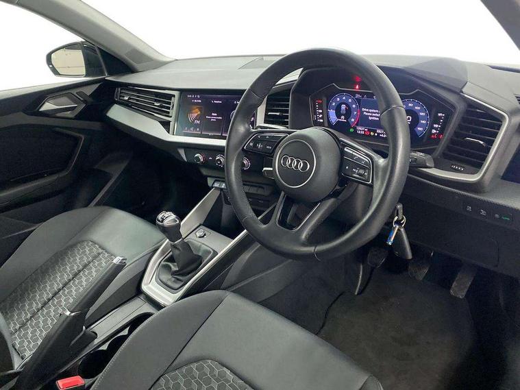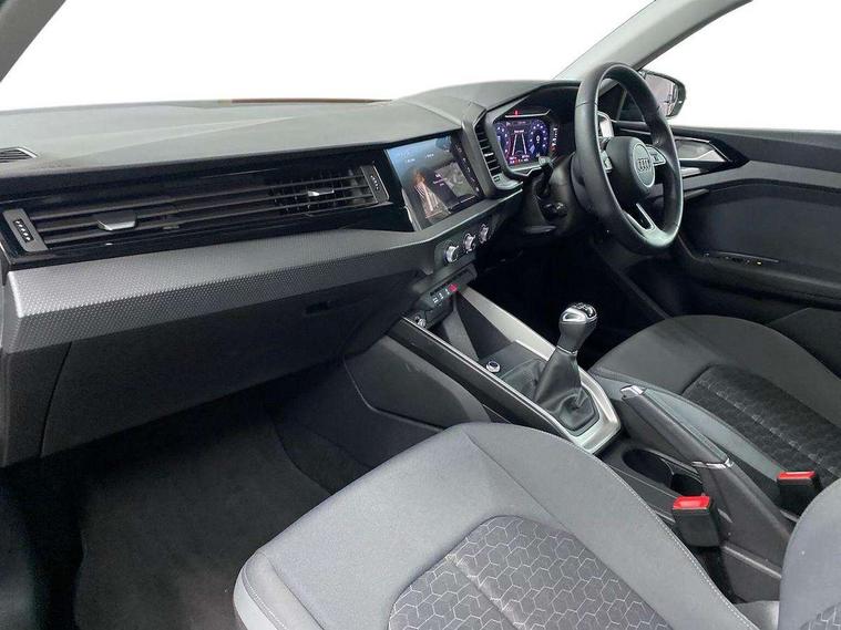 10.25" Digital instrument cluster display classis style instrument dials + speed, odometer, time, outside temperature, telephone menu + fuel level warning, Audi drive select - power steering assistance + engine, Audi smartphone interface with connect compatible smartphone via USB directly MMI display + Nav, music, third party apps controlled via MMI controller, Automatic start/stop system, Bluetooth interface, Cruise control, Driver's information system, Electromechanical power steering, Emergency e-call, Lane departure warning system, Rear parking sensor, Service interval indicator, Speed limiter, Voice control system, Washer fluid level indicator, Dynamic suspension, 2 x USB type C connection points, 6 passive loudspeakers, DAB Digital radio, MMI radio plus with 10.1" colour MMI display screen and MMI touch, Auto dimming rear view mirror, Body coloured bumpers, Body coloured door mirrors, Electric front and rear windows, Electrically adjustable, heated, folding door mirrors with integrated LED side indicator, Front side air inlets in grained matt black and C frame in anthracite black, Heat insulating glass windscreen and side windows, Heated rear windscreen, High level LED brake light, LED headlights with LED rear lights + dynamic rear indicators + headlight adjustment and high beam, turning light + LED daytime running lights, Radiator grille and rear diffuser in matt anthracite black, Radiator protective grille frame in matt aluminium silver, Rain and light sensors, Rear fog lights, Rear side wing doors, Rear wiper, Side front spoiler lips in grained matt black, 12V socket in centre console with two cup holders, 3 rear seats with headrests, 3 seat bench in 2nd row, 3 spoke leather multifunction plus steering wheel, 40:60 Split folding rear seat or folded fully, Black front and rear floor mats, Door sill trims with aluminium inlay, Driver and passenger seat with manual height adjust with forward and backwards adjustment, Front head restraints, Front passenger seat, Grey cloth headlining, Height and reach adjustable steering wheel, ISOFIX child seat mounting for front passenger and outer rear seats including top tether attachment point of outer rear seats, Leather gear knob with aluminium trim, Leather handbrake grip, Luggage compartment light with front and rear reading lights, Manual air conditioning, Manually adjustable lumbar support in front seats, Novum cloth upholstery with front sport seats, Luggage compartment pack - A1, 3x3 point rear seatbelts, Audi pre-sense front with pedestrain and cyclist recognition, Brake assist function, Driver and front passenger airbag with front side and head airbags, Electronic Stability Control including ABS, EBD, ASR and EDL, Front passenger airbag deactivation switch, Hill hold assist, Manual rear child locks, Seatbelt height adjustment for front seats, Seatbelt monitoring, Tyre pressure warning light, Warning triangle and first aid kit, Anti theft alarm, Anti theft wheel bolts and loose wheel warning, Immobiliser, Remote central locking with 2 foldaway keys, Aluminium trim for control switches, air vents and digital instrument cluster, Black dashboard, Silver grey accent areas including air vents, door handle recesses and centre console in diamond paint finish, Slate grey inlays polygon structure in fine paint finish,