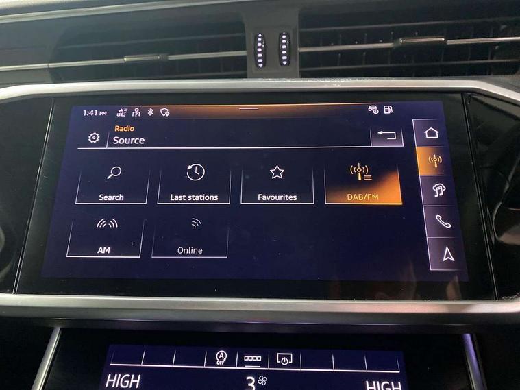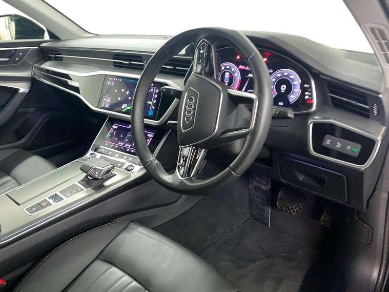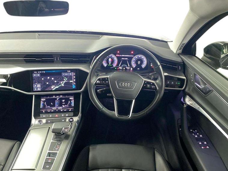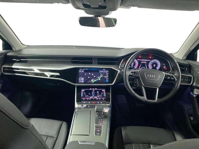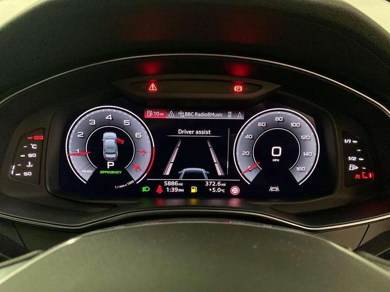 Audi connect safety and service (e-call), Audi connect with Amazon Alexa Integration, Audi drive select, Audi parking system plus - acoustic and visual park assist system for front and rear, Audi virtual cockpit, Automatic start/stop system with coasting functionality, Bluetooth interface, Camera based traffic sign recognition, Cruise control + speed limiter, Electric boot lid release, Lane departure warning system, MMI navigation plus with 10.1" and 8.6" touch screens, Progressive steering, Rear view camera, Service interval indicator, Smartphone interface includes wireless Apple carplay/Android Auto, Voice control system, Standard suspension, Audi front music interface, Audi sound system, Auxiliary input socket, DAB Digital radio, USB connection, Body coloured door mirrors, Daytime running lights, Electric front/rear windows, Electrically adjustable heated and folding + automatically dimming exterior mirrors with memory function, Frameless auto dimming interior rear view mirror, Front intermittent wipers, Heat insulating darkened glass in side and rear windows, Heat insulating glass in windshield, LED rear lights with dynamic indicators, LED third brake light, Matrix LED headlights, Matt black rear diffuser with diffuser strip and tailpipes in chrome, Matt black side air intake grille with inlay in matt aluminium, Privacy glass, Radiator grille in anthracite black matt, single frame in chrome and horizontal struts in matt aluminium silver, Rain and light sensors, Rear boot, Rear side wing doors, 2 zone deluxe electronic climate control, 3 spoke high multi-function leather steering wheel with shift paddles, 40/20/40 split folding 3 rear seat bench in 3 parts with rear centre armrest, Audi phone box light, Door sill trims with aluminium inlay, Electrically adjustable front seats including seat height, fore/aft position, backrest angle and 4-way lumbar with memory for driver's seat, Front and rear floor mats, Front centre armrest, Front head restraints, Heated front seats, Height/reach adjust steering wheel, Illuminated sun visors with vanity mirrors, Leather gear knob, Lunar silver cloth headlining, Rear headrests, Single front passenger seat, Tool kit and car jack, Twin leather upholstery, LED Interior Ambient Lighting Pack - A6, Non smoking pack - A6, 3 point seatbelts on all seats, Airbags - Front side, front and rear including head, Audi pre-sense front, EBD - Electronic brakeforce distribution, Electromechanical parking brake, Electronic Stability Control (ESC) including ABS, ASR and EDL, Extended pedestrian protection measures, ISOFIX child seat mounting for front passenger seat and ISOFIX child seat mounting with Top Tether for outer rear seats, Manual child proof rear door locks, Seatbelt monitoring, Tyre pressure warning light, Warning triangle and first aid kit, Anti theft alarm with tow away protection, Anti-theft wheel bolts and wheel loosening detection, Immobiliser, Keyless Go, Remote central locking, Aluminium fragment inlay, 18" 5 arm design cast aluminium alloy wheels,