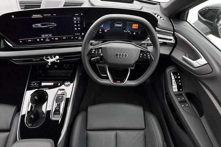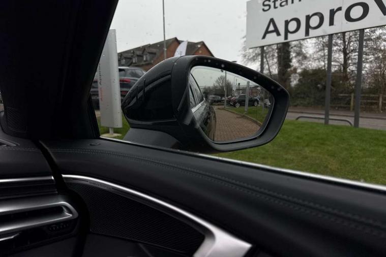 Adaptive cruise control, Advanced driver attention and fatigue montior, Audi application store, Audi assistant, Audi connect emergency call and service, Audi drive select, Audi virtual cockpit plus with 11.9" OLED colour display, Automatic start/stop system with coasting functionality, Camera based traffic sign recognition, Intersection assist, Lane departure warning, MMI navigation plus with high resolution 14.5" OLED touchscreen colour display, Park assist plus, Parking system plus with 360 display, Progressive steering with servotronic, Rear view camera, Smartphone interface, Swerve assist and turn assist, Traffic sign based speed limiter, Sports suspension lowered by 20mm, 2 USB-C ports in both the front and rear, Audi sound system impressive sound with 8 loudspeakers including centre speaker and subwoofer, 6-channel amplifier with a total output of 180 watts, DAB digital radio reception, Smartphone compartment with wireless charging, Aluminium roof rails, Aluminium window trims, Auto dimming rear view mirror, Body colour door mirrors, Door mirrors - electrically adjustable, heated, folding and auto dimming on both sides, Front and rear electric windows, Front door sill trims with aluminium inlays, illuminated with 'S' logo, High beam assist, LED headlights Plus incl. digital daytime running lights, turning light, all-weather light, motorway light, manouevring light and intersection light, LED rear lights pro incl. dynamic rear indicators and illuminated light strip with animated coming and leaving home function, LED third brake light, Privacy glass, Rear and side windows with heat insulating glass, Rear side wing doors, Rear wash/wipe, S Line badges on the front wings, S line bumpers, radiator grille and diffuser in phantom black and diffuser insert in matt anthracite, White rhombus logo projection light in exterior mirrors, Windscreen with acoustic glazing, 3 rear headrests, 3 seat rear bench, 3 spoke leather steering wheel with multi-function buttons with touch control, flattened on top and bottom, with S badging and contrast stitching, 3-zone automatic climate control, 40:20:40 split folding rear seat bench with centre armrest and cup holders, Comfort front centre armrest, Front and rear floor mats, Front seats with manual adjustment for position and 4-way electric lumbar support, Front sport seats with integrated headrest and S embossed logo, Headlining in black cloth, Heated front seats, i-Size child seat mounting on the front passenger side and outer rear seats, i-Size and top tether on the outer rear seats, Luggage compartment lid, electrically opening and closing, Manual steering column height and depth adjustment, Single front passenger seat, Stainless steel pedals and footrest, Steering wheel grips in perforated leather and shift paddles, Ambient lighting package plus - A5, 3x3 point rear seat belts, Driver airbag, Electric child safety locks, First aid kit with warning triangle and vests, Front emergency brake assist, Front passenger airbag, Front passenger airbag deactivation, Front side airbags with head airbag system and front interaction airbag, Hill hold assist, Seat belt monitoring with rear seat occupant reminder, Tyre pressure loss indicator, Anti theft alarm, Anti-theft wheel bolts, Keyless Go, Accent surfaces and control buttons in gloss black, Black dashboard with contrast stitching, Inlays in matt brushed aluminium with linear embossing, anthracite, Softwrap in leatherette with contrast stitching, Upper and lower interior elements in leatherette, Tyre repair kit,