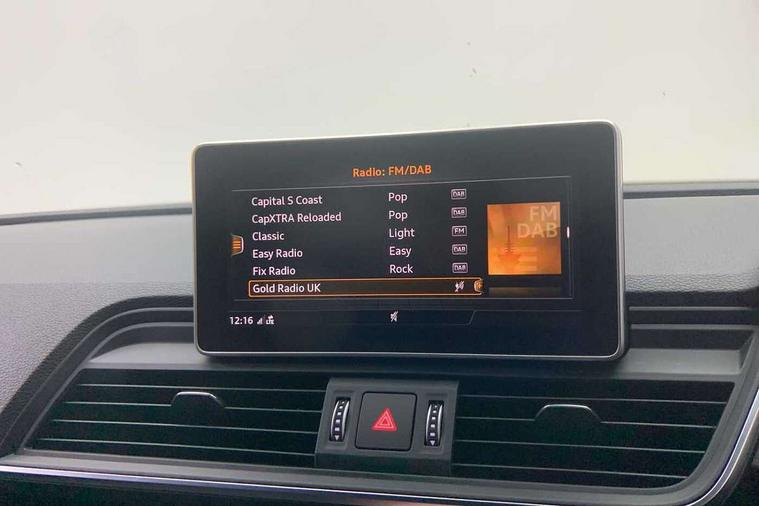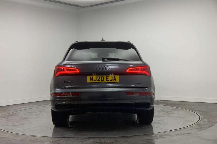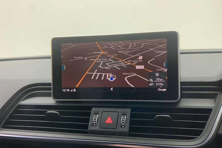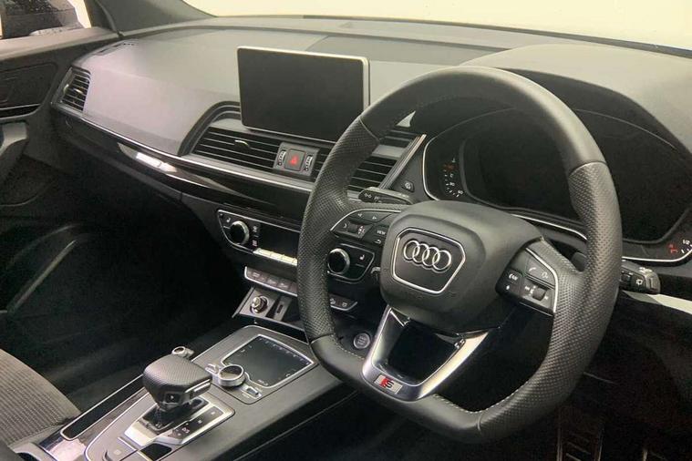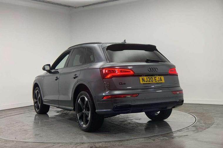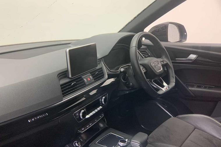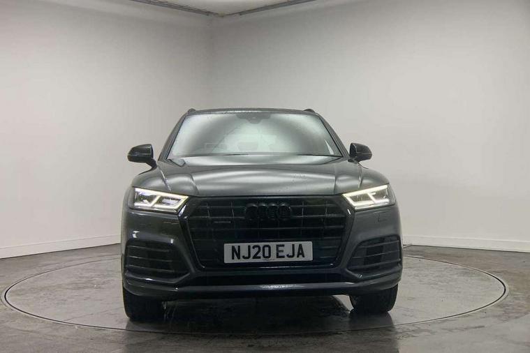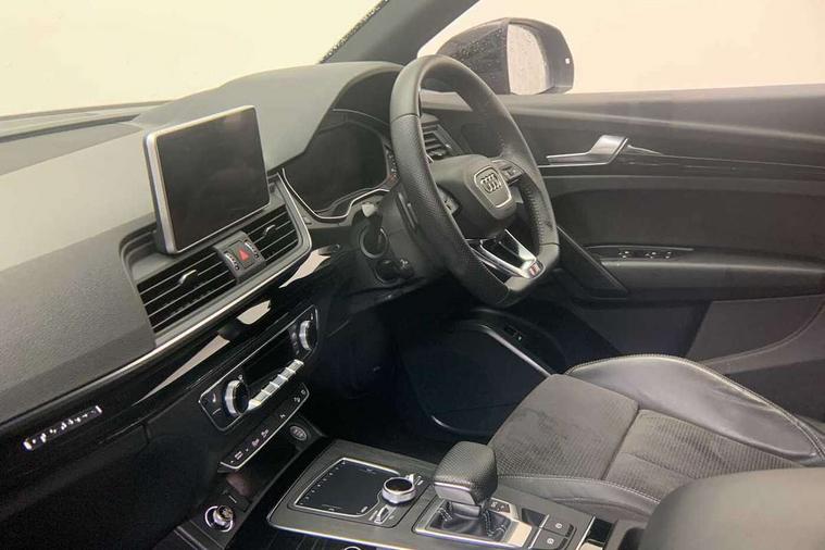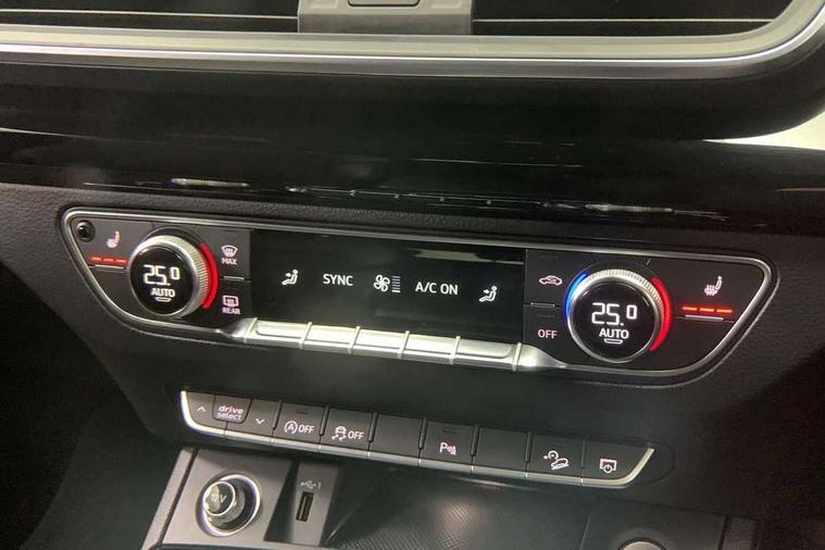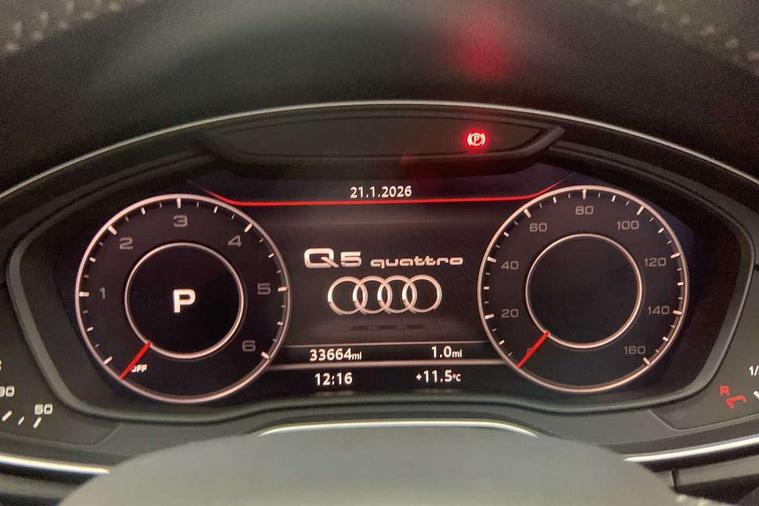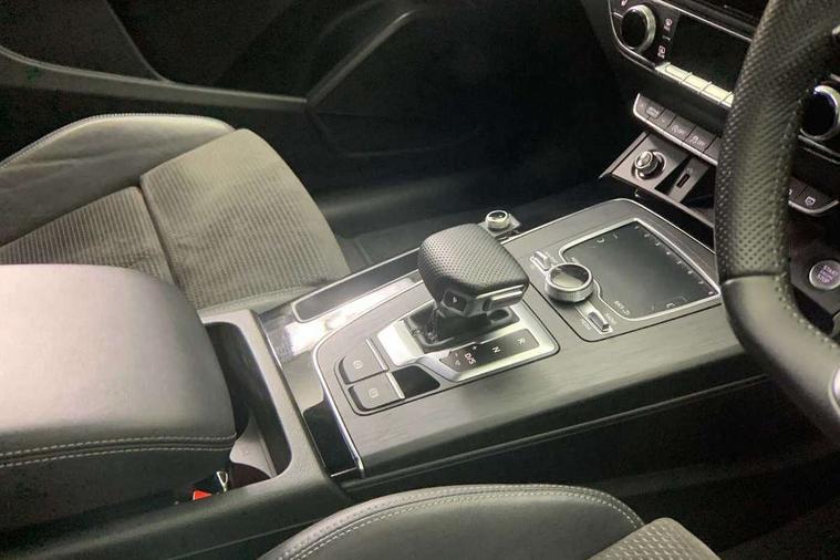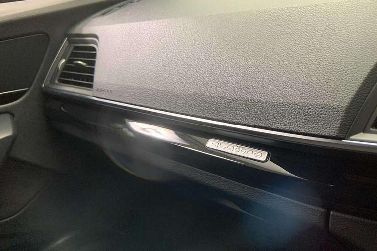 7" Colour driver information system, Audi connect safety and service (e-call), Audi drive select, Audi parking system plus with front and rear sensors, Audi Pre sense collision avoidance, Audi smartphone interface, Automatic start-stop system with coasting functionality and efficiency programme, Cruise control + speed limiter, Electro - mechanical power assisted steering, MMI Navigation, Mobile telephone preparation - bluetooth interface, Power tailgate, Service interval indicator, Voice control system, Diesel particulate filter, Dynamic suspension, Quattro on demand, 2 x USB charging port with aux input socket, 2x SD card slot, CD player, DAB Digital radio, MMI radio plus with 7" colour MMI screen and MMI controller, Acoustic windscreen, Air inlets in matt titanium black with blades in matt aluminium silver, Auto dimming rear view mirror, Automatic headlight levelling, Black roof rails, Body colour bumpers, Body colour rear diffuser with matt aluminium silver surrounds, Body colour underbody protection, Chrome exhaust tailpipe, Electric adjustable/heated/folding door mirrors, Front and rear electric windows, High beam assistant, LED headlights with LED rear lights + dynamic rear indicators, Light and rain sensor for auto activation of lights and windscreen wipers, Loading sill protector in stainless steel, Privacy glass with front acoustic glazing, Rear wiper, Titanium black door mirror housings, 3 rear headrests, 3 spoke flat bottom high multi-function leather steering wheel, 40:20:40 split folding rear seat with rear centre armrest, Black cloth headlining, Contrast stitching on seats, steering wheel and gear lever gaiter, Deluxe 3 zone electronic climate control, Front centre armrest, Front sport seats with S embossed logo, Front/rear floor mats, Heated front seats, Height adjustable front head restraints, Height/reach adjustable steering column, ISOFIX child seat mounting and top tether, Luggage compartment carpet, Manual seat adjustment with 4-way electric lumbar support, Perforated leather gearknob, Removable luggage compartment floor, Stainless steel pedals, Sunvisors with vanity mirrors, Trunk roller cover, LED interior light pack - Q5, Non Smokers pack, Titanium black styling pack - Q5, 3 point seatbelts on all seats, 6 airbags - Driver, front passenger, curtain and side airbags, Electromechanical parking brake, Electronic stabilisation control including ABS, ASR and EDL, Front passenger airbag deactivation, Hill descent control, Hill hold assist, Multi collision brake assist, Pop-up bonnet for pedestrian protection, Pre sense city, Seat belt force limiter, Seatbelt monitoring, Tyre pressure warning, Warning triangle and first aid kit, Anti theft alarm, Anti-theft wheel bolts, Keyless Go access/ignition system, Remote central locking, Black piano finish inlays, 20" 5 arm rotor design sport alloy wheels in gloss anthracite black, diamond cut finish, Tool kit,