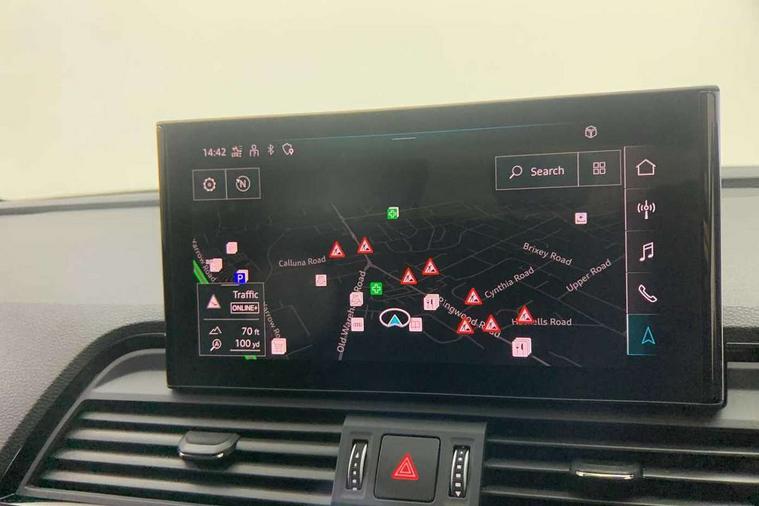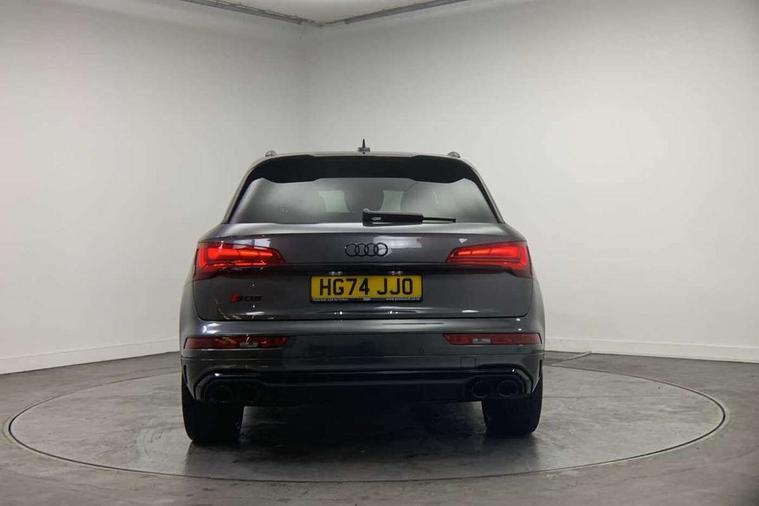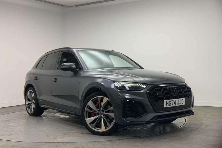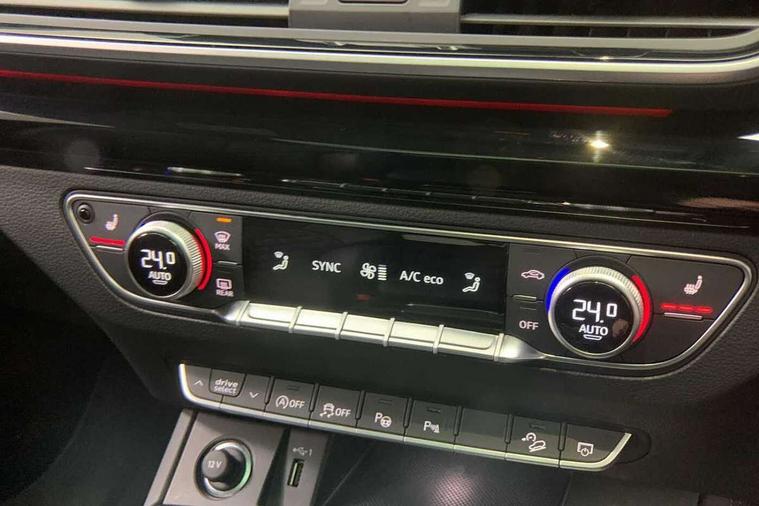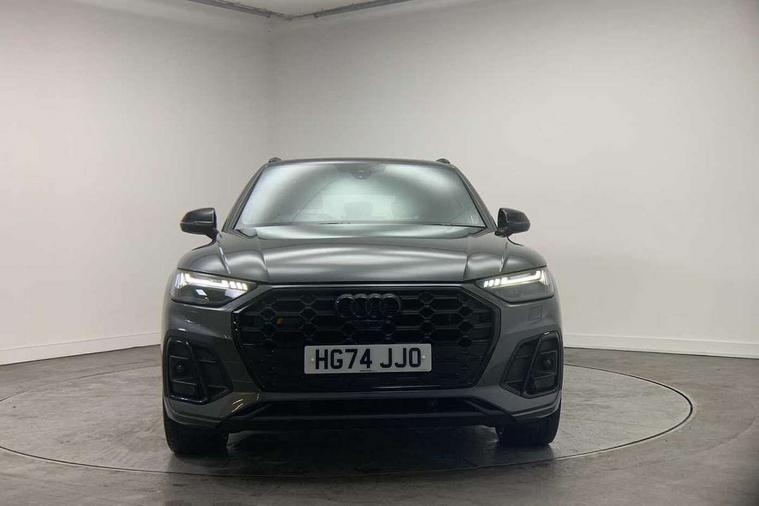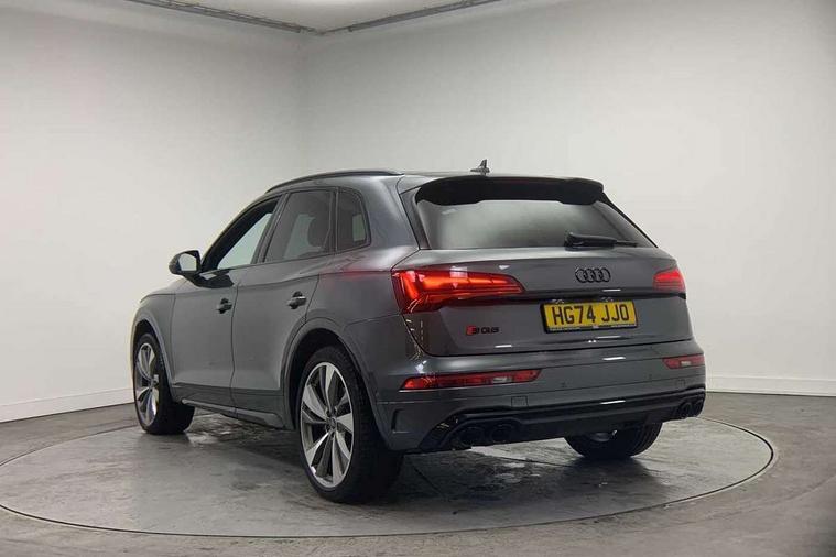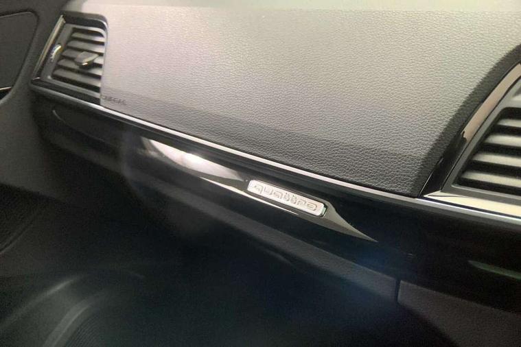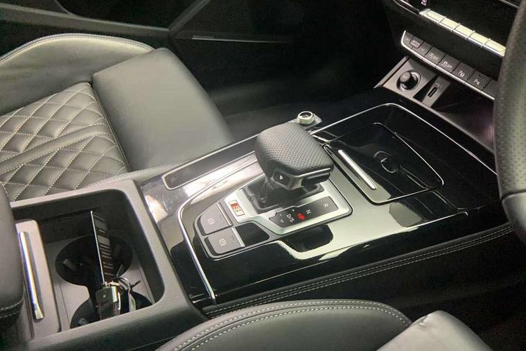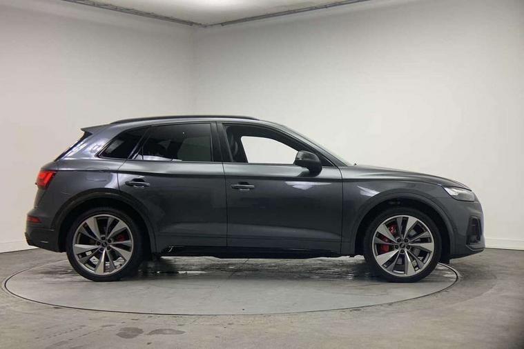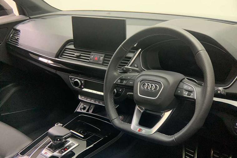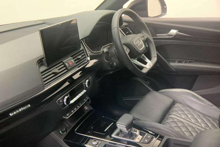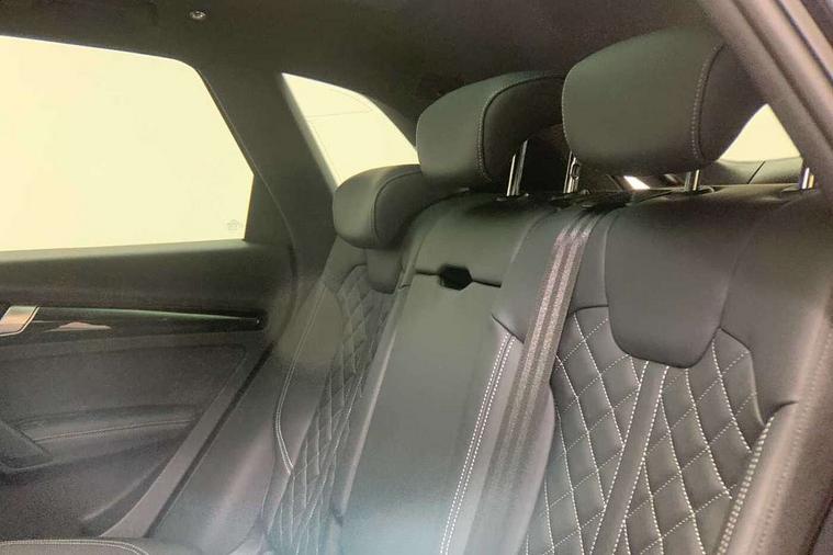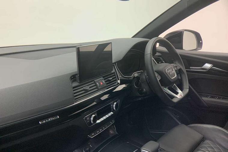 Acoustic front and rear parking sensor, Audi connect safety and service (e-call), Audi connect with Amazon Alexa Integration, Audi drive select, Audi virtual cockpit plus with 12.3" screen and three different layout designs, Audi wireless smartphone interface, Automatic start-stop system with coasting functionality and efficiency programme, Bluetooth interface, Electro - mechanical power assisted steering, MMI navigation plus with 10.1" touch screen, Power tailgate, Reversing camera, Service interval indicator, Voice control system with Audi hotword activation "Hey Audi", 70 litre fuel tank and 24 litre AdBlue tank, Diesel particulate filter, Quattro on demand, S sport suspension with damper control, 2 x USB charging port with aux input socket, Audi sound system, DAB Digital radio, Acoustic windscreen, Aluminium roof rails, Audi beam, Audi beam with Audi rings logo, Audi matrix LED headlights with dynamic front and rear indicators, Auto dimming door mirrors, Auto dimming frameless rear view mirror, Automatic headlight adjustment, Automatic headlights and windscreen wipers, Body colour bumpers, Body colour rear diffuser with matt aluminium silver surrounds, Body colour underbody protection, Chrome plated exhaust trims, Daytime running lights, Door sills in Selenite silver, Electric adjustable/heated/folding door mirrors, Front air inlet surrounds in aluminium, Front and rear electric windows, Front radiator grille in honeycomb design, Headlight washers, High gloss black B pillar trims and triangular rear door trim, High level LED brake light, Rear chrome trim strip below lights, Rear privacy glass and rear side windows, Rear side wing doors, Rear wiper, Roof bars, S front and rear bumpers, S Line rear spoiler, S Line side skirts, S specific rear diffuser, 3 rear headrests, 4 way electric lumbar support for driver and front passenger, 40:20:40 split folding 3 rear bench seat in 2nd row with rear centre armrest, Black cloth headlining, Comfort front centre armrest, Contrast stitching on seats, steering wheel and gear lever gaiter, Deluxe 3 zone electronic climate control, Fine Nappa leather upholstery with diamond pattern contrast stitching + front sport seats with S embossed logo, Front/rear floor mats, Fully electrically adjustable seats, Gear lever in black leather, Heated front seats, Height adjustable front head restraints, Height/reach adjustable steering column, Illuminated door sill trims with S logo, Luggage compartment cover, Massage function for front seats, Rear seat bench plus-adjust for forwards/backwards position/backrest angle, cupholders in the armrest, load through hatch and remote backrest release, Removable luggage compartment floor, Single front passenger seat, Stainless steel pedals, Sunvisors with vanity mirrors, Extended interior upholstery pack - Q5, High gloss pack - Q5, LED interior light pack - Q5, 3 point seatbelts on all seats, 6 airbags - Driver, front passenger, curtain and side airbags, Electrically operated child locks on rear doors, Electromechanical parking brake, Electronic stabilisation control including ABS, ASR and EDL, First aid kit with warning triangle and vests, Front passenger airbag deactivation, Hill descent control, Hill hold assist, ISOFIX child seat mounting for front passenger seat and ISOFIX child seat mounting with Top Tether for outer rear seats, Multi collision brake assist, Pop-up bonnet for pedestrian protection, Pre sense city, Seat belt force limiter, Seatbelt monitoring, Tyre pressure warning, Anti theft alarm, Anti-theft wheel bolts, Keyless Go access/ignition system, Remote central locking, Air vents inserts and centre console in gloss black, 20'' 5 twin star spoke design alloy wheels in gloss graphite grey,