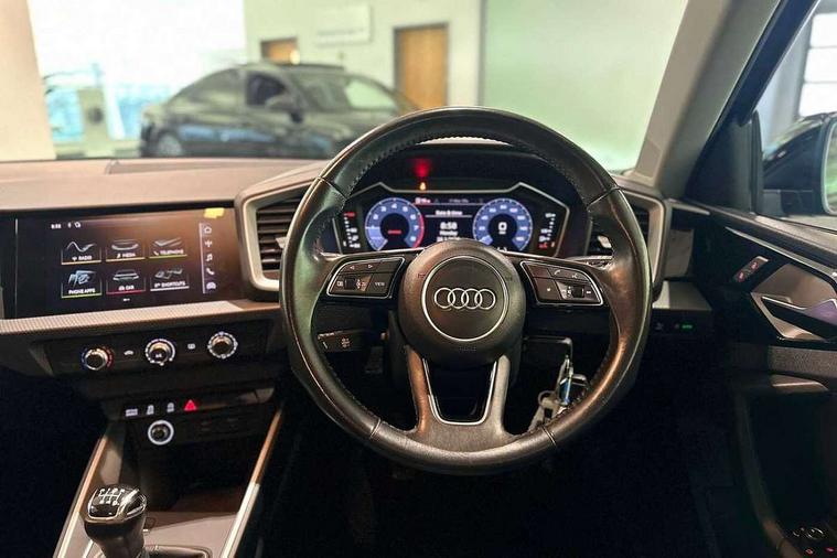 10.25" Digital instrument cluster display classis style instrument dials + speed, odometer, time, outside temperature, telephone menu + fuel level warning, Audi connect safety emergency and service including E-call, Audi drive select - power steering assistance + engine, Audi smartphone interface with connect compatible smartphone via USB directly MMI display + Nav, music, third party apps controlled via MMI controller, Automatic start/stop system, Bluetooth interface, Cruise control, Driver's information system, Electromechanical power steering, Lane departure warning system, Rear parking sensor, Service interval indicator, Speed limiter, Voice control system, Washer fluid level indicator, Dynamic suspension, 1 x SDXC card reader, 1 x USB type C and 1 USB type A charging points, DAB Digital radio, MMI radio plus with 8.8" colour MMI display screen and MMI touch, Auto dimming rear view mirror, Body coloured bumpers, Body coloured door mirrors, Electric front and rear windows, Electrically adjustable, heated, folding door mirrors with integrated LED side indicator, Front side air inlets in grained matt black and C frame in titanium black, Heat insulating glass windscreen and side windows, Heated rear windscreen, LED headlights with LED rear lights + dynamic rear indicators + headlight adjustment and high beam, turning light + LED daytime running lights, Radiator grille and rear diffuser in matt titanium black, Radiator protective grille frame in matt aluminium silver, Rain and light sensors, Rear fog lights, Rear wiper, Scandium grey tailpipe trim, Side front spoiler lips in grained matt black, 12V socket in centre console with two cup holders, 3 rear seats with headrests, 40:60 Split folding rear seat or folded fully, Door sill trims with aluminium inlay, Driver and passenger seat with manual height adjust with forward and backwards adjustment, Front head restraints, Front/rear floor mats, Height and reach adjustable steering wheel, ISOFIX child seat mounting for front passenger and outer rear seats including top tether attachment point of outer rear seats, Leather gear knob with aluminium trim, Leatherette handbrake grip, Luggage compartment light with front and rear reading lights, Manually adjustable lumbar support in front seats, Novum cloth upholstery with front sport seats, Titanium grey cloth headlining, Luggage compartment pack - A1, 3x3 point rear seatbelts, Audi pre-sense front with pedestrain and cyclist recognition, Brake assist function, Driver and front passenger airbag with front side and head airbags, Electronic Stability Control including ABS, EBD, ASR and EDL, Front and rear seatbelt reminder, Front passenger airbag deactivation switch, Hill hold assist, Seatbelt height adjustment for front seats, Seatbelt monitoring, Tyre pressure warning light, Warning triangle and first aid kit, Anti theft alarm, Anti theft wheel bolts and loose wheel warning, Immobiliser, Remote central locking with 2 foldaway keys, Aluminium trim for control switches, air vents and digital instrument cluster, Silver grey accent areas including air vents, door handle recesses and centre console in diamond paint finish, Slate grey inlays polygon structure in fine paint finish,