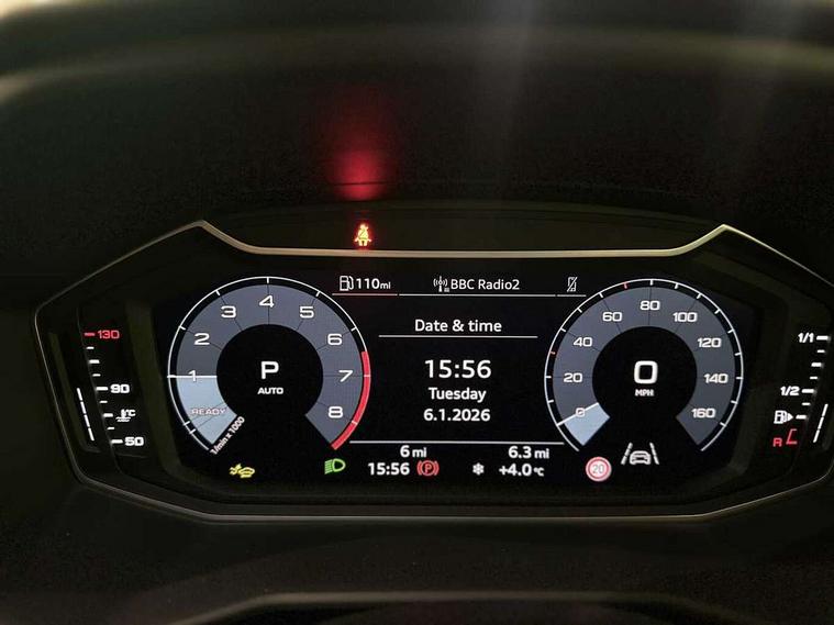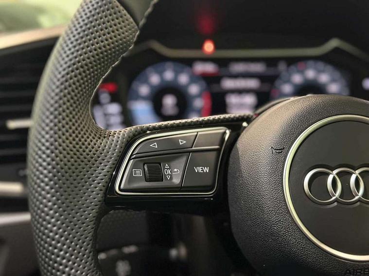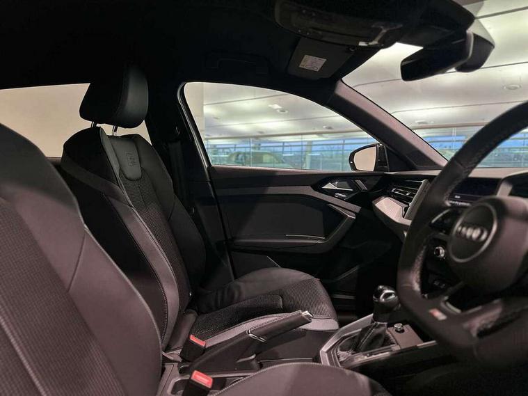 10.25" Digital instrument cluster display classis style instrument dials + speed, odometer, time, outside temperature, telephone menu + fuel level warning, Advanced driver attention and drowsiness monitor, Audi connect emergency call and service, Audi drive select, Audi remote connect and control, Bluetooth interface, Camera based traffic sign recognition, Cruise control, Driver's information system, Electromechanical power steering, Lane departure warning system, Rear parking sensor, Service interval indicator, Smartphone interface, Speed limiter, Start stop system with recuperation, Voice control system, Washer fluid level indicator, Sports suspension, 2 x USB type C connection points, 6 loudspeakers, DAB Digital radio, MMI radio plus with 10.1" colour MMI display screen and MMI touch, Auto dimming rear view mirror, Black door mirror housings, Black side skirts, Body coloured bumpers, Door sill trims with aluminium inlays and logo, Electric front and rear windows, Electrically adjustable, heated, folding door mirrors with integrated LED side indicator, Front side air inlets in grained matt black and C frame in anthracite black, Front wing badges, Headlight cleaning system, Heat insulating glass windscreen and side windows, Heated rear windscreen, High level LED brake light, LED daytime running lights, LED headlights with range control LED rear lights + dynamic rear indicators, Light and rain sensors, Privacy glass, Radiator grille and rear diffuser in matt anthracite black, Radiator protective grille frame in matt aluminium silver, Rear fog lights, Rear side wing doors, Rear wiper, Side front spoiler lips in grained matt black, 12V socket in centre console with two cup holders, 3 rear seats with headrests, 3 seat bench in 2nd row, 3 spoke flat bottomed multi-function plus leather steering wheel with S badging, grips in preforated leather, contrast stitching and paddle shift, 40:60 Split folding rear seat or fully collapsed, Black carpets, Black cloth headlining, Front and rear velour black floor mats with contrast stitching in fine silver, Front head restraints, Front passenger seat, Height and reach adjustable steering wheel, Interior lighting includes roof module, front and rear reading lights and right luggage compartment lighting, ISOFIX child seat mounting for front passenger and outer rear seats including top tether attachment point of outer rear seats, Leather gear knob with aluminium trim, Leather handbrake grip, Manual air conditioning, Manual height adjustable for driver and front passenger seat, Manually adjustable lumbar support in front seats, Stainless steel pedals, Ambient lighting package - A1, Black styling pack - A1 Sportback Black Edition, Luggage compartment pack - A1, 3x3 point rear seatbelts, Audi pre-sense front with pedestrain and cyclist recognition, Brake assist function, Driver and front passenger airbag with front side and head airbags, Electronic Stability Control including ABS, EBD, ASR and EDL, Front passenger airbag deactivation switch, Hill hold assist, Manual rear child locks, Seatbelt height adjustment for front seats, Seatbelt monitoring, Tyre pressure loss indicator, Warning triangle and first aid kit, Anti theft alarm, Anti theft wheel bolts, Immobiliser, Remote control key with safelock, Aluminium trim for control switches, air vents and digital instrument cluster, Black dashboard, Silver grey inlays polygon structure in diamond paint finish, Structured grey accent surfaces insert of air vents, interior door handle recesses and centre console in quartz paint finish,