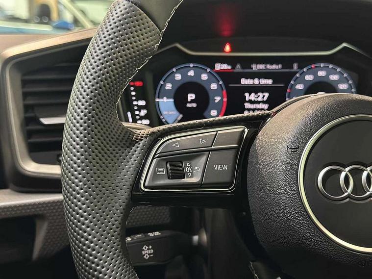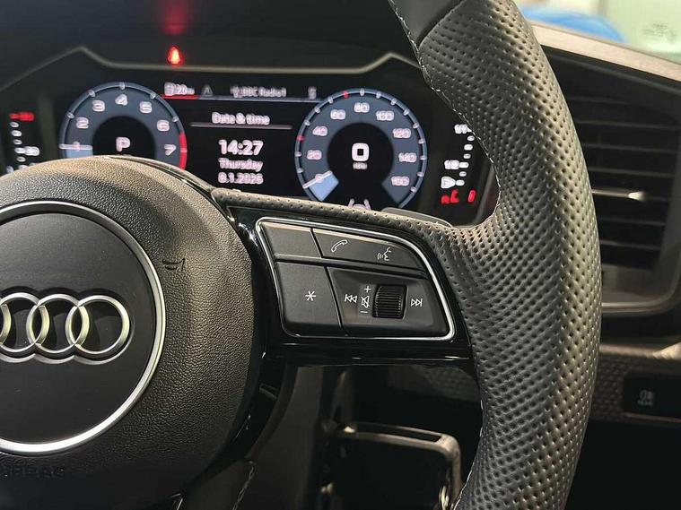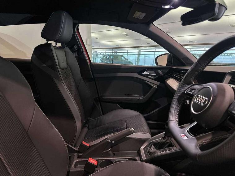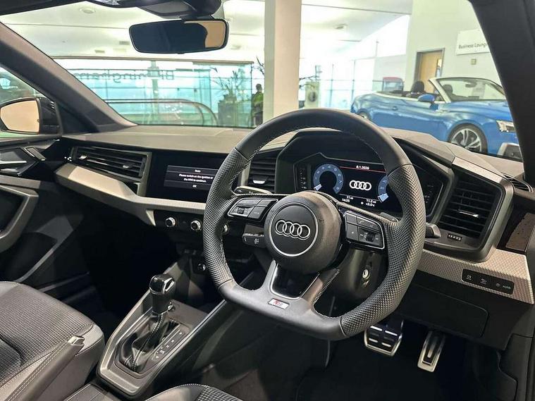 10.25" Digital instrument cluster display classis style instrument dials + speed, odometer, time, outside temperature, telephone menu + fuel level warning, Advanced driver attention and drowsiness monitor, Audi connect emergency call and service, Audi drive select, Audi remote connect and control, Bluetooth interface, Camera based traffic sign recognition, Cruise control, Driver's information system, Electromechanical power steering, Lane departure warning system, Rear parking sensor, Service interval indicator, Smartphone interface, Speed limiter, Start stop system with recuperation, Voice control system, Washer fluid level indicator, Sports suspension, 2 x USB type C connection points, 6 loudspeakers, DAB Digital radio, MMI radio plus with 10.1" colour MMI display screen and MMI touch, Auto dimming rear view mirror, Black door mirror housings, Black side skirts, Body coloured bumpers, Door sill trims with aluminium inlays and logo, Electric front and rear windows, Electrically adjustable, heated, folding door mirrors with integrated LED side indicator, Front side air inlets in grained matt black and C frame in anthracite black, Front wing badges, Headlight cleaning system, Heat insulating glass windscreen and side windows, Heated rear windscreen, High level LED brake light, LED daytime running lights, LED headlights with range control LED rear lights + dynamic rear indicators, Light and rain sensors, Privacy glass, Radiator grille and rear diffuser in matt anthracite black, Radiator protective grille frame in matt aluminium silver, Rear fog lights, Rear side wing doors, Rear wiper, Side front spoiler lips in grained matt black, 12V socket in centre console with two cup holders, 3 rear seats with headrests, 3 seat bench in 2nd row, 3 spoke flat bottomed multi-function plus leather steering wheel with S badging, grips in preforated leather, contrast stitching and paddle shift, 40:60 Split folding rear seat or fully collapsed, Black carpets, Black cloth headlining, Front and rear velour black floor mats with contrast stitching in fine silver, Front head restraints, Front passenger seat, Height and reach adjustable steering wheel, Interior lighting includes roof module, front and rear reading lights and right luggage compartment lighting, ISOFIX child seat mounting for front passenger and outer rear seats including top tether attachment point of outer rear seats, Leather gear knob with aluminium trim, Leather handbrake grip, Manual air conditioning, Manual height adjustable for driver and front passenger seat, Manually adjustable lumbar support in front seats, Stainless steel pedals, Ambient lighting package - A1, Black styling pack - A1 Sportback Black Edition, Luggage compartment pack - A1, 3x3 point rear seatbelts, Audi pre-sense front with pedestrain and cyclist recognition, Brake assist function, Driver and front passenger airbag with front side and head airbags, Electronic Stability Control including ABS, EBD, ASR and EDL, Front passenger airbag deactivation switch, Hill hold assist, Manual rear child locks, Seatbelt height adjustment for front seats, Seatbelt monitoring, Tyre pressure loss indicator, Warning triangle and first aid kit, Anti theft alarm, Anti theft wheel bolts, Immobiliser, Remote control key with safelock, Aluminium trim for control switches, air vents and digital instrument cluster, Black dashboard, Silver grey inlays polygon structure in diamond paint finish, Structured grey accent surfaces insert of air vents, interior door handle recesses and centre console in quartz paint finish,