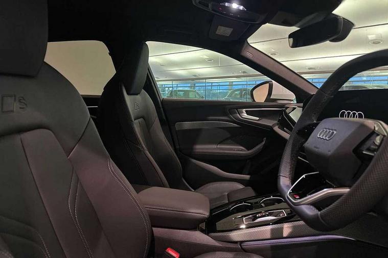 Adaptive cruise control, Attention and drowsiness detection with driver observation, Audi application store, Audi assistant, Audi connect emergency call and service, Audi drive select, Audi virtual cockpit plus with 11.9" OLED colour display, Automatic start/stop system with coasting functionality, Camera based traffic sign recognition, Convenience key, Intersection assist, Lane departure warning, MMI navigation plus with high resolution 14.5" OLED touchscreen colour display, Park assist plus, Parking system plus with 360 display, Progressive steering with servotronic, Rear view camera, Side assist and exit warning, rear cross-traffic assist and rear turn assist, Smartphone interface, Swerve assist and turn assist, Traffic sign based speed limiter, Sports suspension lowered by 20mm, Audi sound system impressive sound with 8 loudspeakers including centre speaker and subwoofer, 6-channel amplifier with a total output of 180 watts, DAB digital radio reception, Smartphone compartment with wireless charging, Aluminium roof rails, Aluminium window trims, Auto dimming rear view mirror, Body colour door handles, Body colour door mirrors, Door mirrors - electrically adjustable, heated, folding and auto dimming on both sides, Front and rear electric windows, Front door sill trims with aluminium inlays, illuminated with 'S' logo, High beam assist, LED headlights Plus incl. digital daytime running lights, turning light, all-weather light, motorway light, manouevring light and intersection light, LED rear lights pro incl. dynamic rear indicators and illuminated light strip with animated coming and leaving home function, LED third brake light, Privacy glass, Rear and side windows with heat insulating glass, Rear side wing doors, Rear wash/wipe, S Line badges on the front wings, S line bumpers, radiator grille and diffuser in phantom black and diffuser insert in matt anthracite, White rhombus logo projection light in exterior mirrors, Windscreen with acoustic glazing, 3 rear headrests, 3 seat rear bench, 3 spoke leather steering wheel with multi-function buttons with touch control, flattened on top and bottom, with S badging and contrast stitching, 3-zone automatic climate control, 40:20:40 split folding rear seat bench with centre armrest and cup holders, Comfort front centre armrest, Front and rear floor mats, Front sport seats with integrated headrest and S embossed logo, Headlining in black cloth, i-Size child seat mounting on the front passenger side and outer rear seats, i-Size and top tether on the outer rear seats, Increased charging capacity for USB ports 2X100 Watts in rear, 2X60 Watts in front, Luggage compartment lid, electrically opening and closing, Manual steering column height and depth adjustment, Single front passenger seat, Stainless steel pedals and footrest, Steering wheel grips in perforated leather and shift paddles, Ambient lighting package plus - A5, 3x3 point rear seat belts, Driver airbag, Electric child safety locks, First aid kit with warning triangle and vests, Front emergency brake assist, Front passenger airbag, Front passenger airbag deactivation, Front side airbags with head airbag system and front interaction airbag, Hill hold assist, Seat belt monitoring with rear seat occupant reminder, Tyre pressure loss indicator, Anti theft alarm, Anti-theft wheel bolts, Digital key, Keyless Go, Accent surfaces and control buttons in gloss black, Black dashboard with contrast stitching, Inlays in matt brushed aluminium with linear embossing, anthracite, Softwrap in leatherette with contrast stitching, Upper and lower interior elements in leatherette, Tyre repair kit,