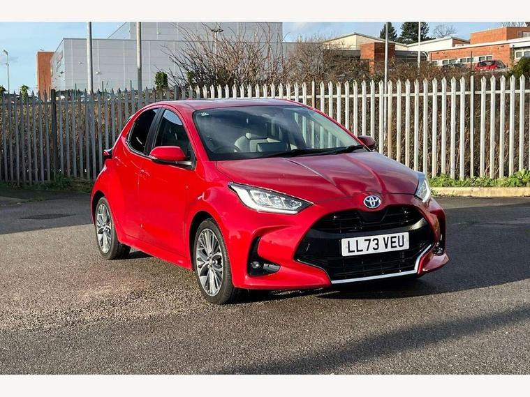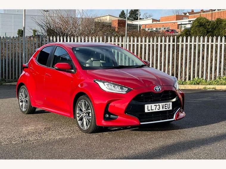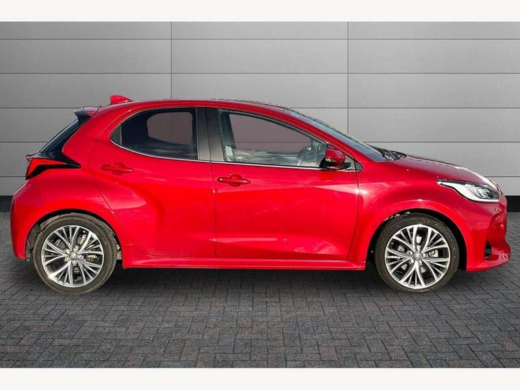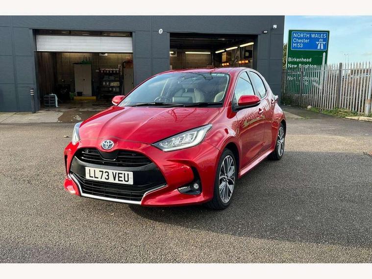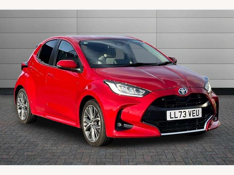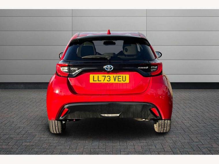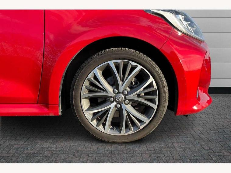 Adaptive cruise control, Adjustable speed limit with speed warning, Blind spot monitoring, Bluetooth connectivity, Colour binocular inspired displays with digital speedometer, E-call, Electric power steering, Hybrid energy display, Multi information display switches on steering wheel, Reversing camera, Smartphone integration with Apple CarPlay and Android auto, Tailgate, Touch 2 navigation system, Voice recognition, Vehicle Stability Control (VSC), 6 speakers, 9" HD multimedia display touch screen with Toyota smart connect, USB connection, Acoustic windscreen glass, Auto windscreen wipers, Automatic headlights, Automatically retractable door mirrors, Body coloured door mirrors, Electric adjustable heated door mirrors, Follow me home headlights, Front auto power windows with anti jam protection, Full LED rear lights, LED daytime running lights, LED front fog lights, LED front light guide, LED Headlights, LED High mounted stop lamp, LED Indicators, LED rear light guide, Manual headlight levelling, Painted chequered front grille, Rain sensor, Rear auto power windows with anti jam protection, Rear privacy glass, Rear side wing doors, Rear spoiler, Rear wiper, Satin lower front grille, Shark fin antenna, Turning signal integrated indicators in door mirrors, Variable front intermittent wipers, 3 adjustable rear headrests, 3 seat bench in 2nd row, 3 spoke leather steering wheel, 60/40 split folding rear seat, Active headrests, Adjustable boot height, Coat hooks in rear grab handles, Cup holders (2 front & door), Data Communication Module (DCM) connected services, Dual zone automatic air conditioning, Fabric seat with partial synthetic leather upholstery, Front armrest, Front sport seats, Glovebox, Grey roof lining, Height adjustable driver's seat, Height adjustable passenger seat, Isofix seat fixing, Leather gearshift, Map pockets on the backs of the front seats, Pollen filter, Shopping bag hooks, Single front passenger seat, Tilt/telescopic steering column, Parking pack - Yaris, 3 point seatbelts on all rear seats, ABS+EBD+Brake assist, Electronic parking brake, Emergency brake light system (EBS), Front passenger airbag on/off switch, Front seatbelt reminder, Hill start assist control (HAC), Rear child proof door locks, Rear seat belt reminder, Supplemental Restraint System (SRS) 8 airbags: Driver & passenger's airbags, dual side curtain airbags, side impact airbags, front centre airbag, Toyota Safety Sense 2, Precollison + Night time Pedestrian & Cyclist Detection, Lane Trace Assist, Auto High Beam, Intelligent ACC & Road Sign Assist, Tyre pressure warning system, 2x Master key, Alarm/immobiliser, Keyless smart entry with push button start, Remote AC via MyT, Remote locking via MyT, Remote powered central double locking doors, Satin chrome interior styling, Soft touch instrument panel, Space saver spare wheel,