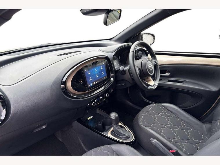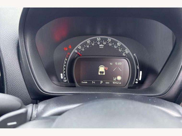 4.2" TFT colour screen, Adjustable speed limiter, Analogue speedometer, Bluetooth connectivity, Digital tachograph, Driver attention alert system, eCall emergency call system, ECO-driving indicator, Electric power steering, Front and rear parking sensors with auto brake, Intersection turn assist, Key reminder warning, Noise reduction kit, Pre collision system with emergency steering assist, Remote boot door release on key, Reversing camera with static guide lines, Smart entry and push button start, Speed limit display, Start and stop, Wireless charger, Wireless Smartphone Integration includes Apple CarPlay and Android auto, Vehicle Stability Control (VSC), 4 speakers, 9" HD multimedia display touch screen with Toyota smart connect, DAB digital audio broadcast, USB connector, Auto headlights, Auto wipers, Automatic headlights cut-off, Automatic high beam On/Off switch, Bicycle towing hook, Black fog light surrounds, Black side protection mouldings, Black wheel arch mouldings, Body colour door handles, Body coloured front bumper, Boot door scuff plate, Eclipse black rear bumper, Electric heated door mirrors, Follow me home headlights, Front and rear underruns in silver, Front fog lights, Front power windows, Gloss black door mirrors, Gloss black upper front grille, Headlight cut-off reminder, LED daytime running lights guide, LED front light guide, LED High mounted stop lamp, LED projector headlights, Manual day/night rear view mirror, Manual headlight levelling, Pagoda roof, Power adjustable door mirrors, Privacy glass, Rain sensor, Rear combination lights LED bulb type, Rear side wing doors, Rear windscreen defogger, Rear windscreen wiper, Remote hazard lights system, Short antenna, Variable intermittent windscreen wipers, 12v power outlet - front, 2 seat bench in 2nd row, 3 spoke leather steering wheel, 50/50 split folding rear seat, Adhesive roof headlining, Adjustable speed limiter switch on steering wheel, Audio and telephone switches on steering wheel, Auto air conditioning, Black roof lining, Body colour satin anodised insert on steering wheel, Boot light, Centre room light, Chrome interior door handles, Chrome surround on air conditioning buttons, Clean air filter, Floor mats, Front and rear cup holders, Front head rest deco art, Front head restraints, Gear shift indicator, Height adjustable driver seat, Intelligent adaptive cruise control switch on steering wheel, ISOFIX child restraint system on rear seats, Lane departure alert switch on steering wheel, Leather gearshift knob, Light blue ambient lighting in centre console, Manual tilt steering wheel, Manually reclining and sliding driver seat, Manually reclining and sliding front passenger seat, Multimedia switches on steering wheel, Paddle shift levers on steering wheel, Partial synthetic leather upholstery, Pollen filter, Rear door pockets, Rear head restraints, Remote air-conditioning system, Satin silver insert on gear shift knob, Single compartment glovebox with lights, Single front passenger seat, Soft tonneau cover, Sun visors with mirror on driver and passenger side, Voice recognition switch on steering wheel, Toyota safety sense pack - Aygo X, Anti lock braking system + Electronic brake force distribution, Child safety door lock, Emergency brake light signal (EBS), Hill start assist control (HAC), Passenger airbag on/off switch, Seat belt reminder for front and rear seats, Supplement restraints system (SRS) - 6 airbags, Traction control, Tyre pressure warning system, Immobiliser, Remote power door locks, Black wheel centre caps, Tyre repair kit,
