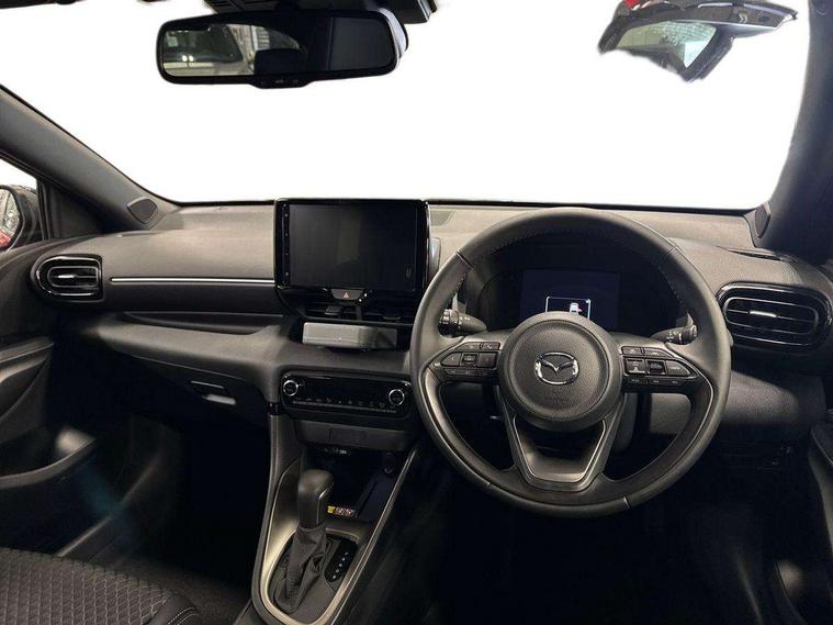 7" Digital instrument cluster with speedometer and hybrid system indicator, Adjustable speed limiter, Drive mode selector (Eco, Normal and Power), Driver attention alert system, Dynamic radar cruise control, E-call with GPS, EV drive mode, Front and rear parking sensors, Integrated bluetooth, Lane tracing assist includes Lane centering, Lane departure alert, Steering assist and Vehicle sway warning, Multi-information display, PAS, Push button start and stop, Qi wireless charging, Rear cross traffic alert with auto braking, Reversing camera, Road sign assist - RSA, Service indicator, Tailgate, Trip computer, Wireless Apple CarPlay and wired Android Auto, i-stop, 6 speaker audio system and 9" colour screen centre display, DAB Digital radio, Steering wheel mounted audio/bluetooth controls, USB type C port, Auto dimming rear view mirror, Auto folding door mirrors, Automatic high beam - AHB, Body coloured front bumper, Body coloured rear bumper with gloss black lower mouldings, Coming home function, Dusk sensing headlights, Front and rear electric windows, Gloss black electric adjustable/heated door mirrors, Gloss black front grille, Gloss black rear roof spoiler, Hybrid badge, LED front fog lights, LED headlights with manual headlight levelling and LED daytime running lights, LED rear combination light with LED turn signals, LED third brake light, Mazda unique tailgate garnish, Piano black lower window garnish, Privacy glass in rear side and rear windows, Rain sensing front wipers with adjustable sensitivity and speed, Rear side wing doors, Rear wash wiper, Shark fin antenna, Welcome lighting, 12V power outlet, 3 seat bench in 2nd row, 60/40 split fold down rear seats, Ambient lighting, Black roof lining in pillar and ceiling, Cloth/Synthetic leather upholstery, Driver, front passenger and two rear door storage, Driver, Front passenger and two rear grab handles with coathooks, Drivers seat manual slide recline and height adjustment, Drivers/front passengers with covered vanity mirrors and light, Dual zone climate control, Front centre armrest with console storage, Front head restraints, Front passenger seat manual slide, recline and height adjust, Front sport seats, Glovebox, Interior courtesy light with LED illumination, ISOFIX child seat anchorage points attached on outer rear seats, Leather handbrake, Leather wrapped gearshift, Leather wrapped steering wheel with telescopic and tilt adjustment, Luggage compartment light, Seatback pocket at rear of the front passenger seat, Single front passenger seat, Three height adjustable rear head restraints, 2x3 point front seatbelts with pre-tensioners, 3 point seatbelts on all rear seats, Airbags - driver and front passenger, Anti-lock braking system (ABS), Blind spot monitoring with rear cross parking support brake function, Collision mitigation braking system, Driver and passenger central airbags, Dynamic stability control + Traction control, Electronic parking brake with auto-hold and auto-disengage function, Emergency brake light signal (EBS), ESP, Front and rear curtain airbags, Front passenger airbag cut-off switch, Front side airbags, Hill start assist control (HAC), Manual child lock in rear doors, Pre-crash safety system - PCS, Rear parking support brake, Regenerative braking system, Seatbelt reminder audible warning, Tyre pressure monitoring system, Deadlocking system, Remote central locking, Smart keyless entry, Thatcham approved immobiliser and alarm, 17" Alloy wheels, Emergency tyre repair kit,