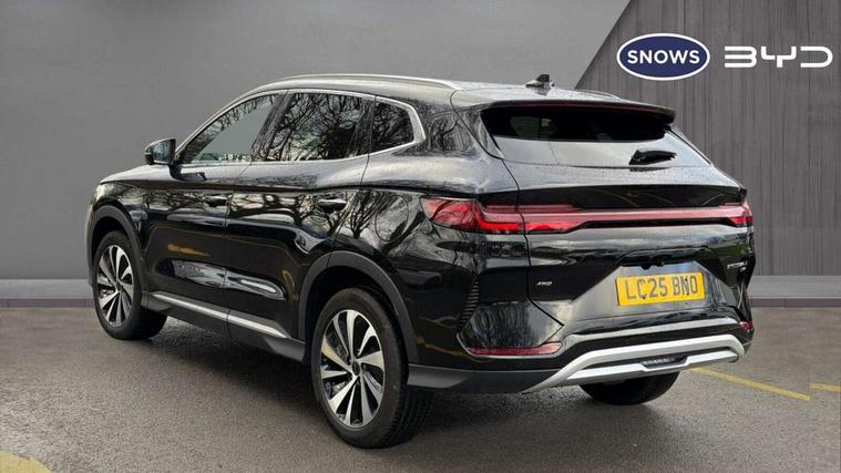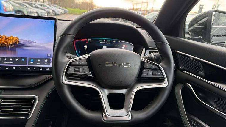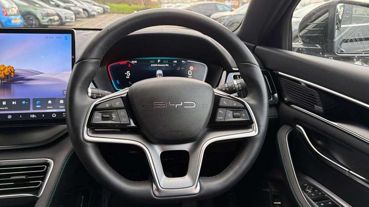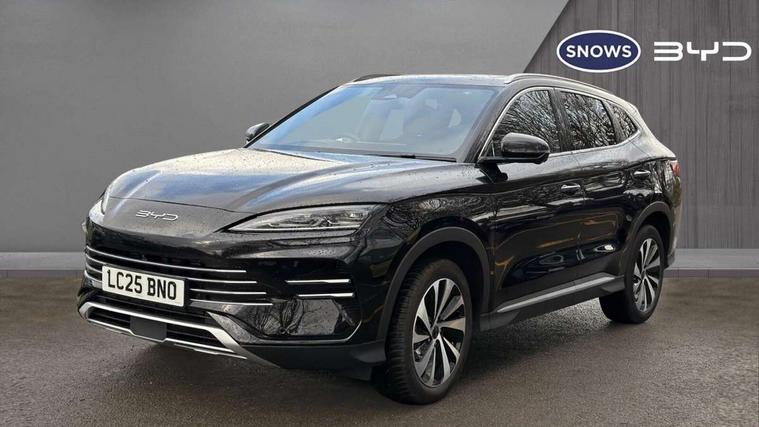 12.3" TFT full LCD instrument panel, 360 camera, Adaptive Cruise Control (ACC) and Intelligent Cruise Control (ICC), Automatic vehicle hold, Blind spot detection, BYD voice control assistant "Hi, BYD", Controller Deceleration Parking (CDP), Drive mode select (Eco, normal, sport, snow, sand, muddy), e-Call (emergency call), Electric tailgate release, Emergency Lane Keeping Assist (ELKA), Forward collision warning, Front and rear parking sensors, Front cross traffic alert and front cross traffic brake, Head up Display, Indirect driver fatigue management, Intelligent Speed Limit Control (ISLC), Keyless system entry and start, Lane change assist, Lane Departure Assistant (LDA) and Lane Departure Warning (LDW), Lane departure prevention, PAS, Predictive collision warning, Rear collision warning, Rear cross traffic alert and rear cross traffic brake, Rollover Control System (RMI), Smartphone wireless charging, 2 x 15W, Traffic sign recognition (TSR), Vehicle-to-Load (V2L) function, 11kW on board charger, Mode 3 Type 2 charging cable (3 phase), V2L (Vehicle to load) power strip - Type F, 15.6" Electrically rotatable touchscreen, FM/DAB+ radio, Front USB ports, 1 x 18W Type C, 1 x 60W Type C, Infinity sound system with 10 speakers, Rear USB ports, 2 x 18W Type C, Aluminium roof rails, Auto dimming interior rear view mirror, Auto headlamps (on/off), Dynamic welcome lights, Electric folding and heated door mirrors, Emergency tow hook, Exterior mirror footlights, Follow me home headlights (The headlights turned on in advance and delayed off function), Front windscreen, UV protection, thermal insulation and sound proofing, High beam assist, LED 3rd brake light, LED daytime running lights, LED Headlights, LED taillights, One touch electric front/rear windows with pinch protection, Panoramic sunroof with anti-pinch sensor and electrically adjustable sunshade, Rain sensor windscreen wipers, Rear fog lights, Rear side wing doors, Rear window and rear windscreen with tinted glass, Rear wiper, 12V power outlet, 3 seat bench in 2nd row, 8 way electrically adjustable drivers seat, Adjustable rear headrests, Boot parcel shelf, Driver and passenger sunvisors with illuminated vanity mirrors, Driver seat memory function, Front centre armrest with 2 cupholders, Front LED reading lights, Front passenger seat with 4-way electric adjustment, Front seat footlights, Heat pump, Heated front seats, Heated steering wheel, Integrated headrest in front seats, ISOFIX and i-Size for front passenger and outer rear seats, LED front door lights, Nylon floor mats, PM2.5 air filter, PM2.5 air purification system, Rear air vents, Rear armrest with 2 cupholders, Rear side LED reading lights, Rhythm-reactive multi-colour ambient lighting, Single front passenger seat, Split folding rear seats - 40/60, Vegan leather multifunction steering wheel, Vegan leather upholstery, Ventilated front seats, 3x3 point rear seatbelts, ABS/EBD, Automatic emergency braking system, Brake override system (BOS), Child presence detection, Comfort stop, Door open warning, Driver airbag, Electric parking brake, Force limiting pre-tensioned front seat belts, Front centre airbag, Front passenger airbag, Front passenger airbag deactivation, Front side airbags, Hill descent control, Hill hold control, Hydraulic Brake Assist (HBA), Hydraulic brake boost, Mechanical child safety lock, Rear middle seat force limiting seat belt, Rear seat belt pretensioners, Reflective vest, Side curtain airbags, Traction control system (TCS), Tyre pressure monitoring system (TPMS), Vehicle Dynamics Control System (VDC), Warning triangle, 2 x Smart keys, Anti theft alarm system, Automatic door locking, 19" Bi-colour alloy wheels, Tyre nut covers remover, Tyre repair kit,