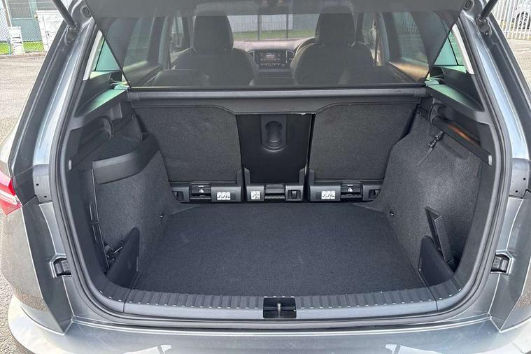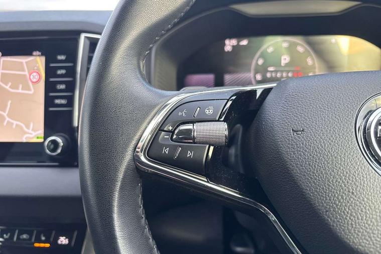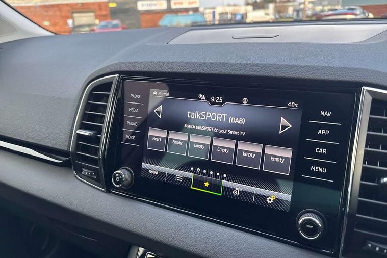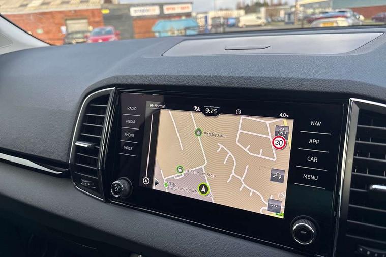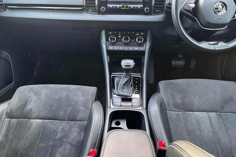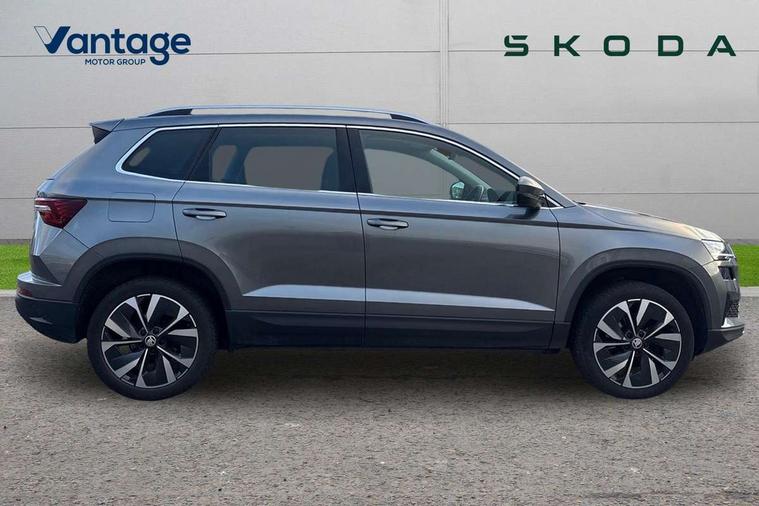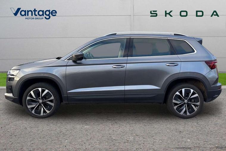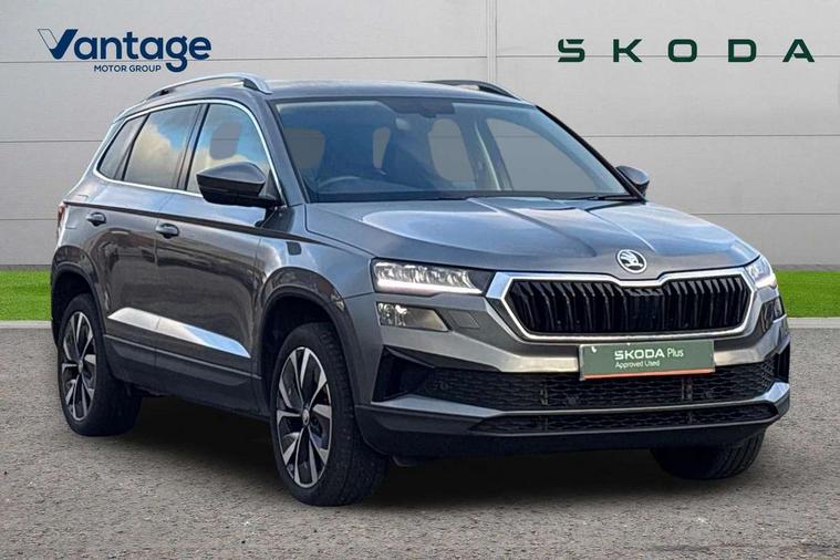 8" Digital display, Care connect, Driver fatigue sensor, Emergency services call system, Outside temperature gauge, Service interval indicator, SmartLink wireless for Apple and wired for Android, Start/stop system with regenerative braking, USB C Port x 2 in front centre console, 8 Speakers, DAB radio with Bluetooth, USB connection, Acoustic glass, Aero front windscreen wipers with intermittent function, Auto dimming rear view mirror with light and rain sensors, Black electric window control buttons, Body colour door mirrors and handles, Dynamic headlight range control with cornering light function, Electric front and rear windows with child proof lock, Heated rear windscreen, LED daytime running lights, LED rear lights with high functionality welcome effect and dynamic indicators, Light assistant (coming/leaving home/tunnel light), Plastic scuff plates, Privacy glass, Rear side wing doors, Rear spoiler, Rear window wiper with washer system and intermittent control, Safety reflectors on front doors, 1.5 litre bottle holders in driver and front passenger door panels, 12V socket in boot, 12v socket in front centre armrest with storage compartment and rear air vents, 2 spoke leather heated multifunction steering wheel with DSG paddles, 2 x Tablet holder, 3 rear height adjustable headrests, 3 seat bench in 2nd row, 4 foldable roof handles with rear coat hooks, Black floor carpet, Chrome inner door handles, Double sided boot floor, Foldable hooks in the boot, Front head restraints, Height adjustable front three point seats belts with tensioners, Height/reach adjust steering wheel, Ice scraper, Illuminated glovebox, Illuminated luggage compartment, Isofix child seat preparation for front passenger seat, Isofix child seat preparation outer rear, Manual lumbar support for front seats, Pen holder, Pollen filter, Rear boot cover, Rear reading lights, Rubbish bin door, Safety vest holder, Single front passenger seat, Storage box in upper central dashboard closed, Sunvisors with illuminated vanity mirrors, Textile floor mats, Ticket holder, VarioFlex seats with standard rear seat release, Boot pack - Karoq, Design Pack - Karoq, Parking pack - Karoq, Automatic door unlocking in case of crash, Automatic fuel cut off in case of crash, Child locks on rear doors, Driver airbag, Electronic parking brake with auto hold function, Emergency rear braking signal, ESC including ABS, MSR, ASR, EDS, HBA, DSR, RBS, MKB and traction control, Front side airbags, Hill hold control, Knee airbags, Passenger airbag with switch-off function, Pedestrian monitor, Seatbelt reminder signalisation and pretensioner for all seats, Three point seatbelts rear, Two tone horn, Tyre pressure display, Tyre pressure monitor, Alarm with interior monitoring, back up horn and tilt sensor with safe function, Electronic engine immobiliser, Keyless entry and start/stop, Remote central locking with 2 remote folding keys, Chrome framed air vents, 18" Miran alloy wheels in black, Anti-theft wheel bolts protection, Tool kit,