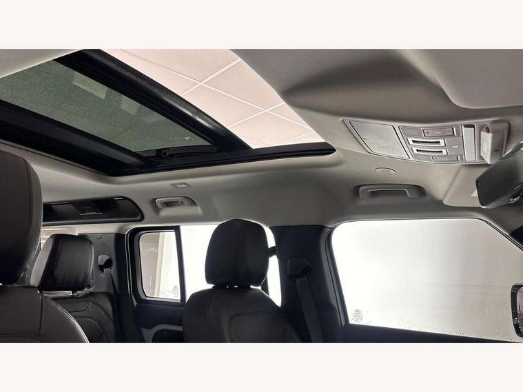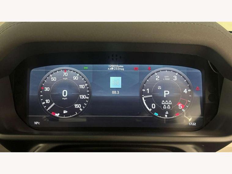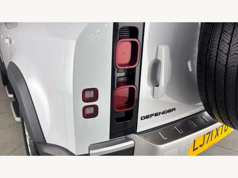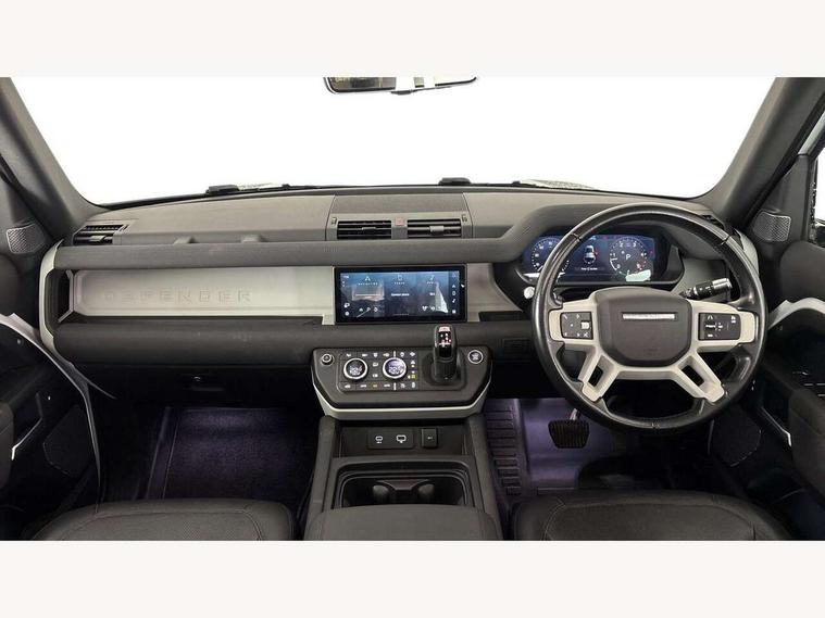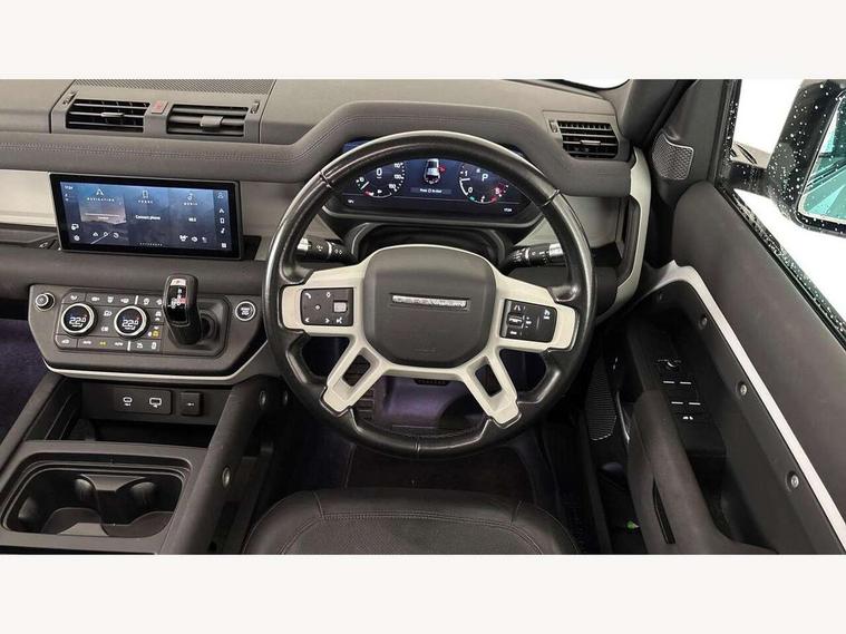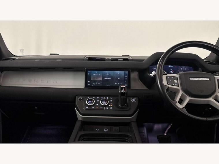 360 degree parking aid, 3D Surround Camera with 360 View, 180 Rear View, Front Traffic Detection, Forward Vehicle Guidance, Tow Hitch Assist and clear sight Ground View, Android Auto, Apple CarPlay, Assisted tailgate with soft close, Bluetooth system, Brake pad wear indicator, Click and go integrated base unit, Connected navigation pro, Driver condition monitor, Electric power assisted steering (EPAS), Interactive driver display, Lane keep assist, Push button start, Traffic sign recognition with adaptive speed limiter, Trip computer, Wade Sensing, Adaptive dynamics, DAB Radio (Digital Audio Broadcasting), Pivi pro connected, Auto high beam assist, Automatic headlights, Centre high mounted stop light, Daytime running lights, Electric heated/power fold door mirrors with approach lights and auto dimming driver side, Electric windows with one touch open/close and anti-trap, Follow me home lighting, Heated rear window with timer, Heated windscreen, LED tail lights, Puddle lights, Rain sensing windscreen wipers, Rear fog lights, Rear side wing doors, Rear wiper, Standard treadplates, Trailer stability assist, 12V power socket in loadspace, 2 seat bench in 3rd row, 3 seat bench in 2nd row, Carpet mats, Durable rubber cabin flooring, Durable rubber loadspace flooring, Footwell lights, Loadspace cover, Loadspace Hook, Multifunction steering wheel, Overhead stowage for sunglasses, Rear headrests, Rear ISOFIX, Rear reading lights, Single front passenger seat, Storage glovebox, Sunvisors with illuminated vanity mirrors, Online pack with data plan - Defender, 7 three point seatbelts, ABS, Brake hold function, Cornering brake control (CBC), Customer configurable autolock, Driver and passenger airbags, DSC - Dynamic Stability Control, EBD - Electronic brakeforce distribution, Electric parking brake (EPB), Emergency braking, ESP + traction control, Front airbags with passenger seat occupant detector, HDC - Hill descent control, Hill launch assist, Low traction launch, Power operated child locks, Remote for (e-Call, Optimised assistance call, InControl app, Climate, beep and flash and door), RSC - Roll stability control, Seat belt reminder, TPMS (Tyre pressure monitoring system), Alarm, Immobiliser, Intrusion sensor, Keyless entry and go, Locking wheel nuts,