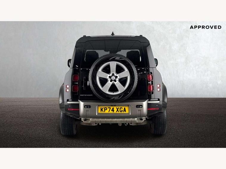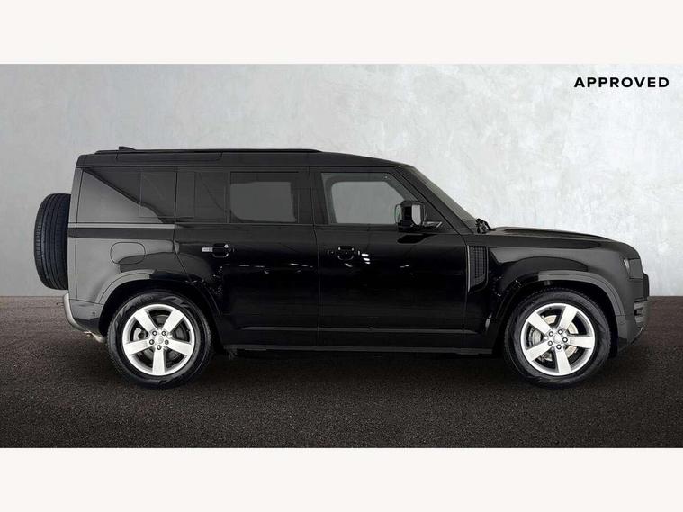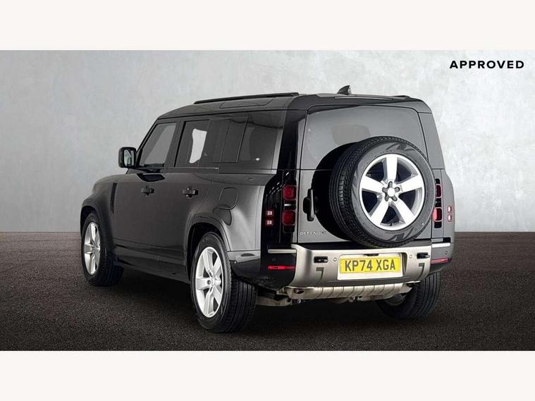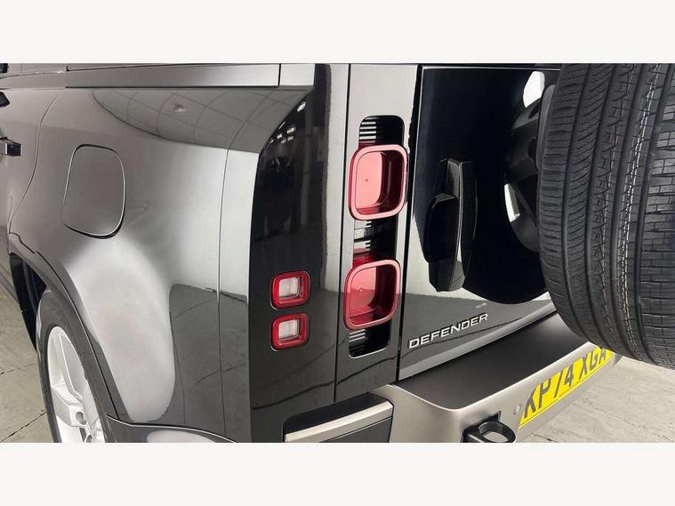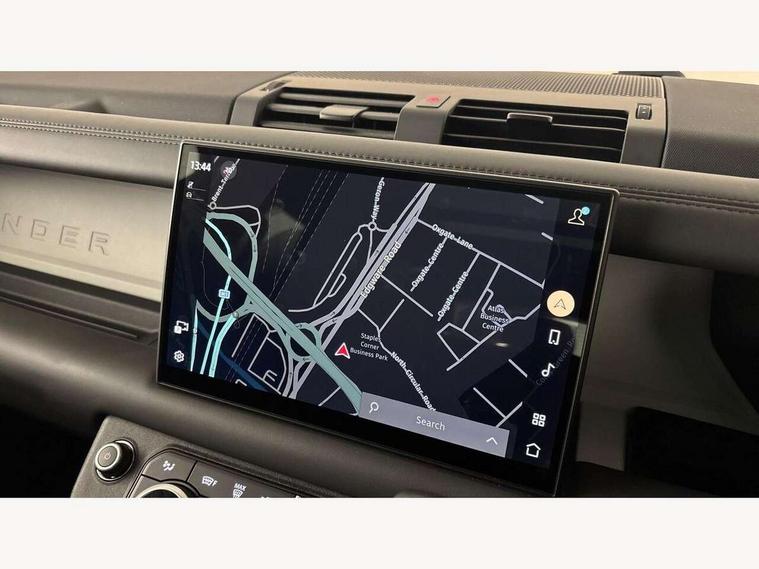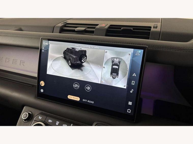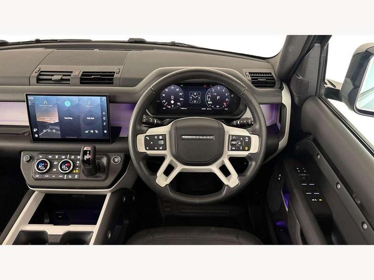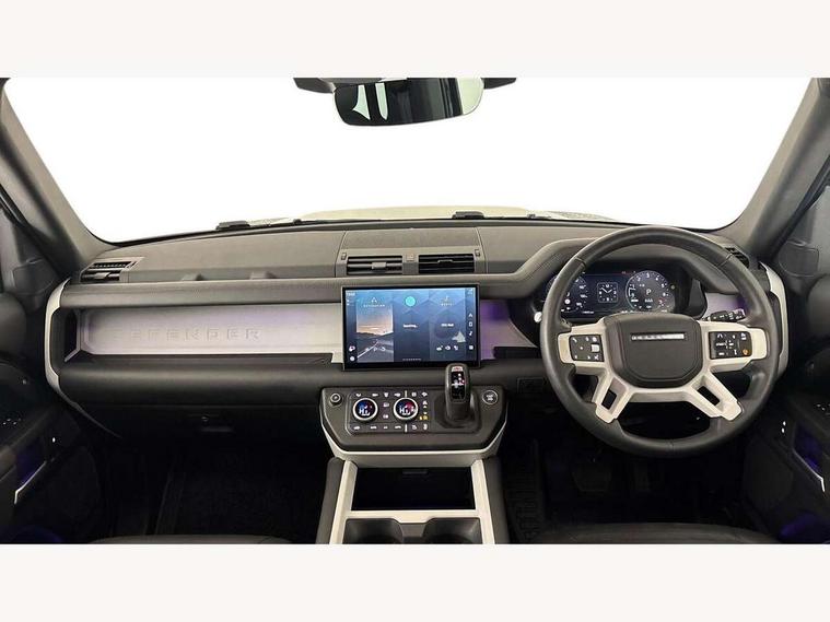 1 x USB-C (power only) & 1 x USB-C (power & data) in Row 1, 2 x USB-C in Row 2, 11.4" touchscreen, 360 degree parking aid, 3D Surround Camera with 360 View, 180 Rear View, Front Traffic Detection, Forward Vehicle Guidance, Tow Hitch Assist and clear sight Ground View, Adaptive cruise control, Android Auto, Apple CarPlay, Blind spot assist, Bluetooth system, Brake pad wear indicator, Clear exit monitor, Connected navigation pro, Driver condition monitor, Electric power assisted steering (EPAS), Interactive driver display, Lane keep assist, Push button start, Rear collision monitor, Rear traffic monitor, Traffic sign recognition with adaptive speed limiter, Trip computer, Wireless device charging, 8 speed automatic transmission, AC/DC charging, Adaptive dynamics, All wheel drive system, Electronic air suspension, Home charging cable mode 2 basic, Public charging cable, Twin speed transfer box, DAB Radio (Digital Audio Broadcasting), Meridian 700w surround sound audio system with 15 speakers, Pivi pro connected, Automatic headlight levelling, Automatic headlights, Black exposed rear recovery eyes, Body coloured bonnet, Centre high mounted stop light, Electric heated/power fold door mirrors with approach lights and auto dimming driver side, Electric windows with one touch open/close and anti-trap, Follow me home lighting, Front fog lights, Heated rear window with timer, Heated windscreen, Illuminated metal treadplates with brand name script, LED tail lights, Matrix LED headlights with signature DRL, Privacy glass, Puddle lights, Rain sensing windscreen wipers, Rear fog lights, Rear side wing doors, Rear wiper, Side hinged tailgate, Sliding panoramic roof, Standard tail door, Trailer stability assist, X-Dynamic badge, 12V power socket in loadspace, 3 seat bench in 2nd row, Alpine lights, Configurable cabin lighting, Durable rubber cabin flooring, Durable rubber loadspace flooring, Electric reach + rake adjustable steering column, Electrically adjustable steering column, Extended leather upgrade, Footwell lights, Front passenger isofix child seat attachment, Heated steering wheel, Loadspace cover, Loadspace Hook, Multifunction steering wheel, No flat load floor storage, Overhead stowage for sunglasses, Rear headrests, Rear ISOFIX, Rear reading lights, Single front passenger seat, Soft close tail door, Standard seat configuration, Storage glovebox, Sunvisors with illuminated vanity mirrors, Twin front cupholders, Non-smoker package, Online pack with data plan - Defender, 5 x 3 point seatbelts, ABS, Brake hold function, Cornering brake control (CBC), Customer configurable autolock, Driver and passenger airbags, DSC - Dynamic Stability Control, EBD - Electronic brakeforce distribution, Electric parking brake (EPB), Emergency brake assist, Emergency braking, ESP + traction control, Front airbags with passenger seat occupant detector, HDC - Hill descent control, Hill launch assist, Low traction launch, Power operated child locks, Remote for (e-Call, Optimised assistance call, InControl app, Climate, beep and flash and door), RSC - Roll stability control, Seat belt reminder, TPMS (Tyre pressure monitoring system), Alarm, Immobiliser, Intrusion sensor, Keyless entry, Locking wheel nuts, Secure tracker pro,
