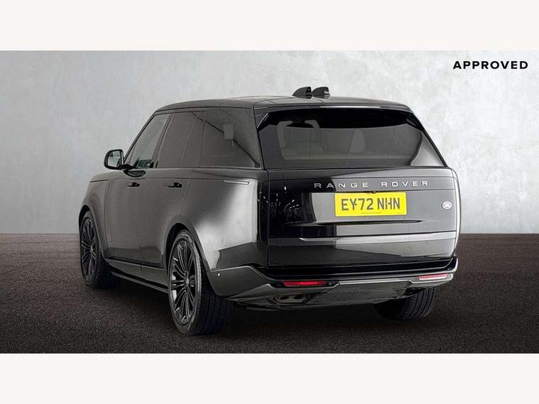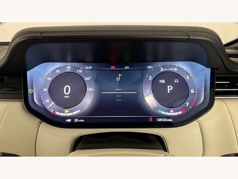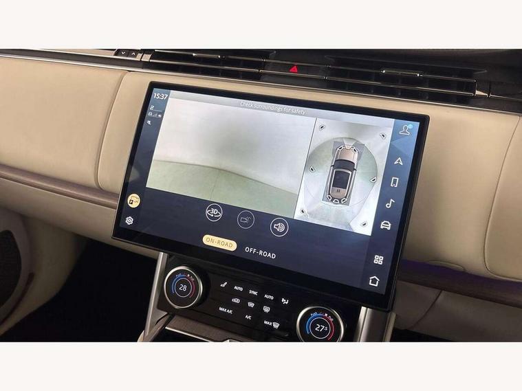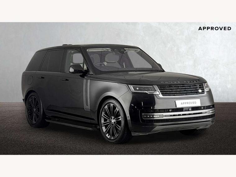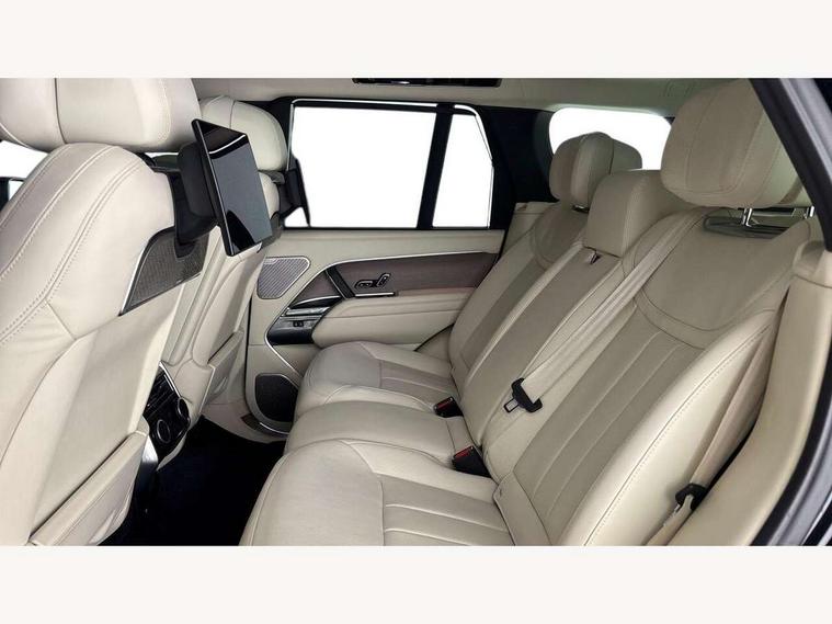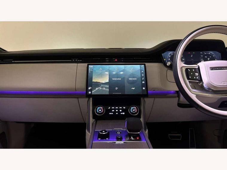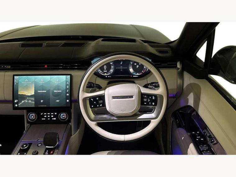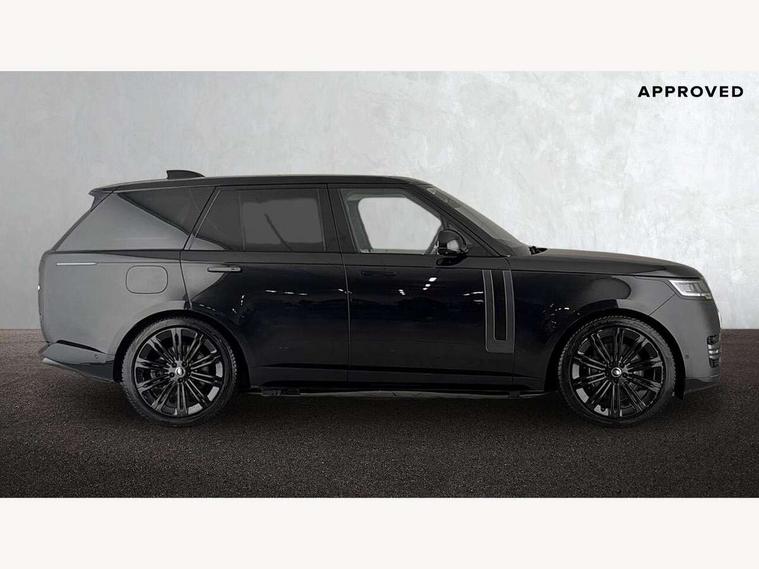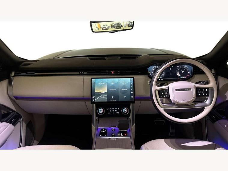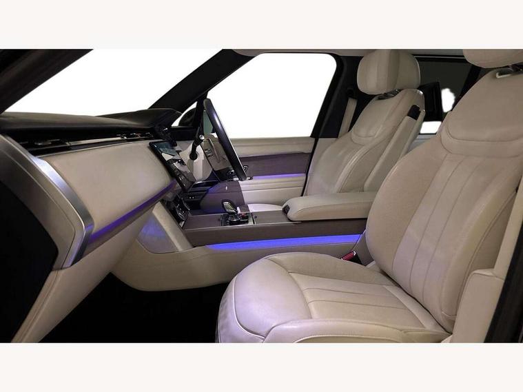 13.1" Touchscreen, 3D surround camera inc frwd traffic detection, vehicle clearance guidance, 3D view, clearsight ground view, manoevure light, 360 parking aid, wade sensing, Adaptive cruise control with steering assist, All Terrain Info Centre, All wheel steering, Android Auto, Apple car play, Blind spot assist, Bluetooth connectivity streaming, Configurable programs, Driver condition response, Eco mode, Electric power assisted steering (EPAS), Emergency call service, Front and rear parking aid, Head up Display, Interactive driver display, Lane keep assist, Powered gesture tailgate/boot lid, Rear collision monitor, Rear traffic monitor, Remote, Traffic sign recognition with adaptive speed limiter, Wi-Fi Enabled with data plan, Wireless device charging with phone signal booster, 8 speed automatic transmission, Active damper technology system, Adaptive dynamics, All terrain progress control, All Wheel Drive (AWD), Automatic access height, Electronic active differential with torque vectoring by braking, Electronic air suspension with dynamic response, Terrain Response 2 Auto, Twin speed transfer box, Digital Audio Broadcast radio-DAB, Meridian 1600W signature sound system, Pivi pro including smart settings, Connected navigation pro, nuance speech, USB socket, Acoustic laminated windscreen, Animated directional indicators, Automatic headlights, Automatic levelling headlights, Centre high mounted stop light, ClearSight interior rear view mirror, Digital LED headlights with signature DRL and image projection, Electric windows with one touch open/close and anti trap, Flush deployable exterior door handles, Front and rear recovery eyes, Front fog lights, Headlamp power wash, Heated rear window, Heated washer jets, Heated windscreen, Illuminated metal treadplates with First Edition script, Laminated front and rear side glass, LED tail lights, Power fold, auto-dimming, heated door mirrors with approach lights, Privacy glass, Rain sensing windscreen wipers, Rear boot, Rear fog lights, Rear side wing doors, Rear wash/wipe, Side repeater indicators in mirror, Sliding panoramic sunroof includes and auto sunblind, Solar attenuating windscreen, Trailer stability assist, Winter wiper park position, 12V power sockets, 3 seat bench in 2nd row, Air quality sensor, Auto folding loadspace cover, Bright metal pedals, Cabin air purification pro, Cabin lighting, Customer configurable single point entry, Domestic plug socket, Driver and passenger front seat armrests, Easy boot loading, Ebony Carpet, Electric rear side window sunblinds, Four zone climate control, Front and rear cupholders, Front and rear grab handles, Front centre console refrigerator compartment, Front head restraints, Gearshift paddles, Heated steering wheel, Hook in load space, Loadspace light, Luggage tie down in loadspace, Multifunction steering wheel, Rear centre armrest, Rear head restraints, Rear ISOFIX, Single front passenger seat, SV bespoke carpet mats, Twin blade sunvisors with Illuminated vanity mirrors, Upper and lower glovebox, Online pack with data plan - Range Rover, 3x3 point rear seat belts, Anti-lock braking system (ABS), Black brake calipers, Brake hold function, Cornering brake control (CBC), Customer configurable autolock, DSC - Dynamic Stability Control, Electronic brake force distribution, Electronic parking brake, Electronic traction control, Emergency brake assist, Emergency braking, Front airbags with passenger seat occupant detector, Front side airbags, Hill descent control, Hill launch assist, Illuminated seat belt buckles, Low traction launch, Occupant protection assist, Power operated child locks, Roll stability control, Tyre pressure monitoring system (TPMS), Immobiliser, Intrusion sensor and alarm, Keyless entry, Locking wheel nuts, Remote central locking, Noble chrome controls,