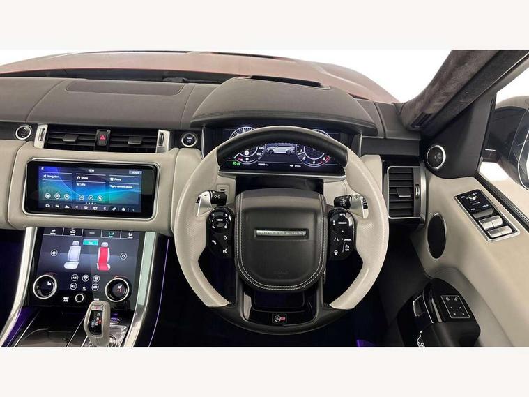 All Terrain Info Centre, Bluetooth connectivity, Clear exit monitor, Driver condition monitor, Incontrol apps in vehicle touchscreen, Incontrol pro services and wifi hotspot, InControl secure Tracker, Interactive Driver display instrument cluster, Mist sensor, Navigation pro system with 10" touch screen, app interface and media storage, Powered gesture tailgate/boot lid, Push button start, Rear traffic monitor, Remote premium - Upgraded Incontrol remote app including remote climate control (engine dependent), remote lock + Unlock and remote beep + flash, Touch pro duo system, Traffic sign recognition with adaptive speed limiter, Trip computer, Adaptive dynamics, All terrain progress control, Configurable dynamics, Electronic active differential with brake torque vectoring, Gradient release control (GRC), SVR sports suspension with dynamic response (active roll control), Terrain Response 2 with dynamic program, Twin speed transfer box, Bluetooth audio streaming, DAB Radio (Digital Audio Broadcasting), Incontrol protect - SOS emergency call with automatic collision detection, optimised assistance call and Incontrol remote app essential, USB/aux input socket, Acoustic laminated front windows, Active exhaust control, Adaptive brake lights, Auto dimming interior rear view mirror, Automatic headlights, Body coloured side sills and bumpers corners, Electric windows with one touch open/close and anti trap, Electrical towing preparation, Follow me home lighting, Front and rear recovery eyes, Headlight power wash, Heated rear window, Heated windscreen includes heated washer jets, Illuminated metal treadplates with brand name script, Laminated front and toughened rear side glass, LED rear lamps, Power fold, auto-dimming, heated door mirrors with memory and approach lights, Quad tailpipes, Rear fog lights, Rear wash/wipe, Remote window closing, Side repeater indicators in mirror, SVR badge, Switchable sports exhaust, Trailer stability assist, Unique light weight exhaust system, 16 way driver/passenger electrically adjustable SVR performance seats with memory, 2 way rear head restraints, 4 way lumbar support with memory function, 60/40 split folding rear seat, Aluminium gear shift paddles, Auto air recirculation, Bright metal foot pedals, Centre console with armrest, Climate control memory, Configurable Ambient interior lighting, Customer configurable single point entry, Driver's footrest, Extended leather upgrade includes door top rolls and leather instrument panel mid section, Front and rear cupholders, Front and rear premium carpet mats, Front door storage space, Front map lights, Front seat back map pockets, Front stowage pocket, Front/rear passenger grab handles, Heated steering wheel, Integrated front head restraints, Isofix child seat preparation, Loadspace light, Loadspace mounting provisions, Lockable glovebox, Multifunction steering wheel, Pollen filter, Reach/rake electric adjustable steering column + entry/exit tilt away, Rear centre armrest, Rear ISOFIX, Roller blind loadspace cover, Sports pedals, SVR leather steering wheel, SVR Performance seats, Three 12V accessory power outlets, 3 point seatbelts on all seats, Anti-lock braking system (ABS), Brake pre-fill technology, Cornering brake control (CBC), Curtain airbags, Customer configurable autolock, DSC - Dynamic Stability Control, Dual stage driver/passenger airbags, EBD - Electronic brakeforce distribution, Electronic parking brake, Electronic traction control, Emergency braking includes city, urban AEB and pedestrian, Front seatbelt pretensioners, Gradient acceleration control, Height adjustable front seatbelts, High speed emergency braking, Hill descent control, Hill launch assist, Low traction launch, Passenger seat occupant detector with front airbags, Power operated child locks, Roll stability control, Seatbelt warning, TPMS (Tyre pressure monitoring system), Immobiliser, Intrusion sensor, Keyless entry, Locking wheel nuts, Perimetric and volumetric anti theft alarm, Remote locking, Tracker system,