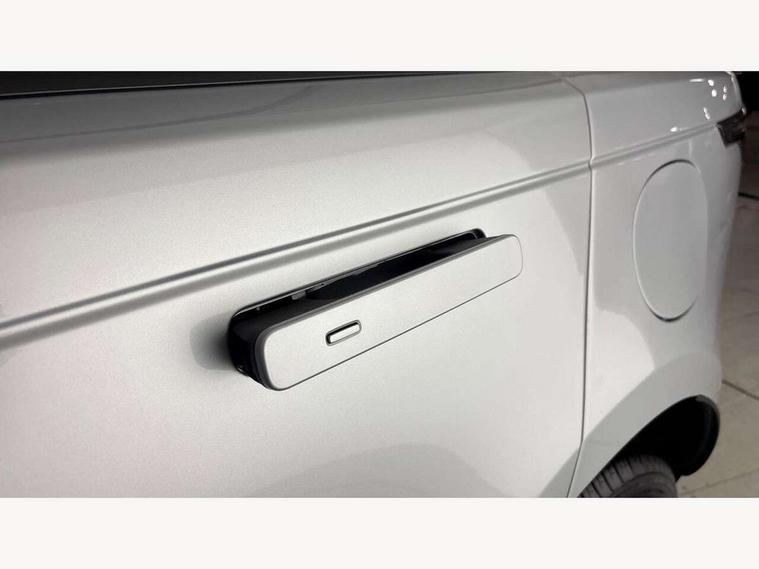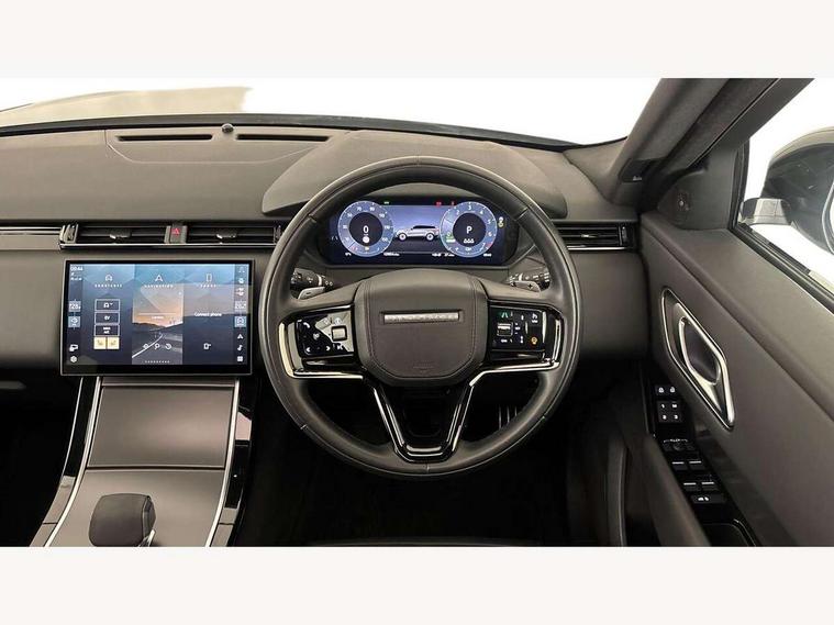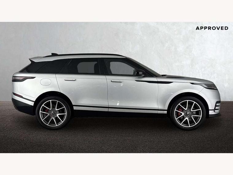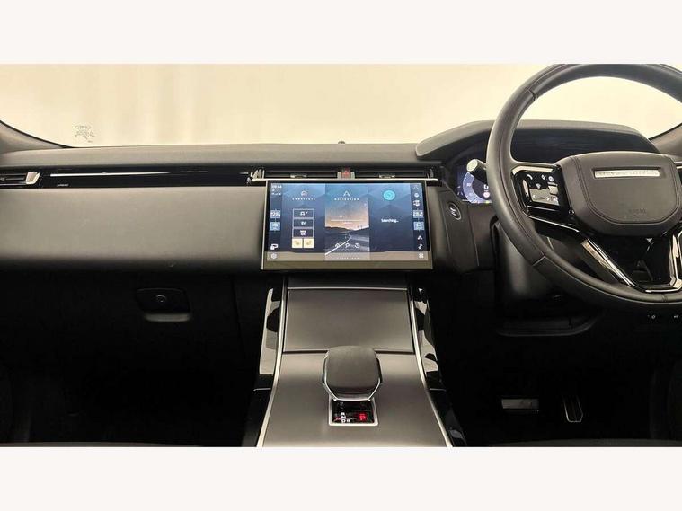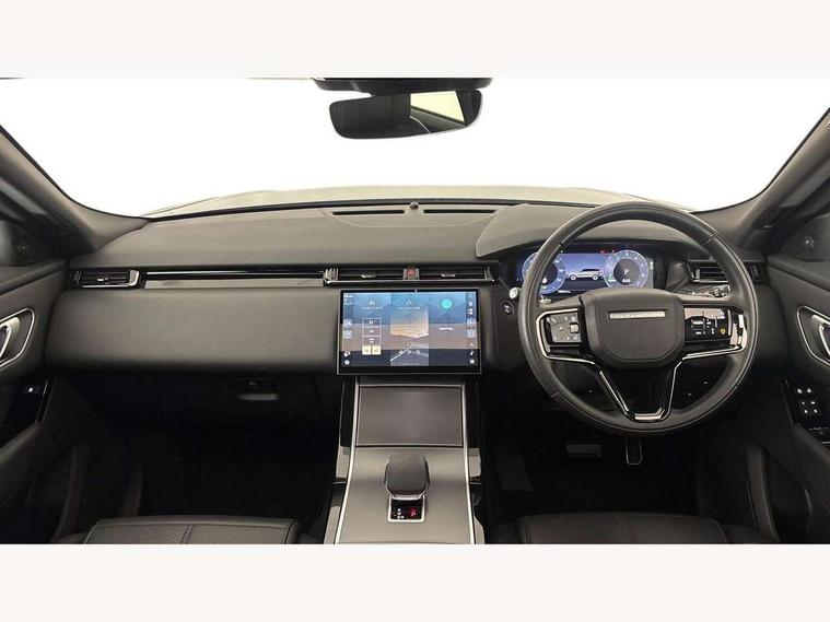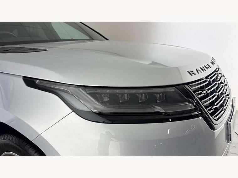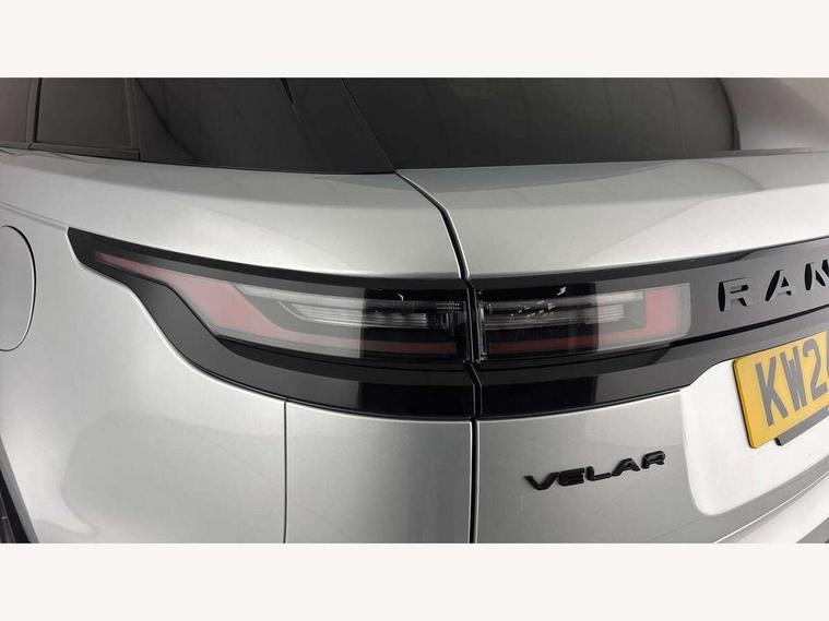 Adaptive cruise control with steering assist, Android Auto, Apple CarPlay, Blind spot assist, Bluetooth connectivity, Brake pad wear indicator warning light, Driver condition monitor, eCall emergency call system, Front and rear parking aid, InControl remote, Land Rover InControl apps, Lane keep assist, Pivi pro with connected navigation, Rear collision monitor, Rear traffic monitor, Service indicator, Speed proportional electronic power assisted steering (EPAS), Traffic sign recognition with adaptive speed limiter, Trip computer, Voice control system, Wireless device charging, 7kw on board charger, 8 speed automatic transmission, AC/DC charging, Adaptive dynamics, All terrain progress control, Coil suspension system, Home charging cable, Open differential with torque vectoring by braking, Public charging cable, Single speed transfer box, DAB radio, Steering wheel mounted controls, 3rd brake light, Acoustic laminated windscreen, Auto dimming interior rear view mirror, Automatic headlamp levelling, Automatic headlights, Body coloured bumpers, Boot protection plate, Electric windows with one touch open/close and anti trap, Flush deployable exterior door handles, Follow me home headlights, Heated rear window with timer, Heated washer jets, Heated windscreen, Metal front tread plates, Metal load space scuff plates, Pixel LED headlights with signature DRL, Power fold, auto-dimming, heated door mirrors with memory and approach lights, Rain sensor windscreen wipers, Rear animated directional indicators, Rear fog lights, Rear side wing doors, Rear wash/wipe, Tailgate/boot lid spoiler, Trailer stability assist, Velar badge, 3 seat bench in 2nd row, Ambient lighting, Bright metal pedals, Carpet mats, Driver/passenger sunvisors with illuminated vanity mirrors, Ebony morzine headlining, Electrically adjustable steering column, Extended leather upgrade, Heated steering wheel, Isofix system on outer rear seats, Loadspace cover, Overhead lighting console, Overhead stowage for sunglasses, Passive front headrests, Rear air vents, Rear centre headrest, Single front passenger seat, Twin front cupholders, Twin sliding front centre armrest, Online pack with data plan - Velar, Power socket pack 2 - Velar, 380mm front brakes and 325mm rear brakes, 3x3 point rear seatbelts, Anti-lock braking system (ABS), Cornering brake control, Curtain airbags, Customer configurable autolock, Door side intrusion beams, Driver airbag, DSC - Dynamic Stability Control, Electronic brake force distribution, Electronic parking brake, Electronic traction control, Emergency braking, Front and rear seatbelt reminder, Hill descent control, Hill launch assist, Low traction launch, Passenger airbag, Power operated child locks, Rear airbags, Roll stability control, Side airbags, Tyre pressure monitoring system (TPMS), Unpainted brake calipers, Global lock and unlock switch on driver door, Immobiliser, Intrusion sensor, Keyless entry, Lock only switch on front passenger door, Locking wheel nuts, Perimetric alarm, Remote central locking, All season tyres,