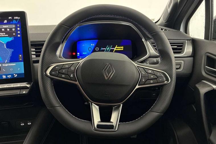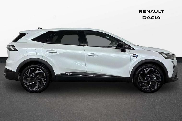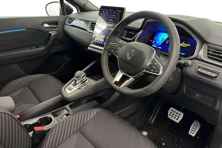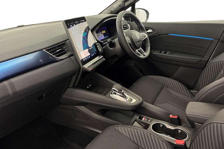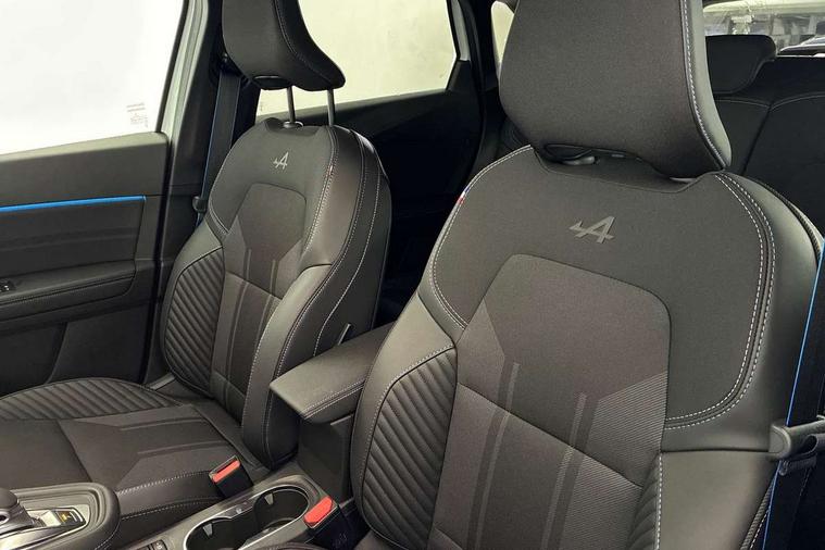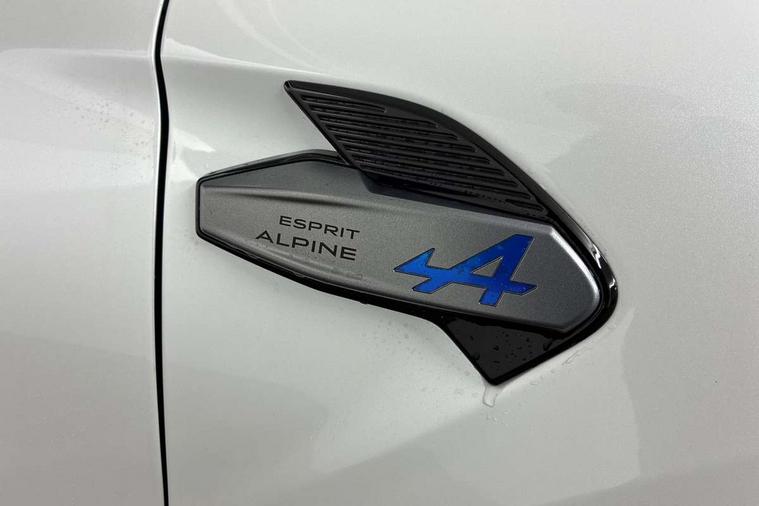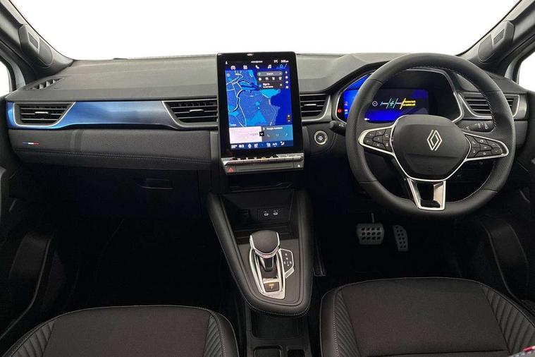 10.25" digital driver display, 10.4" OpenR link touchscreen with with built in Google Automotive Services and navigation, Adaptive cruise control with speed limiter, Blind spot warning and rear detection, Driver attention alert system, Eco mode driving function, Front, rear and side parking sensors, Front/rear detection with emergency lane keep assist incl. solid line, oncoming traffic and road edge detection, Gear change indicator, Lane centering assist, Multi Sense - 3 driving modes and up to 48 ambient lighting colours, My safety switch - ability to personalise ADAS features at press of a button, PAS, Power hands-free tailgate opening, Rear cross traffic/pedestrian alert with rear braking assitance, Rear view camera, Renault automatic emergency assist, Traffic sign recognition with overspeed prevention, Trip computer, Wifi smartphone integration compatible with Apple CarPlay and Android Auto, Wireless phone charger, 2 front and 2 rear USB-C ports, Arkamys speakers - x6 inc. 2 boomer, 2 tweeter and 2 bicone, DAB radio with Bluetooth, Automatic headlights, Automatic high / low beam, Automatic windscreen wipers with rain sensor, Dark tinted rear windows and tailgate, Electric adjustable/heated/auto folding door mirrors, Esprit alpine exterior styling, Frameless auto dimming rear view mirror, Front and rear electric windows with driver window one touch facility and anti pitch function, Front matte grey and rear skid plates, Full LED front and rear lights, Gloss black window surround, Heated rear window, LED daytime running lights, LED rear fog lights, LED third brake light, Radiator grille with 3D graphics in black upper part with grey graphics and body tone lower part, Rear side wing doors, Rear wiper, Shark fin antenna, 2 front roof LED lights and central rear rooflight with 3 reading LED lights, 3 seat bench in 2nd row, Aluminium sports pedals, Automatic air conditioning with one touch quick demist function and air quality regulator, Driver and front passenger seat with electric height adjustment, Esprit alpine interior styling, Flying console with central storage, sliding armrest and 2 rear air vents, Front and rear head restraints, Heated front seats, Heated synthetic leather steering wheel, Height and depth adjustable steering wheel, ISOFIX child seat fixing points on rear outermost seats, Modular boot floor, Rear seats - 1/3:2/3 foldable sliding bench, Recycled fabric upholstery, Single front passenger seat, Sunvisor with mirror and light, 3x3 point rear seatbelts, Abs with emergency brake assist, Active emergency braking system - Urban and pedestrian/cyclist, Distance warning alert, Driver and front passenger and 3 rear passengers seatbelt reminder, Driver and front passenger, side, head and curtain airbags, Driver height adjustable seat belt, Electronic parking brake with auto hold function, Front passenger airbag deactivation, Hill start assist, Occupant safe exit, Rear window and door child locking function, Tyre pressure warning light, Central door locking, Hands free keycard with Keyless access and start, Brushed blue decorative upper strip, Lower textile strip on dashboard with red, white and blue flag, 19" Esprit alpine elixir alloys wheels,