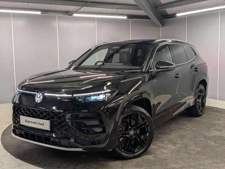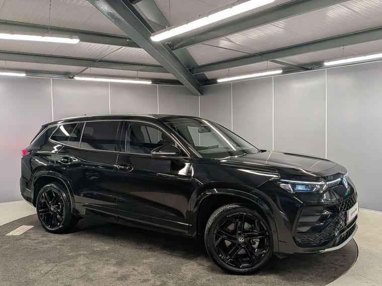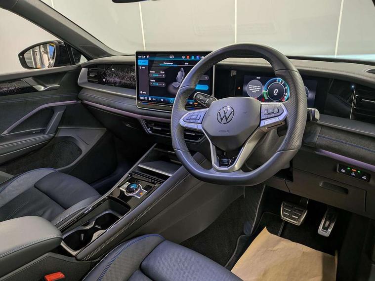 Adaptive cruise control (ACC), Digital Cockpit Pro - 10.25" high resolution dash display screen with customisable menus and information, Driver alert system, Driver attention monitoring system, Dynamic road sign display, E-Sim card for online connectivity, eCall emergency call system, Lane change system, Side assist, Rear traffic alert and Exit warning system, Multifunction front facing camera, Oncoming vehicle braking when turning including swerve support, Progressive steering, Start/stop system with regenerative braking, Voice activation spoken voice commands for telephone and navigation system, Warning signal and warning light for front and rear seatbelts not fastened, Wireless App-Connect, Adaptive chassis control DCC pro includes driving mode selection, Charging cable Mode 2 Type 2 / G (10A), Charging cable Mode 3 Type 2 / 3 (16A), Front shock absorption G08, Front wheel drive, Rear shock absorption, Digital radio reception (DAB), Diversity antenna for FM reception, Air intake with Chrome trim, Auto dimming interior rear view mirror, Automatic headlight control system, Body colour door handles, Chrome moldings on the side windows, Coming/leaving home lighting function, Dynamic headlight range control with dynamic cornering light, Exterior mirrors convex on the left and aspherical on the right, Heat insulating glass in side and rear windows, Illuminated Volkswagen logo rear with animation, Laminated safety glass windshield, heat insulating, LED 3rd brake light, LED separate signature day time running light, Puddle lights, Rain sensor windscreen wipers, Rear fog light on one side, reversing light on both sides, Rear side wing doors, Rear wiper, Reverse activated passenger's door mirror, Surround lighting with welcome light, Tilting and sliding panoramic sunroof with rear panoramic sunroof, Volkswagen logo in front, illuminated lighting animation with wake up/goodbye scenario and illuminated door handles, 10 colour interior ambient lighting, 12V outlet in center console rear and in luggage compartment, 3 rear headrests, 3 rear seat bench in 2nd row, split folding, longitudinally movable and folding with load-through hatch, Black roof lining, Brushed stainless steel pedals, Carpet mats, front and rear, Centre console with illuminated storage compartment with sliding cover and two drinks holders, Chrome elements on the mirror switch and power window switches and door pulls, Door and side trim panel insert in Art velour, Flat luggage compartment floor, Front centre armrest, Front scuff plates in aluminium, ISOFIX anchors for child seats on outer rear seats and front passenger seat compatible with i-Size, Mechanical rear seat release, Power adjustable lumbar support in front, Single front passenger seat, Sports comfort seats in front, Sun visors with illuminated vanity mirrors, Comfort package with park assist pro - Tayron, 3 Point seat belts in front with pretensioners, 3 point seatbelts in outer rear with ECE label, Autonomous emergency braking front assist with pedestrian and cyclist monitoring, Driver and front passenger airbag with front passenger airbag deactivation, Electronic parking brake with auto hold, First aid kit with warning triangle and safety vest, Front and rear curtain airbags, Front and rear side airbags, Front centre airbag, Front disc brakes, Hill start assist, Rear disc brakes, Two tone horn, Decorative material set R-Line, Interior door handle in matte chrome, Tool kit for tyre mobility set, Tyre mobility kit including compressor and sealing foam. In lieu of spare wheel,