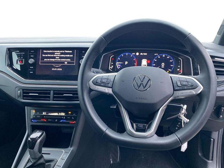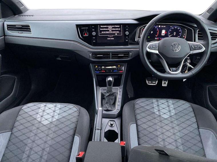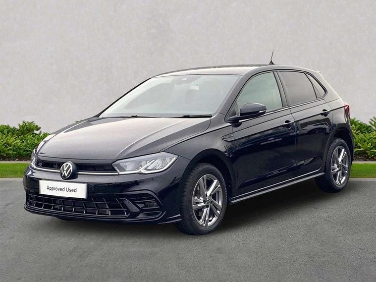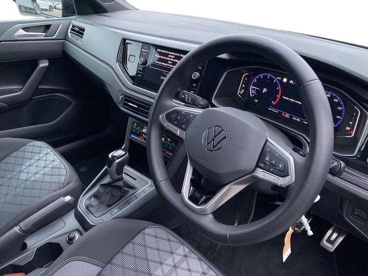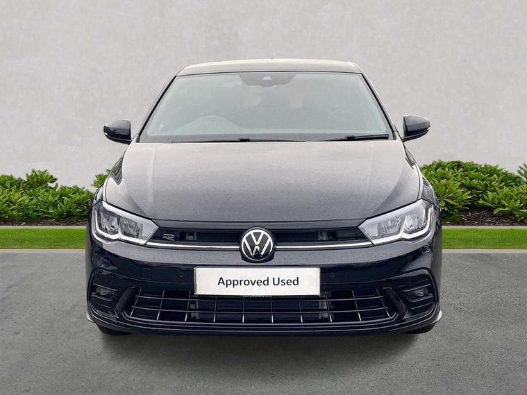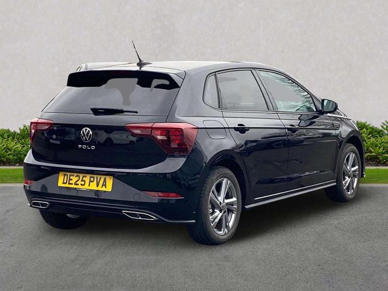 Adaptive cruise control with follow-to-stop and speed limiter, Advanced driver attention and drowsiness monitor, Bluetooth mobile phone interface, Digital Cockpit Pro with 10.25" Display, Dynamic road sign display, Emergency call service, Multifunction camera, Power assisted speed sensitive steering, Preparation for We connect and We connect plus, Speedo and rev counter, electronic odometer, trip, service interval display and fuel gauge, Standard rear axle, Travel Assist - Lane keeping system and traffic jam assist, Travel assist including emergency assist, Trip computer, Warning signal and warning light for front and rear seatbelts not fastened, Washer fluid level indicator, Wireless app connect, Front wheel drive, Rear shock absorpion, Start-stop system with battery regeneration (recuperation - energy recovery during braking), DAB Digital radio, Diversity antenna for FM reception, Front and rear 6 speakers, Body colour bumpers, Body colour door handles, Electric front windows, Front scuff plates with R-Line logo, Heat insulating glass windscreen, Power folding adjustable/heated exterior mirrors and front passenger exterior mirror lowering function, Rear electric windows, Rear fog light, Rear side wing doors, Rear windscreen washer and wiper with interval delay, Third brake light, 12V power socket in centre console, 2 USB-C ports in the front, 2 USB-C charging sockets on the center console in the rear, 3 rear head restraints, 60/40 split folding rear seat and rear seat bench not split, Air care climatronic air conditoning system with active combination filter and 2-zone temperature control, Black roof lining, Carpet mats, front and rear, Chrome plated radiator grille inserts, air vent surrounds and light switch surrounds, Door and side trim panel, Driver and front passenger seat height adjustment, Driver/passenger sunvisors with illuminated vanity mirrors, Front centre armrest, Front footwell illumination, Front seat backrest storage pockets, Front sports comfort seats, Handbrake lever handle in leather, Headliner in recycled material, Isofix child seat preparation easy-fit (for two outer rear seats, and front passenger seat) compatible with I-size, Karoso artvelours cloth upholstery, Leather trimmed gear knob, LED interior light with switch off delay and dimmer, 2 reading lights front and rear, Luggage compartment cover, Luggage compartment floor, Luggage compartment lighting, Lumbar adjustment for front seats, Single front passenger seat, Stainless steel pedals, Standard pedal cluster, Three spoke leather wrapped multifunction steering wheel with shifting paddles, Light and sight pack - Polo R-Line/Black Edition, 3 point height adj front seatbelts + pretensioners, 3x3 point rear seatbelts, ABS, Driver and front passenger airbag with front passenger airbag deactivation, Drivers and front passengers safety optimised head restraints, ESC (Electronic stability control) + EDL (Electronic Differntial lock) and ASR (Traction control), Extended and predictive pedestrian/ cyclist protection, Front curtain and side airbags with center airbag, Front/rear disc brakes, Hill hold control, Manual child lock in rear doors, Single tone horn, Tyre pressure loss indicator, Alarm with interior protection, Anti-theft alarm system with interior monitoring, backup horn, and towing protection, Anti-theft wheel bolts, Electronic engine immobiliser, Chrome applications on rotary light, mirror adjustment, window regulator switches, outlet with frame in black, Dark grey anodised matt decorative inserts in dash and front door panels, 16" Coventry alloy wheels, Low rolling resistance tyres,