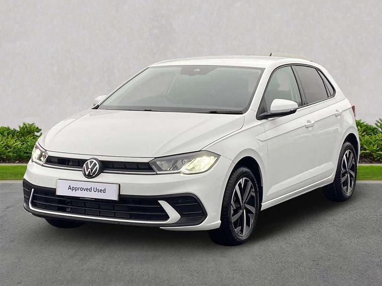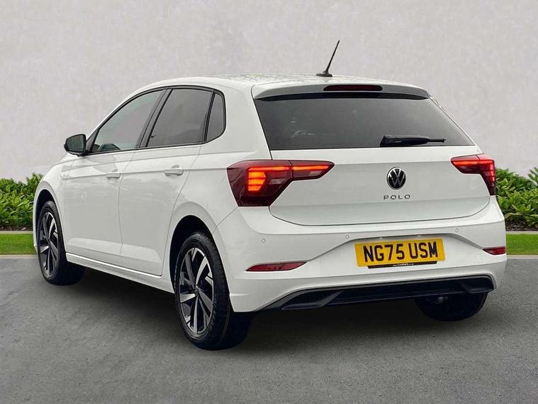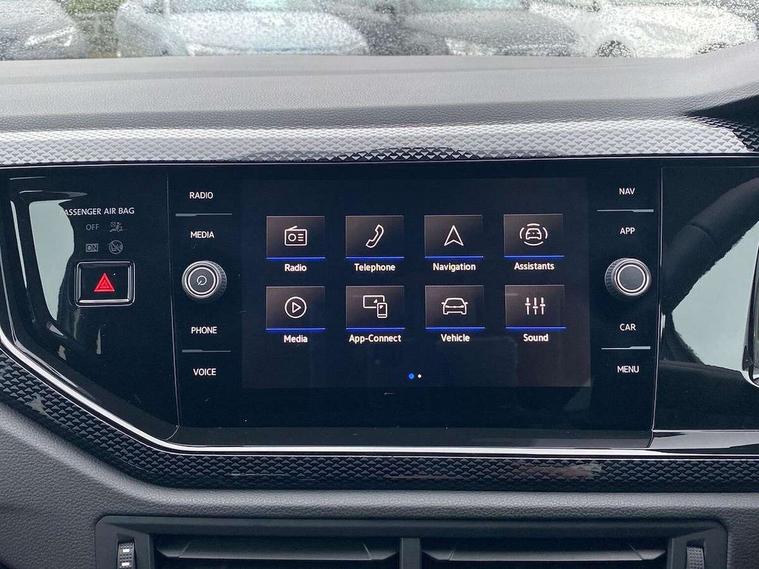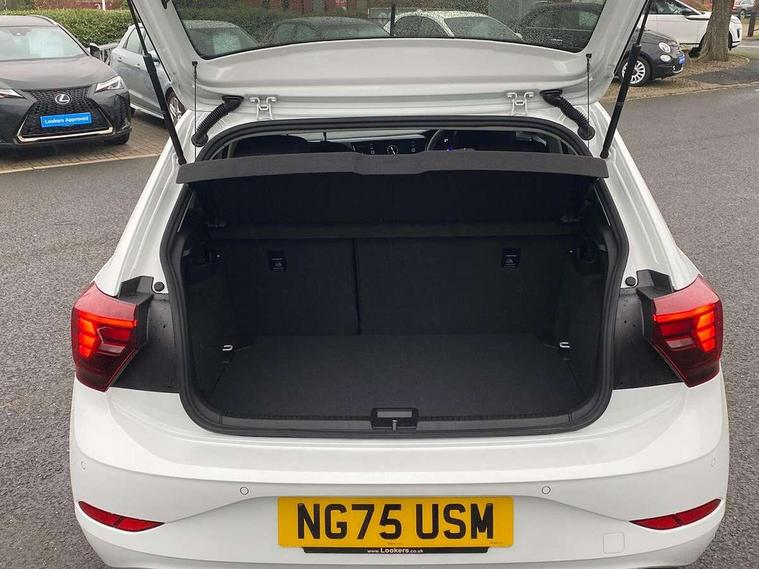 Advanced driver attention and drowsiness monitor, Bluetooth mobile phone interface, Dynamic road sign display, Emergency call service, Mobile phone preparation with inductive charging function, Multifunction front facing camera for distance control, Power assisted speed sensitive steering, Predictive adaptive cruise control without follow-to-stop and speed limiter, Preparation for navigation system with media and internet package, Preparation for We connect and We connect plus, Rear view camera, Speedo and rev counter, electronic odometer, trip, service interval display and exterior temperature gauge, Standard rear axle, Travel Assist - Lane keeping system and traffic jam assist, Travel assist including emergency assist, Trip computer, Warning signal and warning light for front and rear seatbelts not fastened, Washer fluid level indicator, Wireless app connect, Front wheel drive, Rear shock absorpion, Start-stop system with battery regeneration (recuperation - energy recovery during braking), DAB Digital radio, Diversity antenna for FM reception, Automatic dimming interior rear view mirror, Automatic headlight control with LED separate daytime running lights with coming/leaving home function, Body colour bumpers with chrome inserts, Body colour door handles, Body colour door mirrors, Electric front windows, Engine badge deletion, Headlight range adjustment, Heat insulating and laminated safety glass windshield, LED Headlights, LED rear combination lamps, Power folding adjustable/heated exterior mirrors and front passenger exterior mirror lowering function, Rain sensor, Rear electric windows, Rear fog light, Rear side wing doors, Rear tinted glass from B-pillar backwards approx 65% tinted, Rear windscreen washer and wiper with interval delay, Third brake light, 12V power socket in centre console, 2 front and 2 rear reading lights with switch off delay and dimmer, 2 USB-C ports in the front, 2 USB-C charging sockets on the center console in the rear, 3 rear head restraints, 60/40 split folding rear seat and rear seat bench not split, Carpet mats, front and rear, Ceramique roof lining, Chrome plated radiator grille inserts, air vent surrounds and light switch surrounds, Door and side trim panel, Driver and front passenger seat height adjustment, Driver/passenger sunvisors with illuminated vanity mirrors, Front centre armrest, Front seat backrest storage pockets, Front standard seats, Handbrake lever handle in leather, Hartley/Thomas cloth upholstery, Headliner in recycled material, Isofix child seat preparation easy-fit (for two outer rear seats, and front passenger seat) compatible with I-size, Leather trimmed gear knob, Luggage compartment cover, Luggage compartment lighting, Removable luggage compartment floor, Single front passenger seat, Standard climatic zones, Standard pedal cluster, Three spoke leather wrapped multifunction steering wheel with shifting paddles, Light and vision pack - Polo, 3 point height adj front seatbelts + pretensioners, 3 point seat belt for centre rear seat, 3 point seatbelts, outer rear with ECE lable, ABS, Driver and front passenger airbag with front passenger airbag deactivation, Drivers and front passengers safety optimised head restraints, ESC (Electronic stability control) + EDL (Electronic Differntial lock) and ASR (Traction control), Extended and predictive pedestrian/ cyclist protection, Front assist with autonomous emergency braking (for Adaptive Cruise Control ACC up to 130 mph), Front curtain and side airbags with center airbag, Front disc brakes, Hill hold control, Manual child lock in rear doors, Rear drum brakes, Single tone horn, Tyre pressure loss indicator, Alarm with interior protection, Anti-theft alarm system with interior monitoring, backup horn, and towing protection, Anti-theft wheel bolts, Electronic engine immobiliser, Lava stone black gloss/matt decorative inserts in dash and front door panels, 16" Torsby alloy wheels, Low rolling resistance tyres,