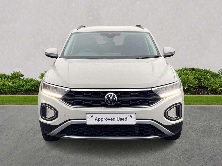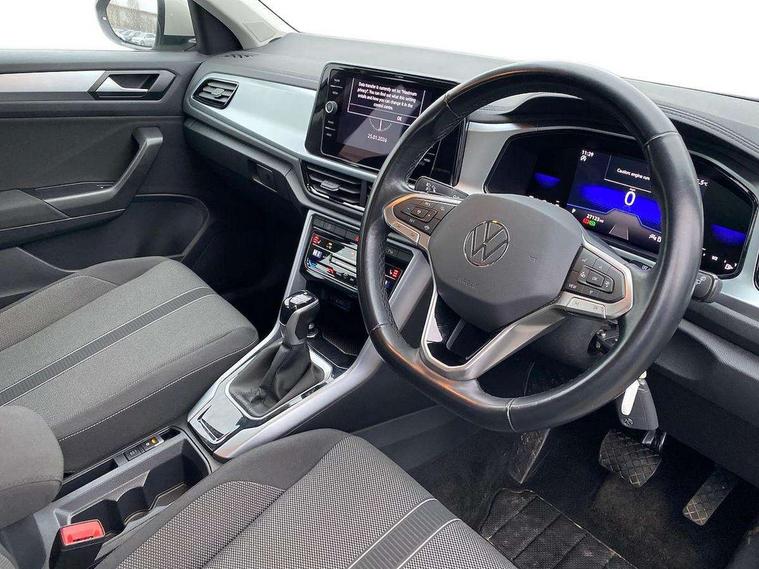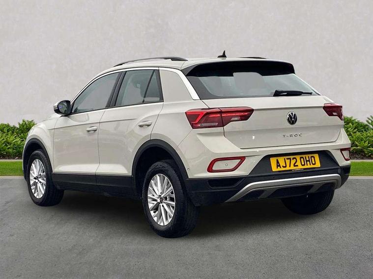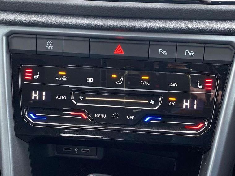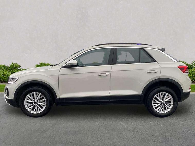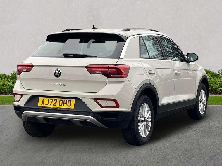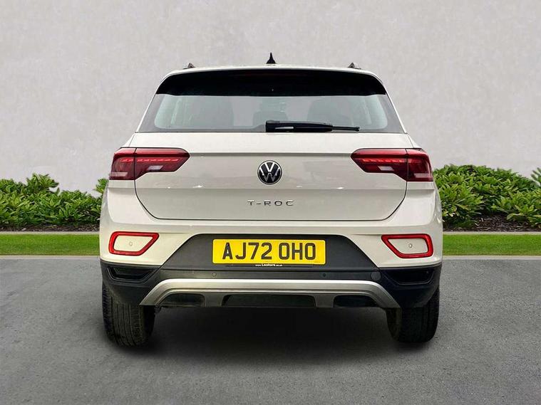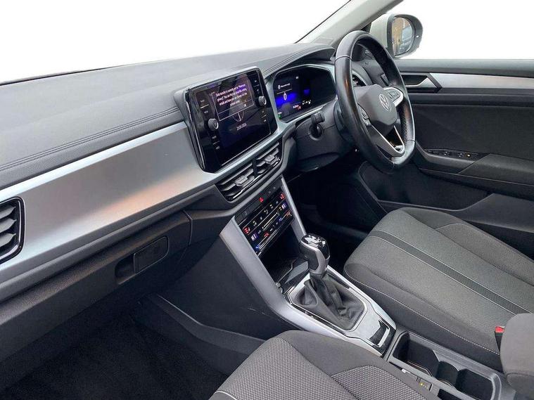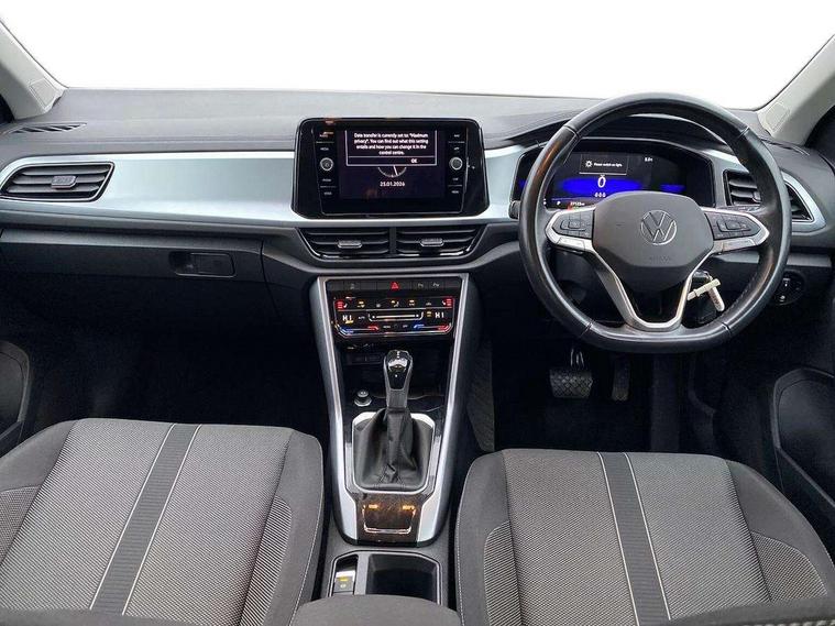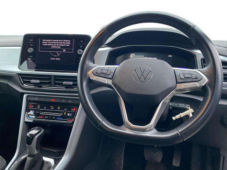 Bluetooth mobile phone interface, Driver alert system with fatigue detection, Driver tips and journey analysis, Emergency call service, Lane keeping system Lane Assist, Modified key software - reduce switch off time for key status change to Long no motion, Online services, Park assist including front and rear parking sensors, Power assisted speed sensitive steering, Service interval indicator, Tailgate/trunk lid release from outside, Think blue trainer driver tips and journey analysis, Warning sound and light for front seatbelts unfastened, Wireless app connect, Battery regeneration during braking, Front shock absorption, Rear shock absorption chassis with increased ride height, Start/stop function with battery regeneration, DAB Digital radio, Diversity antenna for FM reception, Front and rear 6 speakers, Music playback - MP3, WMA and AAC files, Premium USB cable in choice of either Apple or Android smartphone compatibility, SD card slot, Simultaneous pairing of 2 compatible mobile devices, Title and cover art display, We Connect and We Connect Plus functionality, 3rd brake light, Auto dimming interior rear view mirror, Automatic hazard lights activation under emergency braking, Automatic headlight control with LED separate daytime running lights with coming/leaving home function, Black roof rails, Body coloured bumpers and radiator grille with chrome trim and front fog lamps with chrome bezel, Body coloured exterior mirror housings and door handles, Extended roof spoiler, Exterior mirrors aspherical on driver side, convex on front passenger side, External USB type C socket and charging sockets, Front windscreen wiper with intermittent wipe and 4 position delay, Heated rear window, LED Headlights, LED rear combination lamps, LED rear number plate lights, LED tail lamp rear comination lamps, Power windows with comfort operation and circuit breaker, Rain sensor, Rear exhaust tailpipe, Rear fog light on one side and reversing lights on both sides, Rear side wing doors, Rear wash/wipe with intermittent wipe setting, Remote electrically foldable door mirrors, puddle lights and reverse activated passenger's door mirror, 12V power socket in centre console, 3 rear head restraints, 3 seat bench in 2nd row, 4 load lashing points in luggage compartment, Air care climatronic air conditoning system with active combination filter and 2-zone temperature control, Ambient lighting with mirror logo projection, Cloth upholstery, Door and side trim panel in cloth, Drawer under drivers seat, Driver/front passenger seat height adjustment, Front centre armrest, Front comfort sports seats, Front cupholders x 2, Front reading light, Instrument lighting, white adjustable panel illumination, Interior light delay, Isofix child seat preparation, Leather gearshift handle, Load-through provision with cup holder when folded down ('Unsplit rear seat bench, split folding backrest, with centre armrest), Luggage compartment lighting, Lumbar support for driver's and front passengers seat, Non-folding front passenger seat backrest, Single front passenger seat, Storage compartment in left and right luggage area, Storage compartment in rear doors, Storage compartments in driver and front passenger doors, Sunvisors with illuminated vanity mirrors, Variable boot floor, height adjustable and removable, Driver assistance pack without proactive passenger protection - T-Roc, 3 point height adj front seatbelts + pretensioners, 3 point seatbelts in outer rear with ECE label, ABS, Child locks on rear doors, Driver and front passenger airbag with front passenger airbag deactivation, Driver and front passenger safety-optimised head restraints, Drivers seatbelt reminder, Electronic parking brake, Electronic Stability Control (ESC) inc EDL (Electronic Differential Lock) and ASR (Traction Control), Front and rear passengers curtain airbag system including front side airbags, Front assist with city emergency braking and pedestrian monitoring, Front disc brakes, Front seat side impact airbags, Hill start assist, Predictive pedestrian protection, Rear disc brakes, Single tone horn, Tyre pressure loss indicator, Volkswagen roadside assistance, Alarm with interior protection, Anti-theft alarm system with interior monitoring, backup horn, and towing protection, Remote central locking with SAFELOCK, radio remote control with 2 remote control folding keys, Pewter matt decorative inserts for intrument panel, centre console and door panels at the front, Trims for alloy wheels,