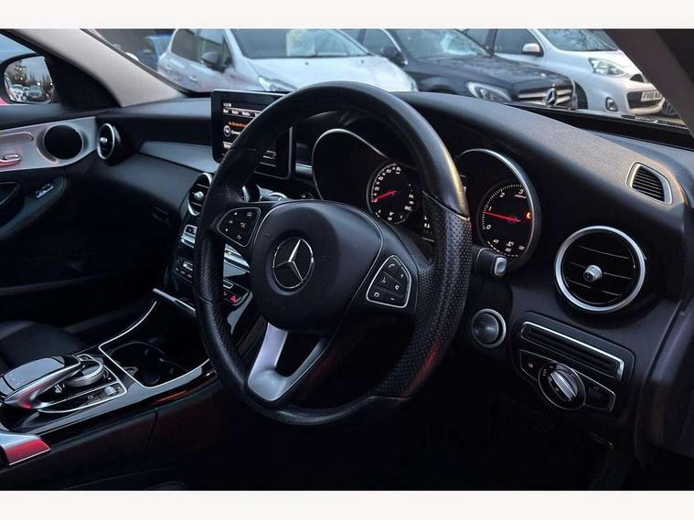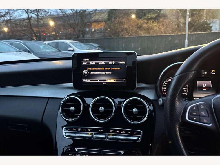 Active park assist with parktronic system, Attention assist, Automatic boot closing, Bluetooth interface for hands free telephone, Collision prevention assist, DYNAMIC SELECT with a choice of driving modes (ECO, Comfort, Sport, Sport+ and Individual), Garmin Map Pilot navigation system with SD card, touchpad and voice control, Multi function trip computer, Outside temperature gauge, Remote boot release, Service indicator (ASSYST PLUS), Speed sensitive steering, Diesel particulate filter, DAB Digital radio, Frontbass loudspeakers, Mercedes Audio 20 radio/single CD + telephone keypad, USB connection, Adaptive brake lights, Body coloured bumpers, Electric front sliding and fixed rear panoramic glass sunroof, Electric windows one touch open/close, Electrically adjustable and heated door mirrors, Green tinted glass, Heated windscreen washers, LED daytime running lights, LED tail lights, Radiator grille with integral star and 2 louvres in matt iridium silver with chrome trim, Rain sensor windscreen wipers, 12V power socket in centre console, 2 cupholders in front centre console, 2 way rear head restraints, 3 spoke nappa leather steering wheel, 4 way adjustable front head restraints, 40:20:40 split folding rear seats, Advanced multicolour ambient light and LED interior light, Aluminium door trim, Auto Mercedes-Benz child seat recognition sensor, Dual zone automatic climate control, Front centre armrest with storage compartment, Gearshift paddles, Heated front seats, Illuminated glovebox, Multifunction steering wheel, Rear top tether child seat ISOFIX attachment, Sports seats, Sunvisors with illuminated vanity mirrors, Lighting pack - C class, Memory pack - C Class, Mirror pack - C Class, Seat comfort pack - C Class, Stowage space pack - C Class, 3 rear 3 point seatbelts, ABS with Brake Assist, Active bonnet, Adaptive brake system, Child proof door locks, Drivers knee airbag, Dual stage driver/passenger airbags, Electronic parking brake, ESP with ASR, Front passenger seat occupancy sensor, Front side airbags, Hill start assist, Pre-Safe anticipatory safety system, Tyre pressure monitoring system, Warning triangle and first aid kit, Window airbags, Alarm system/interior protection/immobiliser, Chrome surround in electric key, Keyless entry and keyless start, Remote central locking, Tyre inflation kit,