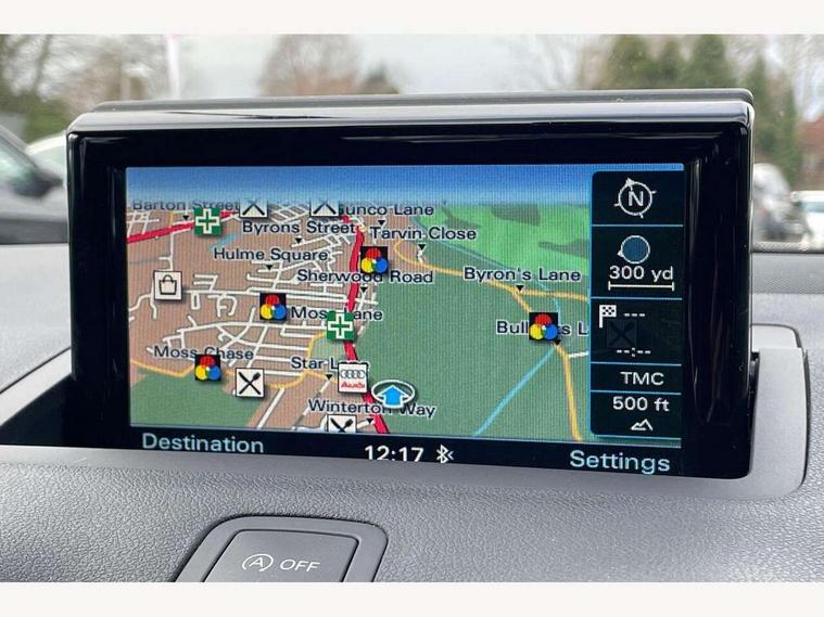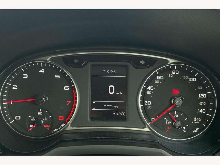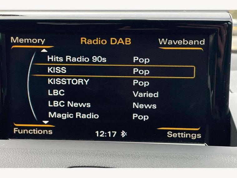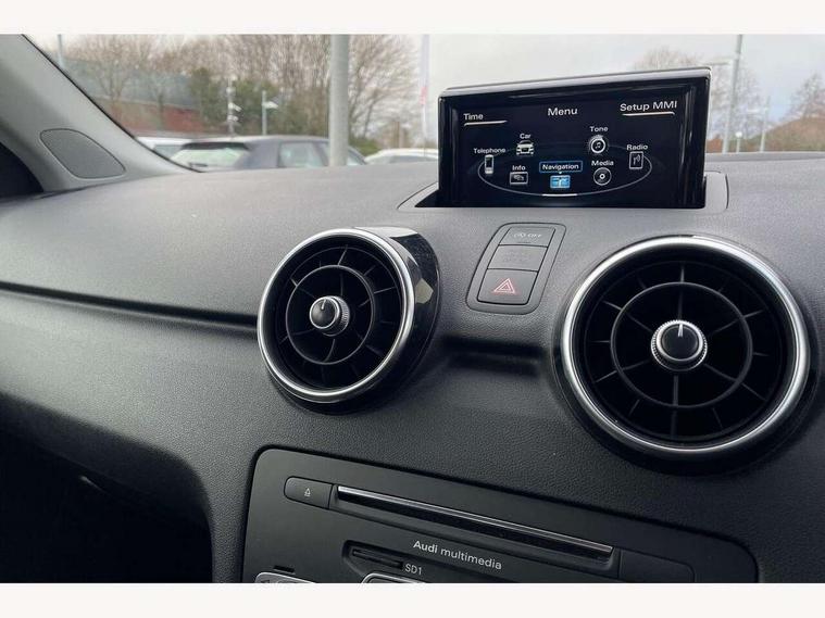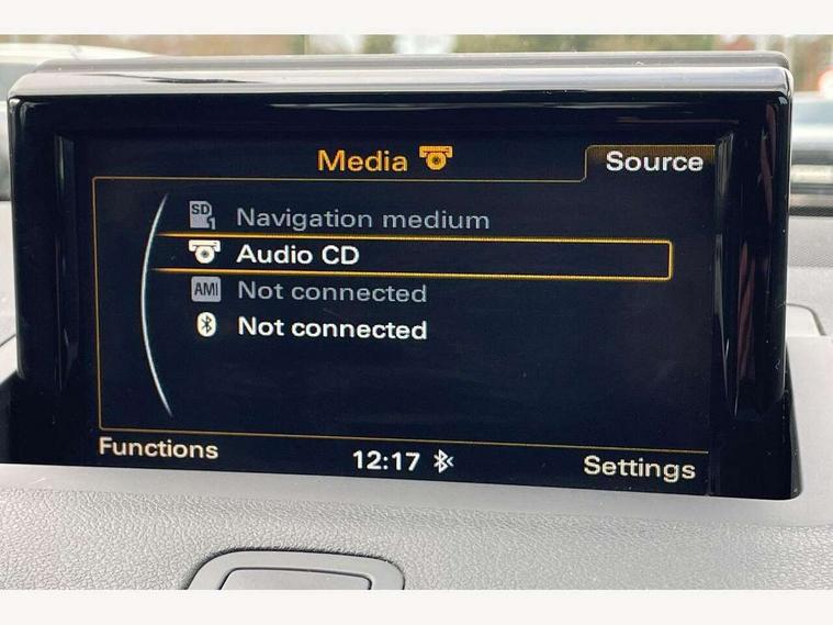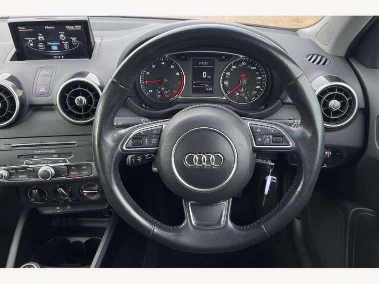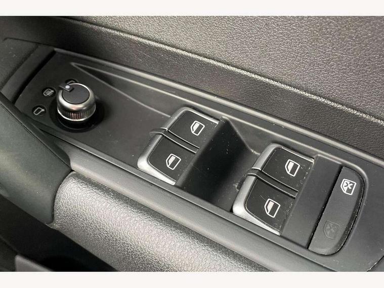 Cruise control, Driver's information system, Electro-mechanical PAS, Low washer fluid indicator, Service interval indicator, Voice control system, Additional SD card reader, Audi music interface, Bluetooth audio streaming, DAB Digital radio, Adaptive brake lights, Body coloured bumpers, Body coloured door mirrors, Electric adjustable door mirrors, Electric front windows, Electric rear windows, Front fog lights, Heat insulating glass, Heated door mirrors, Heated rear windscreen, Polished stainless steel tailpipe, Rear wiper, 12V Accessory socket in centre console, 3 rear seats, 3 spoke leather multifunction sports steering wheel, Adjustable rear head restraints, Cupholders in centre console, Door sills trims with aluminium inlays, Front floor mats, Front head restraints, Front sports seats, Height adjustable front seats, Illuminated glovebox, Isofix attachments on outer rear seats, Jack and tool kit, Leather gear knob, Leather handbrake, Lumbar adjustment for front seats, Rake/reach adjustable steering wheel, Split folding rear seats, Titanium grey cloth headlining, 3x3 point rear seatbelts, ABS/EBD, Brake assist function, Driver and passenger side airbags, Driver/Front Passenger airbags, EDL, ESP with ASR, First aid kit, Front and rear seatbelt reminder, Front passenger airbag deactivation, Head airbags, Height adjustable front seatbelts, Tyre pressure monitor, Warning triangle, Locking wheel bolts, Remote central locking with 2 remote folding keys, Thatcham category 1 alarm + immobiliser, High gloss black air vent sleeves, Tyre repair kit,