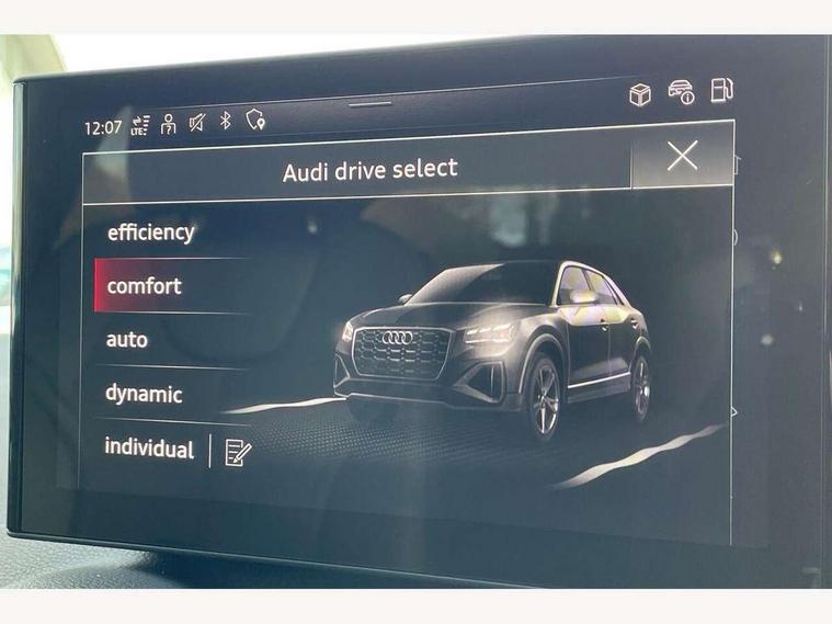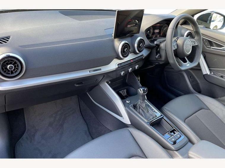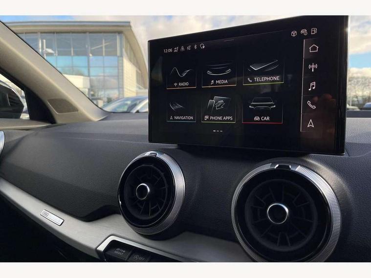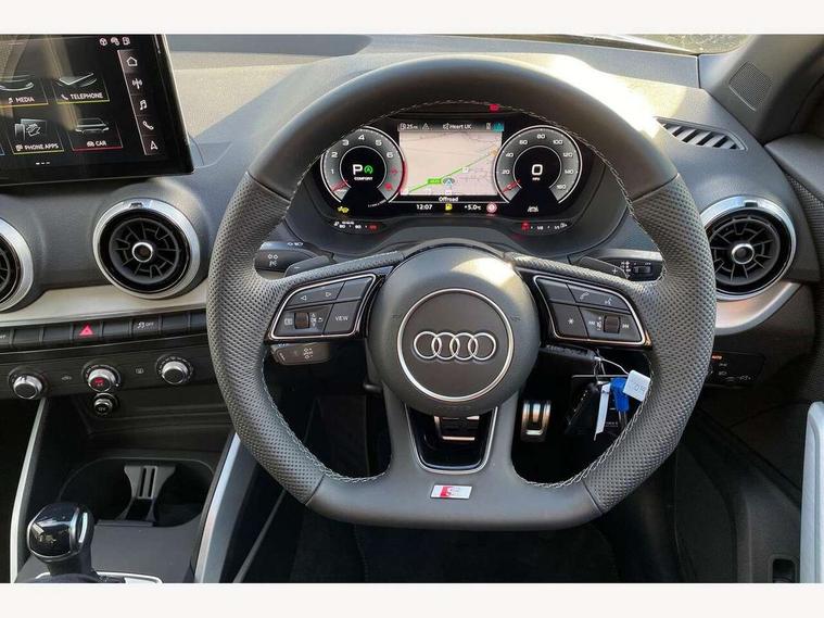 3D map display, Audi connect navigation and infotainment includes innovative services, Audi connect remote and control connects your vehicle to your smartphone, Audi drive select: S tronic - power steering assistance + engine + gearshift (modes: comfort, auto, dynamic, efficiency, individual), Audi smartphone interface - Apple carplay/Android Auto, USB connect, 2xSDXC card readers, voice control for navi, telephone, music and 3rd party apps, Audi virtual cockpit, Automatic start/stop system with recuperation, Bluetooth interface includes bluetooth audio streaming, Camera based traffic sign recognition, Cruise control, Distraction and Fatigue warning, E-call, Jukebox hard drive memory for music (10GB), Lane departure warning, MMI navigation plus with 8.8" touchscreen, Natural voice recognition, Power operated tailgate, Progressive steering, Rear parking sensors, Sport suspension, 6 passive loudspeakers, DAB Digital radio, USB type C port, Audi beam, Auto dimming rear view mirror, Black window trims, Bumper in full body colour paint finish, Electrically adjustable, folding, auto dimming and heated door mirrors with integrated LED side indicators, Front windscreen with grey tinted sunband, LED daytime running lights, LED headlights with dipped beam, high beam, position lights, indicators, LED rear lights, LED third brake light, Privacy glass - dark tinted rear and rear side windows from B-pillar backwards, Rear side wing doors, Rear wiper, Variable front intermittent wipers, Wheel arch trims in manhattan grey, 12V socket in front, 3 seat bench in 2nd row, 3 spoke flat bottomed multi-function leather sport steering wheel with gear shift paddles with S logo, 4-way electric lumbar support for front seats including manual seat height adjustment for both front seats, 60/40 split folding rear seat bench, Black carpets, Black cloth headlining, Front and rear head restraints, Front centre armrest, Front sport seats, Front/rear floor mats, Height/reach adjust steering wheel, Illuminated door sill trims with S logo, ISOFIX child seat mounting in front passenger and rear outer seats, Manual air conditioning, Single front passenger seat, Stainless steel pedals, Black styling pack - Q2, 3x3 point rear seatbelts, 6 airbags - Front, curtain and front side airbags, Electromechanical parking brake, Electronic stabilisation control including ABS, ASR and EDL, Front passenger airbag deactivation, Hill hold assist, Pre-sense front with pedestrian recognition, Seatbelt monitoring, Tyre pressure warning light with visual and acoustic warning, Warning triangle and first aid kit, Anti theft wheel bolts, Electronically operated child locks, Remote central door locking, Thatcham category 1 alarm, Aluminium interior element, Black dashboard, Gloss black centre console, Matt brushed aluminium trim inlays, Tool kit,