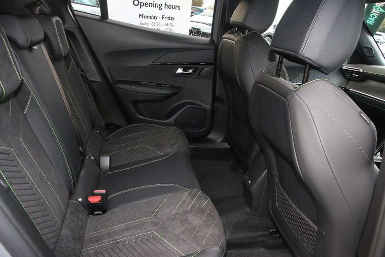 Bluetooth telephone facility, Driver attention warning, E-call, Exterior temperature indicator with ice warning, Front and rear parking sensors, Multi function trip computer, PEUGEOT i-Cockpit with 10" high definition capacitive touchscreen, PEUGEOT i-Cockpit with compact steering wheel, PEUGEOT i-Cockpit with configurable 3D headup instrument panel, PEUGEOT SOS and assistance, Speed limit recognition and recommendation, Wireless mirror screen with mirror link, apple carplay and android auto, Petrol Particulate Filter, 1x USB-C socket in rear and 1x USB-A socket in rear, 2 USB-C ports in the front, 6 speakers radio with mp3 compatible, DAB Radio (Digital Audio Broadcasting), Voice recognition for radio, navigation and telephony features, 2 X Rear number plate lights, Aluminium door sill scuff plates with peugeot lettering, Automatic hazard light activation upon heavy brake application, Black diamond roof, Black front wing trim with gloss black detail and GT badging, Body coloured exterior door handles, Dark tinted rear side and tailgate windows, Diamond black mirror shells, Diamond black rear roof spoiler, Electric, heated, and power folding door mirrors, Electrochrome rear view mirror, Front bumper - Meteor grey lower trim, Full LED headlights with smartbeam assist with auto height adjustment, Gloss black finish on B pillar, Gloss black rear cluster connecting strip, Gloss black roof bars, GT model designation badging on tailgate, Headlights left on audible warning, LED side indicator lights integrated into door mirrors, LED third brake light, Matt black finish side window surrounds (weather strips), Model designation badges front and rear, One touch electric front/rear windows with pinch protection, Radiator grille - body coloured vertical chequered grille, Radiator grille - gloss black top edge trim, Rear bumper with gloss black finish, Rear full LED 3D peugeot signature lights with daylight function, Rear reversing lights, Rear side wing doors, Rear windscreen wiper triggered automatically in reverse gear, Reinforcement of the front bumper, Tailgate with heated rear windscreen and wiper blade, Twin chromed exhaust pipes, Wheel arch extensions, 1/3 to 2/3 split folding rear seats, 12V socket, 3 seat bench in 2nd row, 8 Colour personalisable ambient lighting, Alcantara upholstery, Automatic air conditioning with pollen and active carbon filter, Central front armrest with storage compartment, Driver and front passenger sport seats, Electric power steering with reach and rake adjustable steering column, Front and rear carpet mats in black, Front LED interior light with 2 reading spotlights and push button rear interior light with timer, Front passenger seat manual adjustment - height, longitudinal and back rest angle, High centre console with 2 cup holders, ISOFIX child seat mounting points on passenger seat, Low centre console, Map pockets on front seat backs, Mistral full-grain perforated leather steering wheel with Adamite Green stitch detail and satin chrome 'GT' emblem, Multifunction steering wheel, Piano keys: Gloss black and chrome toggle switches to access main functions of the vehicle and touchscreen functions, Roof lining - Mistral black, Seatbelt unfastened on the move audible and visual alert for front and rear seats, Single front passenger seat, Two position modular boot floor, Navigation, vision and drive assist pack - 2008, Visibility pack - 2008, 2x 2nd row ISOFIX child seat mountings, ABS (Anti-lock Braking System) with EBD (Electronic Brakeforce Distribution) and EBA (Emergency Braking Assistance), Active safety brake with night function/cyclists/pedestrians, Adaptive driver and front passenger airbags with passenger airbag deactivation function, Advanced emergency braking system (AEB) with enhanced camera with the high beam and radar, Child locking functionality on rear doors, Driver/front passenger side airbags, Electric parking brake, ESP (Electronic Stability Program) + Hill Start Assist, Front and rear curtain airbags, Front and rear disc brakes, Front and rear three-point retractable seatbelts, with force limiters, Front optimised safety headrests and rear retractable headrests (x3), height adjustable, Tyre pressure sensor, Automatic door locking when moving off, Deadlocks, Electronic code immobiliser, PEUGEOT Open and Go keyless entry system, Thatcham category 1 alarm, Carbon effect Dashboard, front and rear door panel finish, 18" Evissa diamond cut black mist alloy wheels,