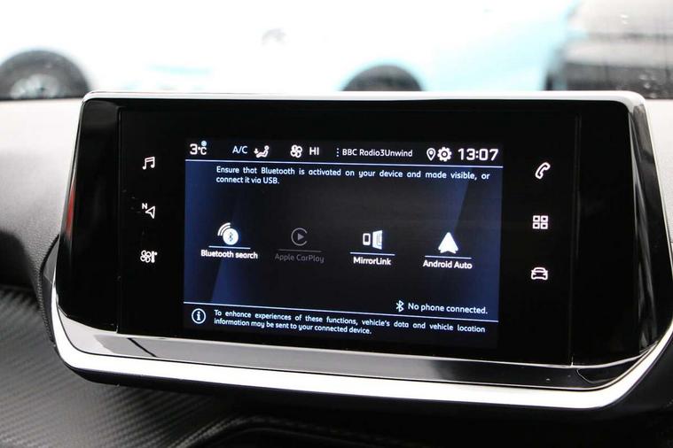 Bluetooth telephone facility, Driver attention warning, Emergency call service, Exterior temperature indicator with ice warning, Lane keep assist, Mirror screen with mirror link, apple carplay and android auto, Multi function trip computer, PEUGEOT i-Cockpit with 3.5" instrument panel display, PEUGEOT i-Cockpit with compact steering wheel, Programmable cruise control and speed limiter, Push button start, Rear parking sensors, Smart phone docking station, Speed limit recognition and recommendation, Start/stop system, 1x USB socket in front, 6 speakers radio with mp3 compatible, DAB Digital radio, Voice recognition for radio, navigation and telephony features, 2 X Rear number plate lights, Automatic hazard light activation upon heavy brake application, Automatic lights, Automatic windscreen wipers, Body coloured exterior door handles, Dark tinted rear side and tailgate windows, Diamond black rear spoiler (roof), Eco LED headlights, Electric front windows + one touch + anti-pinch, Electric rear windows with one touch/anti-pinch, Electrically adjustable, heated and power folding door mirrors, Electrochrome rear view mirror, Follow me home headlights, Gloss black rear cluster connecting strip, Headlights left on audible warning, LED daytime running lights with distinctive tooth design, LED third brake light, Model designation badges front and rear, Nera black door mirror shells, Radiator grille chrome chequered, Rear reversing lights, Rear side wing doors, Rear windscreen wiper triggered automatically in reverse gear, Roof mounted aerial, Roof spoiler, Single exhaust tailpipe, Tailgate with heated rear windscreen and wiper blade, Variable front intermittent wipers, 1/3 to 2/3 split folding rear seats, 12V socket, 3 seat bench in 2nd row, Automatic air conditioning, Driver and front passenger comfort seats, Driver and front passenger seat manual adjustment in longitudinal and back rest angle, Driver seat mechanical height adjustment, Electric power steering with reach and rake adjustable steering column, Front interior light with 2 reading spotlights, Gear shift indicator, Leather steering wheel, Low centre console, Map pockets on the backs of the front seats, Piano keys gloss black plated toggle switches to access main functions of the vehicle, Rear centre headrest, Roof lining - light grey, Satin chrome gear lever, Seatbelt unfastened on the move audible and visual alert for front and rear seats, Single front passenger seat, Tri material cloth upholstery, 2x Isofix child seat fitting on outer rear seats, 3 rear 3 point seatbelts, ABS (Anti-lock Braking System) with EBD (Electronic Brakeforce Distribution) and EBA (Emergency Braking Assistance), Adaptive driver and front passenger airbags with passenger airbag deactivation function, Child locking functionality on rear doors, Driver/front passenger side airbags, ESP with Hill Assist, Front and rear curtain airbags, Front and rear disc brakes, Front optimised safety headrests and 3 x rear retractable headrests with height adjustable, Front three point retractable seatbelts with force limiters, Manual parking brake, Pedestrians active safety brake, Tyre pressure sensor, Acoustic vehicle alert system (AVAS), Automatic door locking when moving off, Deadlock, Electronic code immobiliser, Remote central locking, Thatcham cat. 1 alarm with anti lift sensor, Carbon effect Dashboard, front and rear door panel finish, 16" Soho diamond cut alloy wheels,
