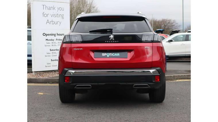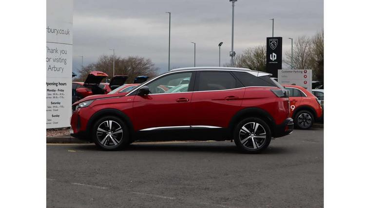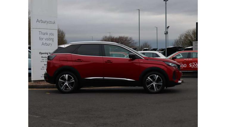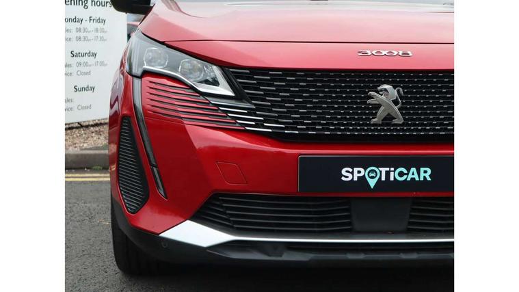 3D connected navigation with 10" HD touchscreen, Bluetooth telephone facility, Drive modes select (Eco, normal and sport), Driving Time Warning (DAA1), Extended traffic sign recognition, Exterior temperature indicator with ice warning, Front parking sensors, Mirror screen with mirror link, apple carplay and android auto, Multi function trip computer, PEUGEOT i-Cockpit with 10" high definition capacitive touchscreen, Peugeot i-cockpit with compact multi-function sports steering wheel, PEUGEOT i-Cockpit with configurable 12.3" Head-up digital instrument panel, PEUGEOT SOS and assistance, Rear parking aid, Rear passenger USB charging sockets (x2) (type A), Speed limit recognition and recommendation, Voice recognition, Dynamic stability control and electronic anti-skid system, Stop/start function, DAB Digital radio, USB socket, Auto self levelling headlights, Automatic hazard light activation upon heavy brake application, Automatic triggered rear windscreen wiper in reverse gear, Black with chrome detailed front wing trim, Body colour door handles, Body colour rear roof spoiler with stainless steel edging trim, Body protectors (bottom of front and rear bumpers + wheel arches + protection at bottom of doors) in black, Dark tinted rear side windows + tailgate window, Diamond Black door mirror shells, Door mirror mounted LED courtesy floor lighting, Electric folding door mirrors with exterior courtesy LED lighting, Electric operated/heated door mirrors, Fog Mode, Front windscreen wiper with magic wash cleaning system, Full LED headlights with LED fog lights with static cornering function, Gloss black B and C pillar and aerodynamic deflector trim, Gloss black front bumper air scoops, Gloss black rear cluster connecting strip, Gloss black windscreen trim, GT emblem in satin copper (front wings and tailgate), Headlights left on audible warning, Heated rear windscreen with integrated antenna, LED daytime running lights, LED front indicator, LED rear number plate lighting, LED side indicator lights integrated into door mirrors, LED third brake light, One touch electric front/rear windows with pinch protection, Rear LED Peugeot signature 'Claw Effect' lights, Rear side wing doors, Stainless steel roof arches, Twin exhaust tailpipe, 1/3 to 2/3 split folding rear seats, 12V Sockets in dashboard, rear cabin and load area, 2 cupholders in front centre console, 2 cupholders in rear armrest, 2 x Rear reading spotlights, 2x Rear coat hooks, 3x Isofix child seat fittings in the front passenger and outer rear seats, 4 Grab handles retractable and damped, Aikinite stitching in armrest, gear lever and dashboard facia, Aluminium pedals, Blue ambient lighting for connecting zone, Blue ambient lighting to front door panels, central storage and cupholders, Blue ambient lighting to headup instrument panel, Centre front armrest with butterfly wing opening and illuminated storage compartment, Driver seat manual adjustment (longitudinal and back rest angle), Dual zone automatic climate control, Electric power steering with reach and rake adjustable steering column, Flocked front door pocket interior with blue ambient lighting, Flocked glovebox interior, Foldable front passenger seat with picnic table, Footwell illumination, Front interior light with 2 reading spotlights and rear interior light with timer, Front passenger seat manual adjustment (longitudinal and back rest angle), Front seat back map pockets, Gear shift indicator, Illuminated glovebox, Individual left and right controls in boot for seat folding, LED interior lighting in storage spaces and load area, LED roof interior lighting, Mistral floor mats with Aikinite contrast stitching, Mistral full grain perforated leather steering wheel with aikinite stitch detail and satin chrome 'GT' emblem, Rear bench seat with central armrest and ski hatch, Rear centre console ventilation system, Roof lining - Mistral black, Satin chrome dashboard trim, Satin chrome digital instrument panel and touchscreen trim, Satin chrome front door panel recess trim, Satin chrome interior door handles, Satin chrome scorpion's tail and toggle switch trim, Seatbelt not fastened audible and visual alert for front seats, Seatbelt unfastened on the move audible and visual alert for front and rear seats, Sunvisors with illuminated vanity mirrors, Two position boot floor, Drive assist plus pack - 3008, Driver sport pack - 3008 Auto, Safety plus pack with high beam assist - 3008, Visibility pack - 3008, 3x Rear three-point retractable seatbelts with force limiters in the outer rear seats, ABS (Anti-lock Braking System) with EBD (Electronic Brakeforce Distribution) and EBA (Emergency Braking Assistance), Adaptive driver and front passenger airbags with passenger airbag deactivation function, Driver and front passenger side airbags, Electric child locking functionality on rear windows and doors, Electric parking brake, Front and rear curtain airbags, Front optimised safety headrests and 3 x rear retractable headrests with height adjustable, Front three point retractable seatbelts with pre tensioners and force limiters, Front ventilated disc brakes and rear disc brakes, Hill start assist, Two tone horn, Automatic door locking when moving off, Electronic immobiliser, key operated exterior door lock from the left hand door, Perimetric and volumetric alarm with lift and tilt sensor, Peugeot Open and Go System, Remote control central locking with two plip keys, Puncture repair kit including compressor, sealant cartridge and towing eye,