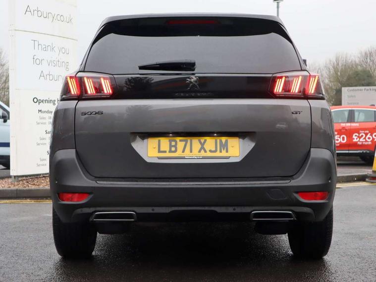 10" High Definition Capacitive Touchscreen, 3D connected navigation + voice control, Bluetooth telephone connection, Drive mode selector (Eco, Normal and Power), Driving timer alert system, Emergency services call system, Extended traffic sign recognition, Exterior temperature indicator with ice warning, Lane departure warning system, Mirror screen with Apple CarPlay and Android auto, Motorised Electric Tailgate (key plip and foot operated), Multi function trip computer, Passive blind spot monitoring without Steering correction, Peugeot i-cockpit with configurable 12.3" headup digital instrumental panel and compact sports steering wheel, PEUGEOT SOS and assistance, Rear passenger USB charging sockets (x2) (type A), Speed limit recognition and recommendation, Sports button, Voice recognition for radio and telephone, Dynamic stability control and electronic anti-skid system, Bi Tuner radio including DAB, Focal premium HiFi sound system, USB socket, Auto self levelling headlights, Automatic activation of hazard warning lights, Black diamond roof and nera black door mirror shells, Body colour door handles, Body coloured rear spoiler, Body protectors in black, Chrome side window trim, Dark tinted rear side and tailgate windows, Door mirrors with auto dipping function in reverse gear, Dynamic frameless design in front radiator grille, Electric folding door mirrors with exterior courtesy LED lighting, Electrically heated door mirrors, FOCAL tweeter speaker grilles in 'belem bronze metal effect finish, Frameless electrochrome rear view mirror, Front windscreen wiper with magic wash cleaning system, Full LED headlights with fog mode, Gloss black B and C pillar and aerodynamic deflector trim, Gloss black rear cluster connecting strip, GT emblem (front wings and tailgate), Headlights left on audible warning, Heated rear windscreen with integrated antenna, LED daytime running lights in fang style, LED front indicator, LED rear lights including reversing lights, scrolling indicators and PEUGEOT '3Claw Effect' light signature (with daylight function), LED rear number plate lighting, LED side indicator lights integrated into door mirrors, LED third brake light, One touch electric front/rear windows with pinch protection, Rear side wing doors, Rear windscreen wiper with auto activation when reversing, Silver front lower bumper, Twin exhaust effect trim, 2 cupholders in front centre console, 2 separate seats in 3rd row, 3 bench rear seats in 2nd row, 3 x 12V power sockets, 4 Grab handles retractable and damped, Aikinite stitching in armrest, gear lever and dashboard facia, Aluminium pedals, Automatic and dual zone diffusion air conditioning system, Blue ambient lighting for connecting zone, Blue ambient lighting to front door panels, central storage and cupholders, Blue ambient lighting to head up instrument panel, Brumeo fabric trimmed door armrests, Central front armrest with butterfly wing opening, Tramontane double stitching and illuminated storage compartment, Electric power steering with reach and rake adjustable steering column, Flocked front door pocket interior with blue ambient lighting, Flocked glovebox interior, Fold flat front passenger seat with picnic table, Footwell lighting, Front ambient lighting, Front interior light with reading spotlights (x2), row 2 interior light with reading spotlights (x2), Front passenger seat manual adjustment (longitudinal and back rest angle), Gear shift indicator, Height adjustable driver seat, Height adjustable passenger seat, Illuminated glovebox, Illuminated vanity mirror, Isofix child seat fittings x 3 in the second row, LED interior lighting, Map pocket on front seat backs, Mistral floor mats with Aikinite contrast stitching, Mistral full grain perforated leather steering wheel with aikinite stitch detail and satin chrome 'GT' emblem, Rear ventilation system, Retractable parcel shelf, Roof lining and windscreen pillars in Mistral black, Satin chrome digital instrument panel and touchscreen trim, Satin chrome front door panel recess trim, Satin chrome interior door handles, Satin chrome scorpion's tail and toggle switch trim, Seatbelt not fastened audible and visual alert for front seats, Seatbelt unfastened on the move audible and visual alert for front and rear seats, Single front passenger seat, Third row seats (can be stored under bootfloor or removed completely), Twin rear coat hooks, Children's pack - 5008, Drive Assist Plus Pack - 5008, Driver sport pack - 5008, Visibility pack - 5008, Visio Park 2 pack - 5008, ABS + EBD + EBA, Adaptive driver and front passenger airbags including passenger airbag deactivation function, Electronic parking brake, ESP and ASR traction control with deactivation switch, Five 3 point rear safety belts, Front and rear curtain airbags, Front optimised safety headrests and rear retractable headrests (x3), height adjustable, Front side airbags, Front three point retractable seatbelts height adjustable with pre tensioners and force limiters, Front ventilated disc brakes, Hill start assist, Manual child lock in rear doors, Rear disc brakes, Rear three-point retractable seatbelts (x3) with pre-tensioners and force limiters in the outer rear seats, Two tone horn, Automatic door locking when moving off, Child lock control of rear doors and windows, Electronic code immobiliser, key operated exterior door lock from the left hand door, Keyless start, Perimetric and volumetric alarm with lift and tilt sensor, Peugeot Open and Go System, Remote control central locking with two plip keys, Satin chrome dash trim, Puncture repair kit including compressor, sealant cartridge and towing eye,