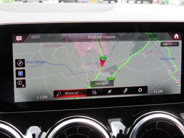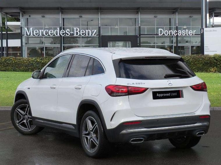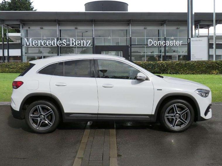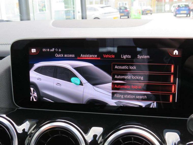 10.25 inch touchscreen central media display, 7 inch digital instrument cluster display, Acoustic ambient protection, Active lane keeping assist, Attention assist, Cruise control + speed limiter, Direct steering, DYNAMIC SELECT with a choice of driving modes (ECO, Comfort, Sport and Individual), ECO start/stop function, Fluid level warning indicator for fuel, oil, coolant and washer fluid, Hard-disk navigation, Hey Mercedes Voice activation, Lamp failure indicator, Mercedes me connect including emergency call system, accident recovery, breakdown management and maintenance, Mercedes me remote services, Multi function trip computer, Outside temperature gauge, Owners manual and service booklet in English, Pre-installation of private car share, Radio aerial integrated into front and rear windshields, Remote and charging services plus, Service indicator (ASSYST), Smartphone integration with Apple CarPlay and Android auto, Speed limit assist, Status display for rear seat belts in instrument cluster, 7.4 kW onboard charger, Charging system - AC charging system rated at 7.4 kW, Comfort suspension, Mode 2 charging cable with 3 pin plug, Mode 3 charging cable 22 kW, Rear axle multi-link, 2 USB ports (type C) in rear stowage compartment and one in front of center console, Bluetooth connectivity including audio streaming, DAB Digital radio, MBUX multimedia system, Media interface, Mercedes-Benz sound system - 100W, Adaptive brake lights, Aerial for GPS, Aluminium roof rails, AMG front and rear apron, AMG specific/dual flow exhaust pipes in chrome (non-functional), Automatic headlamp activation, Beltline strips and weather strip in chrome, Black grained claddings with chrome parts, Body colour bumpers, Body colour door handles, Body colour door mirrors, Car wash function, Dark privacy glass from B-pillar backwards, Electric front windows, Electric rear windows, Electrically adjustable and heated door mirrors with integrated LED indicators, Front door sills with Mercedes-Benz lettering, Heated glass rear windscreen + timer control, Heated windscreen wash system, Interior mirror with black reading lamps and frameless, LED high performance headlamps with integrated LED daytime running lights, LED tail lights in two piece design, LED third brake light, Matt titanium grey front and rear apron trim, Rain sensor windscreen wipers, Rear fog lights, Roof spoiler, Single lamella raditor grille with chrome dotted diamond grille and inlay, 12V power socket in centre console, 3 spoke multifunction sports steering wheel in nappa leather with flattened bottom and perforated grip area, 40:20:40 split folding rear seats with backrest, Adjustable head restraints, Air conditioning - Two zone thermotronic luxury automatic climate control with display, Ambient lighting in front headrests, AMG floor mats with AMG lettering and stiched edging, Auto Mercedes-Benz child seat recognition sensor, Black roof lining, Brushed door pulls in silver chrome, Charging socket, Courtesy light in boot, Front centre armrest with stowage, Galvanished gear shift paddles on steering wheel, Heated front seats, Illuminated glovebox, Leather trimmed gearknob, Luggage net on driver/front passenger seat backrest, Manually height and reach adjustable steering column, Multi-gesture touchpad control on center console, Pre-entry climate control, Sports pedals in brushed stainless steel with black rubber studs, Sports seats, Stowage compartment in centre console, Stowage compartment with retractable cover, Sunvisors with illuminated vanity mirrors, Twin front cup holders, Two outer rear seat isofix and top tether child seat fixing points, AMG body styling pack - GLA, Comfort seat pack - GLA Class, Interior lighting with light and sight pack - GLA, Load compartment pack - GLA, Mirror pack - GLA Class, Parking pack - GLA, 3 rear 3 point seatbelts, ABS with Brake Assist, Active bonnet pedestrain safety measure which detects an impact and raises bonnet by 65mm, Active brake assist includes forward collision warning system with autonomous braking, Adaptive brake assist with hold function and hill start assist, Bonnet with power domes, Brake pad wear warning indicator, Childproof locks manually operated for rear doors and electrically operated for rear power windows, Crash responsive emergency lighting, Driver and passenger head and side airbags, Drivers knee airbag, Dual stage driver/passenger airbags, Electronic parking brake, ESP curve dynamic assist, ESP with ASR, Front and rear seatbelt reminder, Front brake callipers with Mercedes Benz logo lettering on front, Front passenger seat occupancy sensor, Internally ventilated brakes with perforated brake discs at the front, Radar-based recuperation, Tyre pressure monitoring system, Warning triangle and first aid kit, Window airbags, Alarm system with immobiliser and interior protection -Thatcham category 1, Keyless Go starting function, Remote central locking and crash sensor with emergency opening function, Urban guard vehicle protection, Vehicle key with decorative surround in chrome, Carbon structure trim, Chrome air vent surrounds, 19" AMG 5 twin spoke light alloy wheels aerodynamically optimised painted in tantalite grey with a high sheen finish, Summer tyres, Tirefit tyre sealant kit,