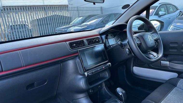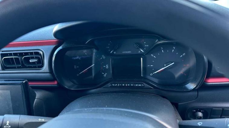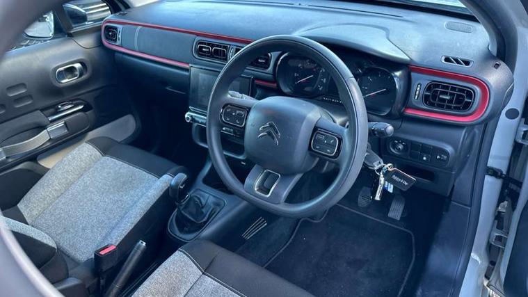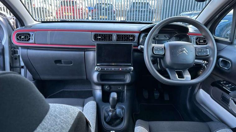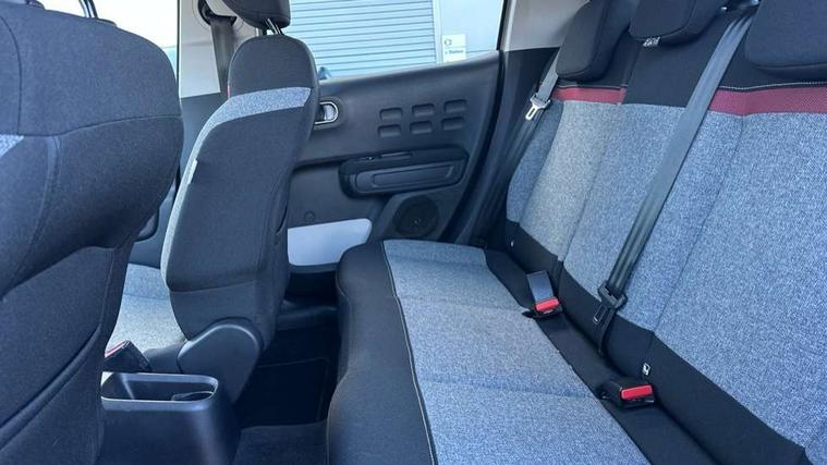 Coffee Break Alert, Cruise control + speed limiter, eCall emergency call system, Exterior temperature display, Instrument cluster with white LCD and analogue gauges, Multi function trip computer, Variable assistance power steering, USB connection, 3D rear light signature, Airbump on side door panel, Auto headlights, Automatic activation of hazard warning lights, Body colour bumpers, Body colour door handles, Chrome decoration on front face, under chevrons and around daytime running lights, Citroen illuminated signature in LED headlights and LED daytime running lights, Dark tinted tailgate and rear side windows, Electric folding and heated door mirrors, Fog lights integrated into front bumper, Front sequential electric windows with one-touch open/close and anti-pinch system, LED Headlights, LED third brake light, Matt black finish B pillar, Perla nera black rear view mirror caps, Rear sequential electric windows with one-touch open/close and anti-pinch system, Rear side wing doors, Rear windscreen wiper with intermittent mode linked to vehicle speed, Standard day night switchable interior rear view mirror, Variable front intermittent wipers, 1/3 to 2/3 split folding rear seat, 12V socket, 3 seat bench in 2nd row, Automatic air conditioning, Boot light, C-SERIES carpet mats, C-SERIES interior ambience, Driver and passenger's sun visor with courtesy mirror, Driver's seat height adjustment, Front lighting panel, Front seats adjustable with forward back slide and adjustable backrest, Height adjustable front head restraints, Height/reach adjust steering wheel, ISOFIX mounting on outer rear seats with top tether and labels indicating fixing points, Mica cloth upholstery, Parcel shelf, Seatbelt unfastened on the move audible and visual alert for front and rear seats, Single front passenger seat, Soft touch gear lever with leather effect gaiter, Steering wheel with satin chrome elements and audio/telephone controls, Three rear headrests, Upholstered armrest in front and rear doors, Anodised Deep Red colour pack - C3, C-SERIES style pack - C3, Safety pack 1 - C3, Visibility pack with automatic lights - C3, ABS with Electronic brakeforce distribution and Emergency braking assistance, Driver and front passenger seatbelts with pyrotechnic pretensioners and force limiters, Driver's airbag, Electric child locks, ESP with anti skid system, Front passenger airbag, Front passenger airbag deactivation, Front side airbags + front/rear curtain airbags, Hill start assist, Manual parking brake with chrome finish button, Mono-tone horn, Outer rear seats with pretensioners and force limiters, Three rear 3-point seatbelts, Tyre pressure monitoring system, Anti theft alarm, Automatic door and boot locking when moving off with automatic unlocking in case of impact, Central locking with locked indicator and interior one touch lock button, Immobiliser, Remote control central locking with two plip keys, Gloss black dashboard finish with grey surround, 16" Matrix diamond cut alloy wheels, Tyre puncture repair kit,