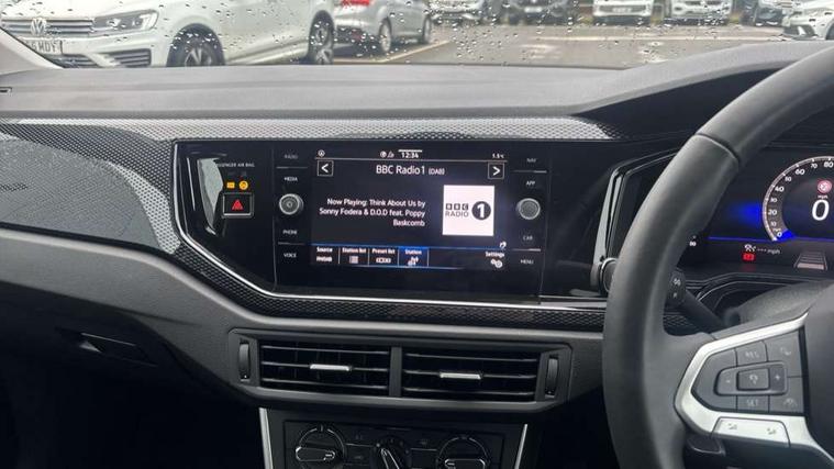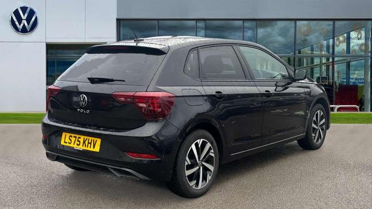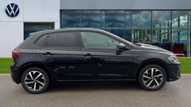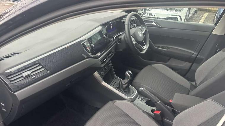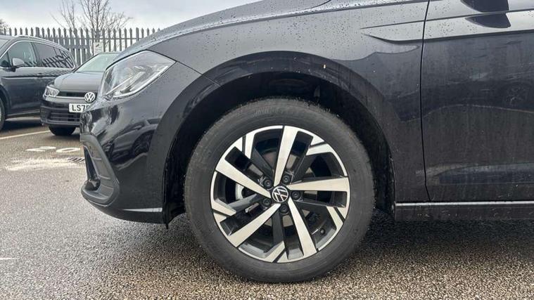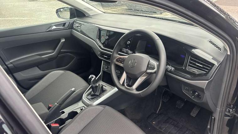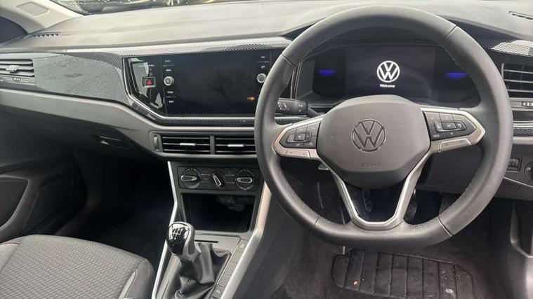 Adaptive cruise control without follow-to-stop and speed limiter, Advanced driver attention and drowsiness monitor, Bluetooth mobile phone interface, Dynamic road sign display, Emergency call service, Mobile phone preparation with inductive charging function, Multifunction front facing camera for distance control, Power assisted speed sensitive steering, Preparation for navigation system with media and internet package, Preparation for We connect and We connect plus, Rear view camera, Speedo and rev counter, electronic odometer, trip, service interval display and exterior temperature gauge, Standard rear axle, Travel Assist - Lane keeping system and traffic jam assist, Travel assist including emergency assist, Trip computer, Warning signal and warning light for front and rear seatbelts not fastened, Washer fluid level indicator, Wireless app connect, Front wheel drive, Rear shock absorpion, Start-stop system with battery regeneration (recuperation - energy recovery during braking), DAB Digital radio, Diversity antenna for FM reception, Automatic dimming interior rear view mirror, Automatic headlight control with LED separate daytime running lights with coming/leaving home function, Body colour bumpers with chrome inserts, Body colour door handles, Body colour door mirrors, Electric front windows, Engine badge deletion, Headlight range adjustment, Heat insulating and laminated safety glass windshield, LED Headlights, LED rear combination lamps, Power folding adjustable/heated exterior mirrors and front passenger exterior mirror lowering function, Rain sensor, Rear electric windows, Rear fog light, Rear side wing doors, Rear tinted glass from B-pillar backwards approx 65% tinted, Rear windscreen washer and wiper with interval delay, Third brake light, 12V power socket in centre console, 2 front and 2 rear reading lights with switch off delay and dimmer, 2 USB-C ports in the front, 2 USB-C charging sockets on the center console in the rear, 3 rear head restraints, 60/40 split folding rear seat and rear seat bench not split, Ceramique roof lining, Chrome plated radiator grille inserts, air vent surrounds and light switch surrounds, Door and side trim panel, Driver and front passenger seat height adjustment, Driver/passenger sunvisors with illuminated vanity mirrors, Front centre armrest, Front seat backrest storage pockets, Front standard seats, Handbrake lever handle in leather, Hartley/Thomas cloth upholstery, Headliner in recycled material, Isofix child seat preparation easy-fit (for two outer rear seats, and front passenger seat) compatible with I-size, Leather trimmed gear knob, Luggage compartment cover, Luggage compartment lighting, Removable luggage compartment floor, Single front passenger seat, Standard climatic zones, Standard pedal cluster, Three spoke leather wrapped multifunction steering wheel, Light and vision pack - Polo, 3 point height adj front seatbelts + pretensioners, 3 point seat belt for centre rear seat, 3 point seatbelts, outer rear with ECE lable, ABS, Driver and front passenger airbag with front passenger airbag deactivation, Drivers and front passengers safety optimised head restraints, ESC (Electronic stability control) + EDL (Electronic Differntial lock) and ASR (Traction control), Extended and predictive pedestrian/ cyclist protection, Front assist with autonomous emergency braking (for Adaptive Cruise Control ACC up to 130 mph), Front curtain and side airbags with center airbag, Front disc brakes, Hill hold control, Manual child lock in rear doors, Rear drum brakes, Single tone horn, Tyre pressure loss indicator, Alarm with interior protection, Anti-theft alarm system with interior monitoring, backup horn, and towing protection, Anti-theft wheel bolts, Electronic engine immobiliser, Lava stone black gloss/matt decorative inserts in dash and front door panels, 16" Torsby alloy wheels, Low rolling resistance tyres,