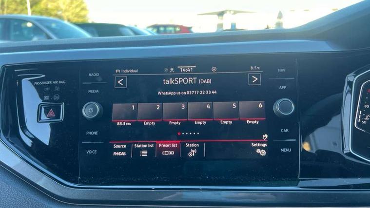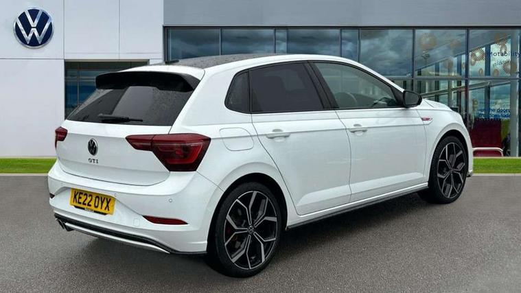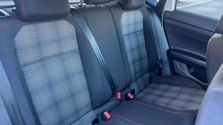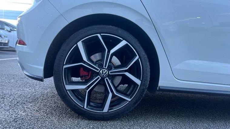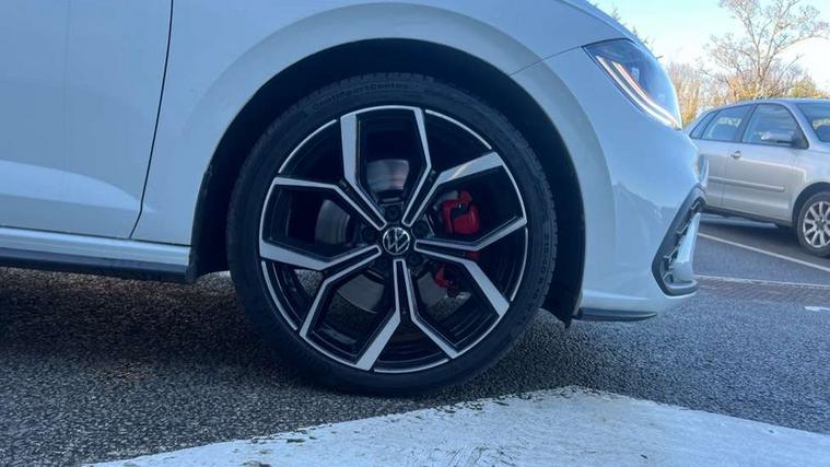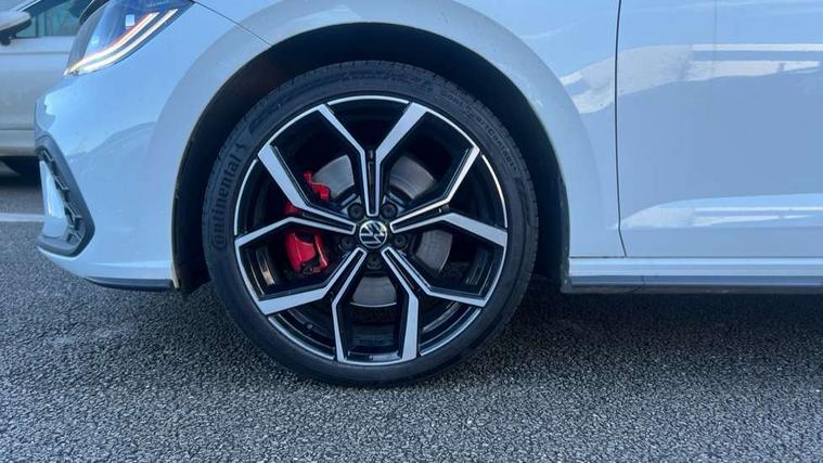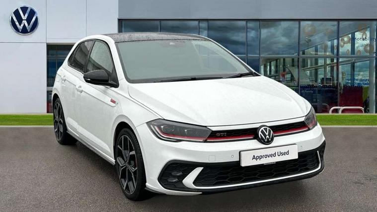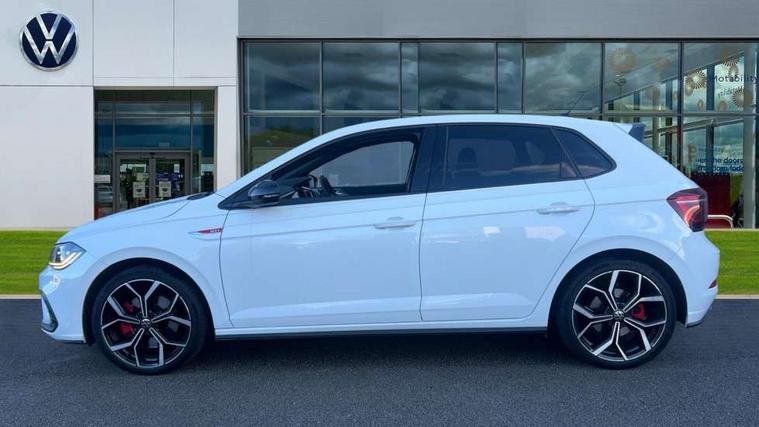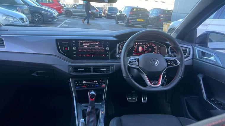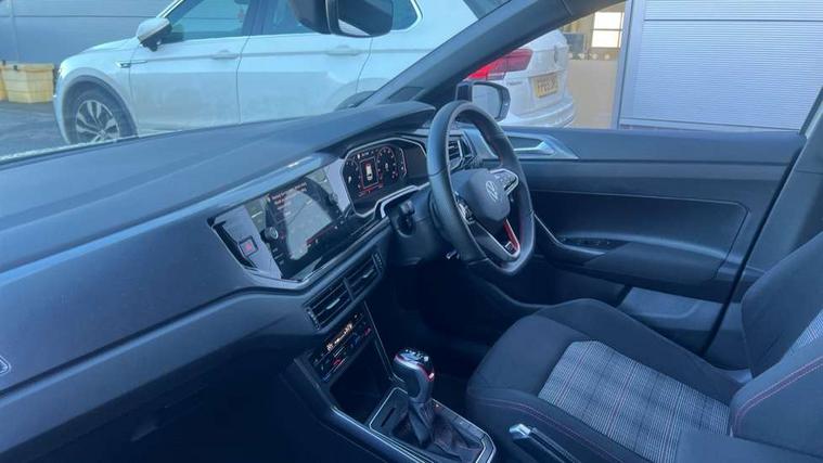 Adaptive cruise control with follow-to-stop and speed limiter, Bluetooth mobile phone interface, Digital Cockpit Pro with 10.25" Display, Driver alert system, Dynamic road sign display, Eco mode, Emergency call service, Power assisted speed sensitive steering, Preparation for We connect and We connect plus, Speedo and rev counter, electronic odometer, trip, service interval display and fuel gauge, Travel Assist - Lane keeping system and traffic jam assist, Travel assist including emergency assist, Trip computer, Warning signal and warning light for front and rear seatbelts not fastened, Washer fluid level indicator, Wireless app connect, Adaptive chassis control including driving profile selection, Front wheel drive, Heavy duty rear axle, Rear shock absorpion sports version, Sports select suspension lowered by 15mm, Start-stop system with battery regeneration (recuperation - energy recovery during braking), XDS electronic differential lock for improved traction and handling, DAB Digital radio, Diversity antenna for FM reception, Front and rear 6 speakers, Body colour bumpers, Body colour door handles, Electric front windows, Front scuff plates in aluminium with GTI logo, Heat insulating darkened glass in side and rear windows, Heat insulating glass windscreen, Power folding adjustable/heated exterior mirrors and front passenger exterior mirror lowering function, Rear electric windows, Rear fog light, Rear side wing doors, Rear windscreen washer and wiper with interval delay, Sport bumpers with air intakes with honeycomb structure, Third brake light, Twin chrome exhaust tailpipes, 12V power socket in centre console, 2 USB-C ports in the front, 2 USB-C charging sockets on the center console in the rear, 3 rear head restraints, 60/40 split folding rear seat and rear seat bench not split, Air care climatronic air conditoning system with active combination filter and 2-zone temperature control, Black roof lining, Ceramique headliner, Chrome plated radiator grille inserts, air vent surrounds and light switch surrounds, Door and side trim panel, Driver and front passenger seat height adjustment, Driver/passenger sunvisors with illuminated vanity mirrors, Front + rear carpet mats, Front centre armrest, Front footwell illumination, Front seat backrest storage pockets, GTI sports gearshift knob in aluminium leather, Handbrake lever handle in leather, Isofix child seat preparation easy-fit (for two outer rear seats, and front passenger seat) compatible with I-size, LED interior light with switch off delay and dimmer, 2 reading lights front and rear, Luggage compartment cover, Luggage compartment floor, Luggage compartment lighting, Single front passenger seat, Stainless steel pedals, Standard pedal cluster, Three spoke leather wrapped multifunction sports steering wheel with shifting paddles, IQ LED matrix headlights pack - Polo, Light and sight pack - Polo GTI, Sports suspension pack - Polo, 3 point height adj front seatbelts + pretensioners, 3x3 point rear seatbelts, ABS, Driver and front passenger airbag with front passenger airbag deactivation, Drivers and front passengers safety optimised head restraints, ESC (Electronic stability control) + EDL (Electronic Differntial lock) and ASR (Traction control), Extended and predictive pedestrian/ cyclist protection, Front and rear disc brakes with red brake calipers, Front curtain and side airbags with center airbag, Hill hold control, Manual child lock in rear doors, Two tone horn, Tyre pressure loss indicator, Alarm with interior protection, Anti-theft alarm system with interior monitoring, backup horn, and towing protection, Anti-theft wheel bolts, Electronic engine immobiliser, Chrome applications on rotary light, mirror adjustment, window regulator switches, outlet with frame in black, Low rolling resistance tyres,