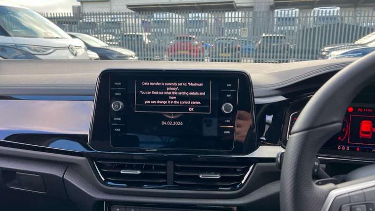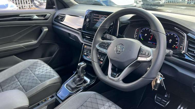 10.25" Digital cockpit pro, Advanced driver attention and drowsiness monitor, Emergency call service, Lane keeping system Lane Assist, Mobile phone interface, Modified key software - reduce switch off time for key status change to Long no motion, Online services, Park assist including front and rear parking sensors, Power assisted speed sensitive steering, Service interval indicator, Tailgate/trunk lid release from outside, Think blue trainer driver tips and journey analysis, Warning sound and light for front seatbelts unfastened, Wireless app connect, Battery regeneration during braking, Rear shock absorption chassis with increased ride height, Start/stop function with battery regeneration, DAB Digital radio, Diversity antenna for FM reception, Front and rear 6 speakers, Music playback - MP3, WMA and AAC files, Premium USB cable in choice of either Apple or Android smartphone compatibility, SD card slot, Simultaneous pairing of 2 compatible mobile devices, Title and cover art display, We Connect and We Connect Plus functionality, Auto dimming interior rear view mirror, Automatic hazard lights activation under emergency braking, Automatic headlight control with LED separate daytime running lights with coming/leaving home function, Dynamic cornering light, Electrically adjustable and heated door mirrors, Extended roof spoiler, Exterior mirrors aspherical on driver side, convex on front passenger side, External USB type C socket and charging sockets, Front windscreen wiper with intermittent wipe and 4 position delay, Heated rear window, Illuminated front grille, IQ LED matrix headlights, LED 3rd brake light, LED rear number plate lights, LED rear tail lights with dynamic turn signal, Light mode for poor weather, rain, fog or snow, Power windows with comfort operation and circuit breaker, R-Line design body coloured bumpers, Rain sensor, Rear exhaust tailpipe, Rear fog light on one side and reversing lights on both sides, Rear side wing doors, Rear wash/wipe with intermittent wipe setting, Remote electrically foldable door mirrors, puddle lights and reverse activated passenger's door mirror, 12V power socket in centre console, 3 rear head restraints, 3 seat bench in 2nd row, 4 load lashing points in luggage compartment, Air care climatronic air conditoning system with active combination filter and 2-zone temperature control, Artvelours cloth upholstery, Black roof lining, Chrome plated radiator grille inserts, air vent surrounds and light switch surrounds, Door and side trim panel with leatherette insert, Drawer under drivers seat, Driver seat height adjust, Driver's seat lumbar support, Front + rear carpet mats, Front centre armrest, Front comfort sports seats, Front cupholders x 2, Front footwell illumination, Front reading light, Front scuff plates with R Line logo, Front seat back storage pockets, Glove compartment door with light, Instrument lighting, white adjustable panel illumination, Interior ambient lighting and surround lighting, Interior light delay, Isofix child seat preparation, Leather gearshift handle, Leather wrapped multifunction steering wheel with paddle shift, Load-through provision with cup holder when folded down ('Unsplit rear seat bench, split folding backrest, with centre armrest), Luggage compartment lighting, Non-folding front passenger seat backrest, Passenger seat height adjuster, Passenger seat lumbar support, Single front passenger seat, Stainless steel pedals, Storage compartment in left and right luggage area, Storage compartment in rear doors, Storage compartments in driver and front passenger doors, Sunvisors with illuminated vanity mirrors, Variable boot floor, height adjustable and removable, Winter pack without heated windscreen washer jets - T-Roc, 3 point height adj front seatbelts + pretensioners, 3 point seatbelts in outer rear with ECE label, ABS, Child locks on rear doors, City emergency braking and pedestrian monitoring, Driver and front passenger airbag with front passenger airbag deactivation, Driver and front passenger safety-optimised head restraints, Drivers seatbelt reminder, Electronic parking brake, Electronic Stability Control (ESC) inc EDL (Electronic Differential Lock) and ASR (Traction Control), Front and rear passengers curtain airbag system including front side airbags, Front disc brakes, Hill start assist, Predictive pedestrian protection, Rear disc brakes, Two tone horn, Tyre pressure loss indicator, Volkswagen roadside assistance, Tool kit, Trims for alloy wheels, Tyre mobility kit including compressor and sealing foam,