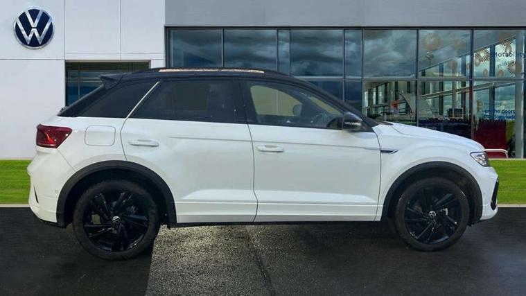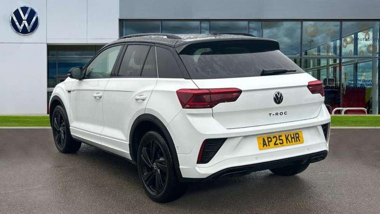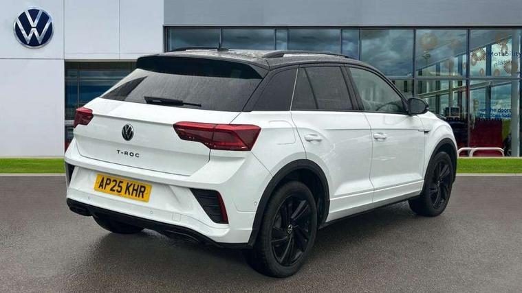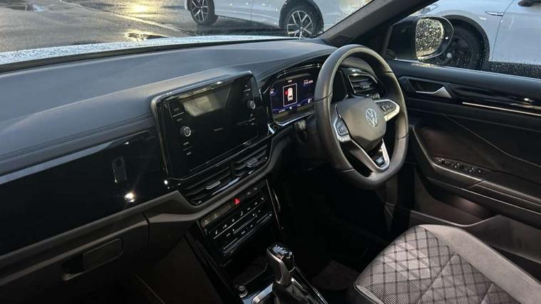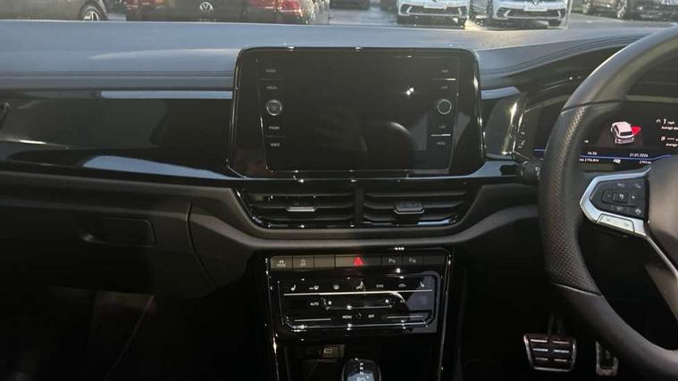 10.25" Digital cockpit pro, Advanced driver attention and drowsiness monitor, Emergency call service, Lane keeping system Lane Assist, Mobile phone interface, Modified key software - reduce switch off time for key status change to Long no motion, Online services, Park assist including front and rear parking sensors, Power assisted speed sensitive steering, Service interval indicator, Tailgate/trunk lid release from outside, Think blue trainer driver tips and journey analysis, Warning sound and light for front seatbelts unfastened, Wireless app connect, Battery regeneration during braking, Rear shock absorption chassis with increased ride height, Start/stop function with battery regeneration, DAB Digital radio, Diversity antenna for FM reception, Front and rear 6 speakers, Music playback - MP3, WMA and AAC files, Premium USB cable in choice of either Apple or Android smartphone compatibility, SD card slot, Simultaneous pairing of 2 compatible mobile devices, Title and cover art display, We Connect and We Connect Plus functionality, Auto dimming interior rear view mirror, Automatic hazard lights activation under emergency braking, Automatic headlight control with LED separate daytime running lights with coming/leaving home function, Dynamic cornering light, Electrically adjustable and heated door mirrors, Extended roof spoiler, Exterior mirrors aspherical on driver side, convex on front passenger side, External USB type C socket and charging sockets, Front windscreen wiper with intermittent wipe and 4 position delay, Heated rear window, Illuminated front grille, IQ LED matrix headlights, LED 3rd brake light, LED rear number plate lights, LED rear tail lights with dynamic turn signal, Light mode for poor weather, rain, fog or snow, Power windows with comfort operation and circuit breaker, R-Line design body coloured bumpers, Rain sensor, Rear exhaust tailpipe, Rear fog light on one side and reversing lights on both sides, Rear side wing doors, Rear wash/wipe with intermittent wipe setting, Remote electrically foldable door mirrors, puddle lights and reverse activated passenger's door mirror, 12V power socket in centre console, 3 rear head restraints, 3 seat bench in 2nd row, 4 load lashing points in luggage compartment, Air care climatronic air conditoning system with active combination filter and 2-zone temperature control, Artvelours cloth upholstery, Black roof lining, Chrome plated radiator grille inserts, air vent surrounds and light switch surrounds, Door and side trim panel with leatherette insert, Drawer under drivers seat, Driver seat height adjust, Driver's seat lumbar support, Front + rear carpet mats, Front centre armrest, Front comfort sports seats, Front cupholders x 2, Front footwell illumination, Front reading light, Front scuff plates with R Line logo, Front seat back storage pockets, Glove compartment door with light, Instrument lighting, white adjustable panel illumination, Interior ambient lighting and surround lighting, Interior light delay, Isofix child seat preparation, Leather gearshift handle, Leather wrapped multifunction steering wheel with paddle shift, Load-through provision with cup holder when folded down ('Unsplit rear seat bench, split folding backrest, with centre armrest), Luggage compartment lighting, Non-folding front passenger seat backrest, Passenger seat height adjuster, Passenger seat lumbar support, Single front passenger seat, Stainless steel pedals, Storage compartment in left and right luggage area, Storage compartment in rear doors, Storage compartments in driver and front passenger doors, Sunvisors with illuminated vanity mirrors, Variable boot floor, height adjustable and removable, Winter pack without heated windscreen washer jets - T-Roc, 3 point height adj front seatbelts + pretensioners, 3 point seatbelts in outer rear with ECE label, ABS, Child locks on rear doors, City emergency braking and pedestrian monitoring, Driver and front passenger airbag with front passenger airbag deactivation, Driver and front passenger safety-optimised head restraints, Drivers seatbelt reminder, Electronic parking brake, Electronic Stability Control (ESC) inc EDL (Electronic Differential Lock) and ASR (Traction Control), Front and rear passengers curtain airbag system including front side airbags, Front disc brakes, Hill start assist, Predictive pedestrian protection, Rear disc brakes, Two tone horn, Tyre pressure loss indicator, Volkswagen roadside assistance, Tool kit, Trims for alloy wheels, Tyre mobility kit including compressor and sealing foam,