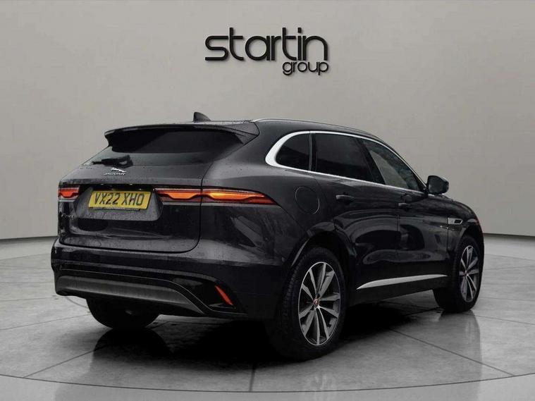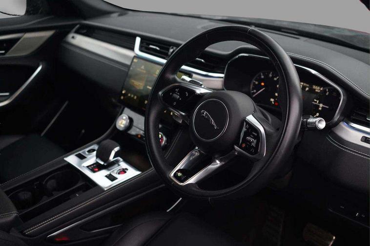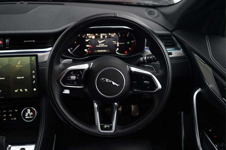 11.4" touchscreen, Android Auto, Apple car play, Blind spot assist, Bluetooth connectivity, Clear exit monitor, Driver alert system, Driver condition monitor, Eco driving style assistant, Electric power assisted steering, InControl remote, Interactive Driver display instrument cluster, Jaguar Toggle shift selector, Lane departure warning system, Lane keep assist, Outside temperature gauge, Personalisation profile management, Pivi pro connected navigation system with app interface and media storage, Pro services and wifi hotspot, Push button starter, Rear traffic monitor, Service interval indicator, Speed proportional steering, Start up sequence with movement in dials and lighting, Traffic sign recognition with adaptive speed limiter, Trip computer, Voice control system, 8 speed automatic transmission, All terrain progress control, All Wheel Drive (AWD), Open differential with torque vectoring by braking, AM/FM radio, Bluetooth streaming, DAB Radio (Digital Audio Broadcasting), Dynamic volume control, InControl apps, InControl protect, iPod integration, 3 flash lane change indicators, Animated directional indicators, Approach Illumination, Auto dimming rear view mirror, Automatic headlights, Body colour door mirrors, Electric heated/power fold memory door mirrors with approach lights and auto dimming driver side, Electric windows with one touch open/close and anti trap, F-Pace badge, Green tinted glass, Heated front windscreen + heated washer jets, Heated rear window with timer, Illuminated metal tread plates with Jaguar script, Jaguar script and leaper, LED tail lights, Non acoustic front windscreen, R Dynamic badge on side door, Rain sensor windscreen wipers, Rear fog lights, Rear metal tread plates, Rear wiper, Trailer stability assist, Variable front intermittent wipers, 12V power point front, 3 rear headrests, Air distribution speed, Bright metal foot pedals, Centre armrest console, Centre console with side storage, Door sill tread plates, Electrically adjustable steering column, Fold flat front seats, Front centre armrest with storage compartment, Front door storage space, Glovebox finisher with jaguar script, Heated steering wheel, Hooks in loadspace, Illuminated glovebox, Interior front door handles with separate locking switches, ISOFIX on outer rear seats, Jaguar sense, Luggage tie downs in loadspace, Mist sensing, Multifunction steering wheel, Overhead lighting console, Overhead stowage for sunglasses, Passive front head restraints, Premium cabin lighting, Premium carpet mats, R-Dynamic branded leather steering wheel, Rear air vents, Rear armrest with twin cupholders, Rear centre headrest, Rear door storage space, Reversible boot floor, Satin chrome gearshift paddles, Shopping bag hook, Sunvisors with illuminated vanity mirrors, Twin front cupholders with cover, Online Pack with data plan - F-Pace, 355mm front brakes and 325mm rear brakes, 3x3 point rear seatbelts, ABS, All surface progress control (ASPC), Brake pad warning light, DSC - Dynamic Stability Control, Electric parking brake (EPB), Emergency brake assist, Front airbags with passenger seat occupant detector, Front and rear seatbelt reminder, Front side airbags, Full length side window curtain airbag, Hill launch assist, Power operated child locks, Torque vectoring brake, Traction control, Tyre pressure monitoring system, Immobiliser, Keyless entry, Keyless Start, Locking wheel nuts, Perimeter alarm, Remote central locking, Valet mode,