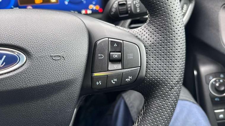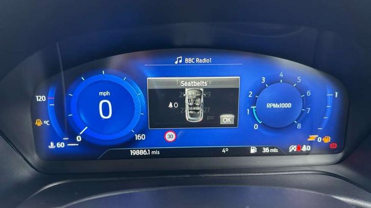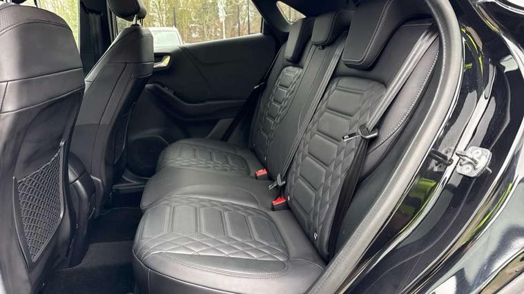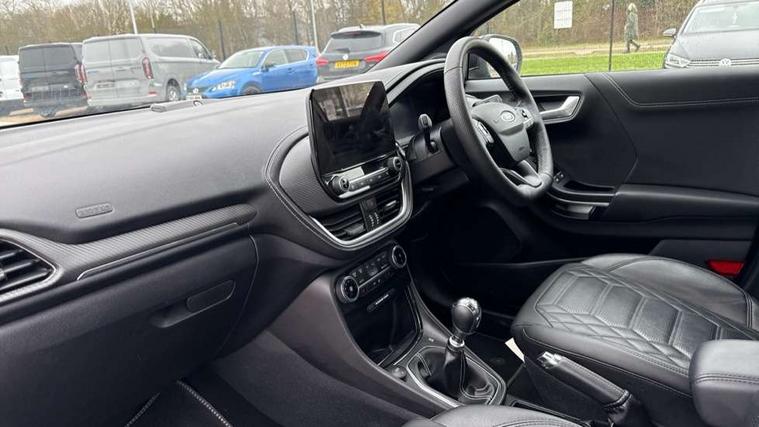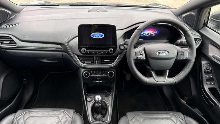 Driver impairment monitor, Emergency call service, Ford easy fuel, Front and rear parking sensors, Full digital 12.3" instrument cluster, Lane keeping aid with lane departure warning, Power assist steering, Selectable drive modes(Normal, Eco, Sport, Slippery and Trail), Speed sign recognition, Sport suspension, Automatic headlights with auto high beam, Automatic rain sensing wipers, Bodyside chrome styling, Fixed LED signature headlamps, Front fog lamps, Gloss black with chrome elements on front and rear bumpers, High chrome waistline, LED daytime running lights, LED rear lamps, Power foldable heated door mirrors with puddle lamps and puma logo protection, Privacy glass to side rear windows and tailgate glass, Quickclear heated windscreen, Rear side wing doors, Rear wiper, Third brake light, Vignale body styling kit with unique grille and large body colour rear spoiler, 3 seat bench in 2nd row, Centre console with armrest and stowage, Ford megabox extended bootspace, Front and rear floor mats, Front and rear head restraints, Heated steering wheel and heated front seats, Manual 4 way driver seat adjust with lumbar adjustment and massage function, Manual 4 way passenger seat adjust with lumbar adjustment and massage function, Premium sensico leather upholstery with metal grey stitching, Premium sensico perforated flat bottomed steering with metal grey stitching, Premium sensico wrapped instrument cluster, Single front passenger seat, Wireless charging pad with electronic air temperature control (EATC), B&O Premium Audio system + Ford SYNC 3 navigation pack - Puma, Driver assistance pack with Lane departure warning - Puma, Winter pack - Puma, 3 rear seatbelts, Child safety lock, Electronic stability control (ESC) and hill start assist, Pedestrian/cyclist detection & post-collision braking, Pre collision assist with autonomous emergency braking, Tyre pressure monitoring system (TPMS), Keyless entry and power start button, Thatcham alarm, Carbon look interior deco spears,
