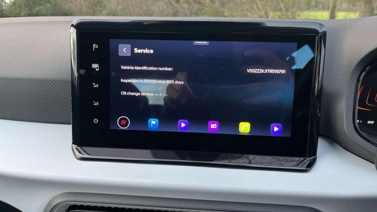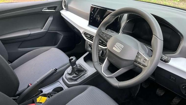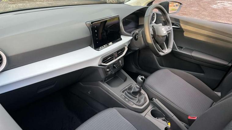 'Lights On' Reminder warning buzzer, 8" Digital cockpit, 9.2" touchscreen navigation system with type C USB socket, Voice control and DAB/AM/FM radio, Auto start and stop system, Bluetooth audio streaming with handsfree system, Cruise control, Digital clock, E-call, Full link smartphone integration with mirror link, wireless apple carplay, Google android auto + USB Type C cable for apple and android devices, Lane assist, Low fuel warning light, Outside temperature gauge, Power Steering, Rear parking sensor, Seat connect plus with safety, service, remote and online, SEAT logo boot release, Speed limiter, Traffic sign recognition, Trip computer, Comfort suspension, Auxiliary input socket, Radio/MP3 player, SD card slot, Steering wheel mounted controls, Anti theft roof antenna, Body colour bumpers, Body colour door handles, Body colour door mirror caps, Dimming interior rear view mirror, ECO LED automatic headlights and LED daytime running lights, Electric front windows, Electric headlight adjustment, Electrically adjustable door mirrors, Front/rear fog lights, LED tail lights, Rain sensor, Rear side wing doors, Rear wiper, Third brake light, 3 seat bench in 2nd row, 60/40 split folding rear seat, Air conditioning with dust and pollen filter, Chrome interior detailing and grey headlining, Cloth upholstery, Comfort seats, Front courtesy lights, Front cupholders x 2, Front reading lights, Gear shift indicator, Glovebox, Grey interior air vents, Height adjustable front and rear headrests (five), Height adjustable front seats, Height/reach adjust steering wheel, Illuminated boot, Instrument lighting with brightness control, Isofix, Leather multifunction flat bottomed sports steering wheel, Passenger sunvisor, Single front passenger seat, Sunvisors with mirror and driver side card holder, Safety and driving pack (S) - Ibiza, 3 point seatbelts on all 3 rear seats, ABS, Active front headrests, Child locks on rear doors, Electronic stability control, Energy recovery system, Front assist forward collision warning and autonomous emergency braking, Front driver and passenger side airbags with curtain airbag and front passenger airbag deactivation, Hill hold control, Multi-Collision braking, Seat belt reminder for front and rear seats, Tiredness recognition system, Tyre pressure monitoring system, Electronic engine immobiliser, Locking wheel bolts, Remote central locking + deadlocks, 16" Design machined alloy wheels in Nuclear grey,