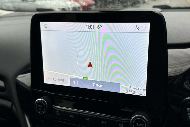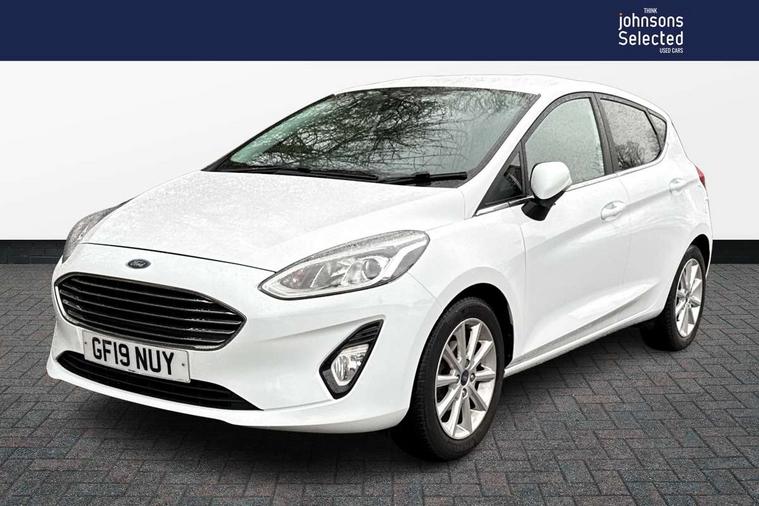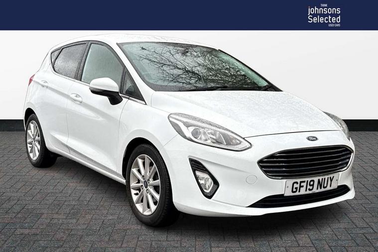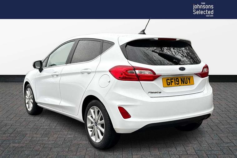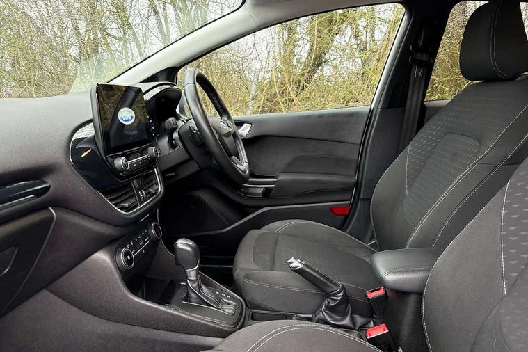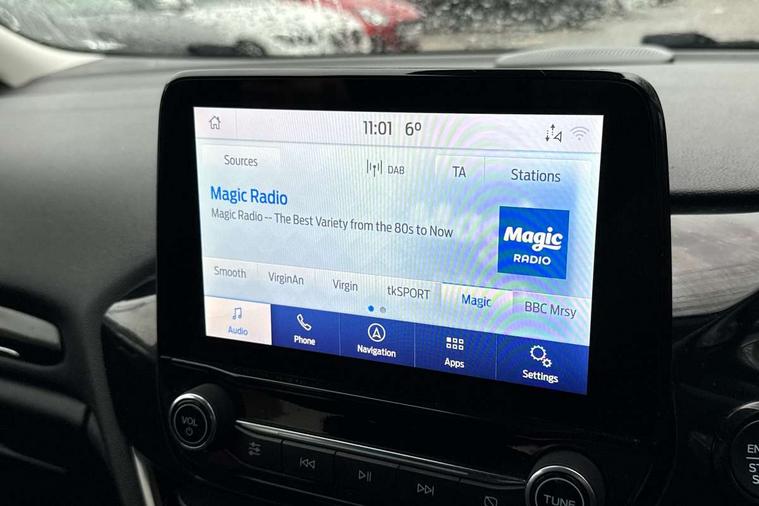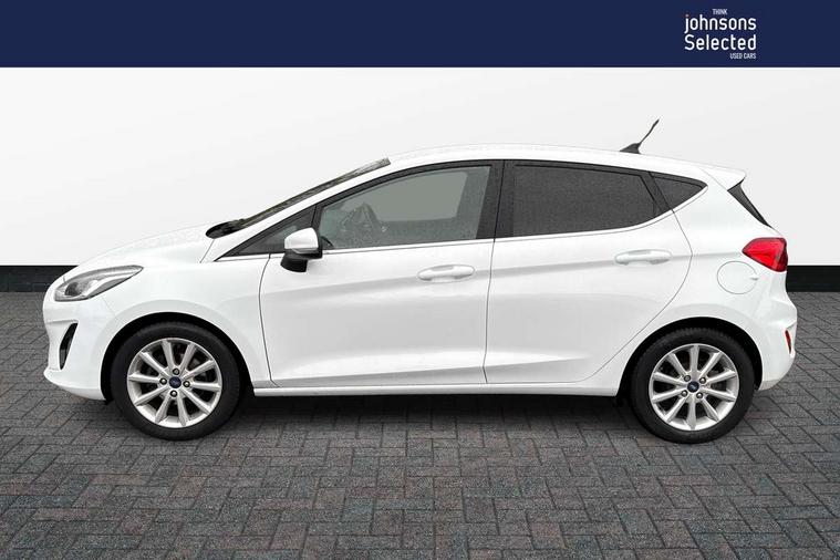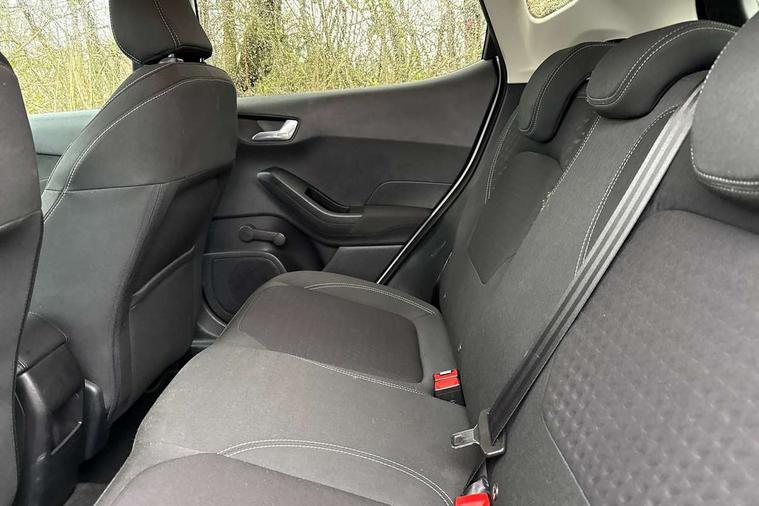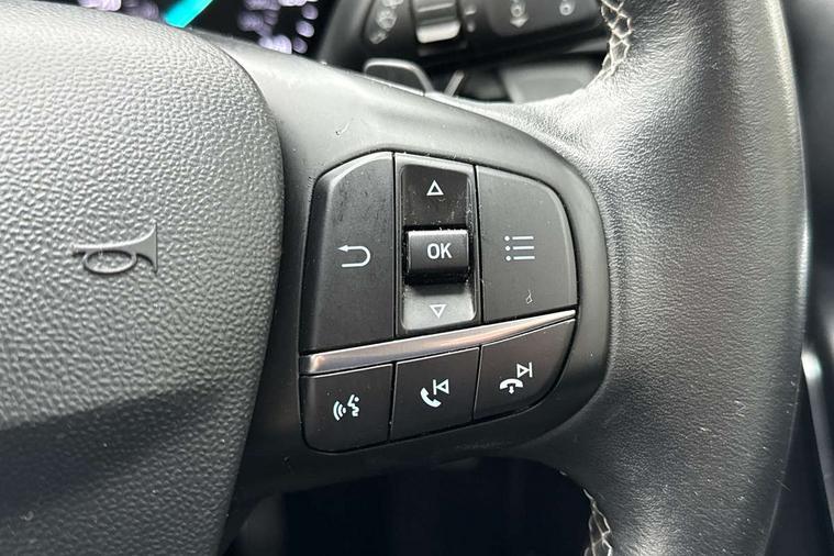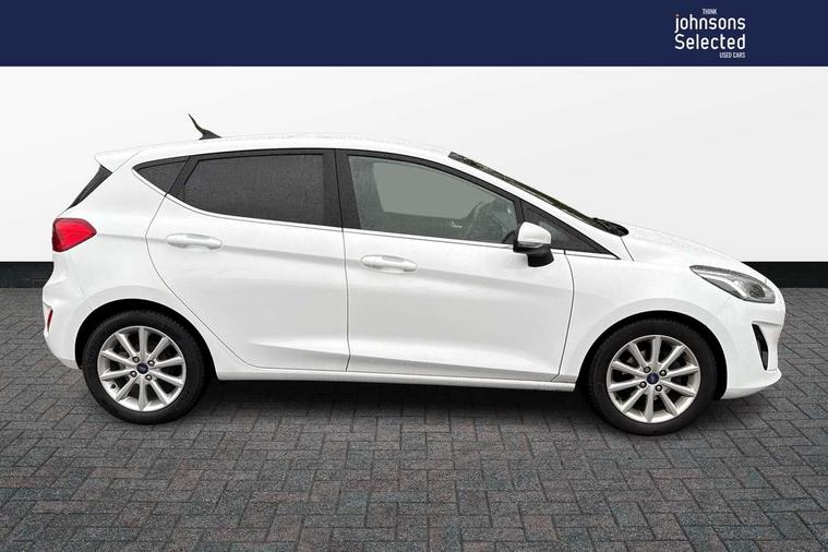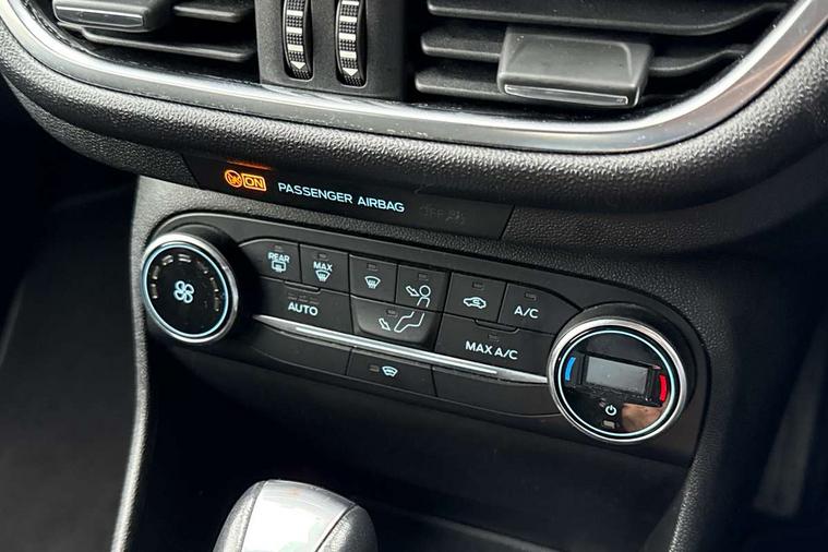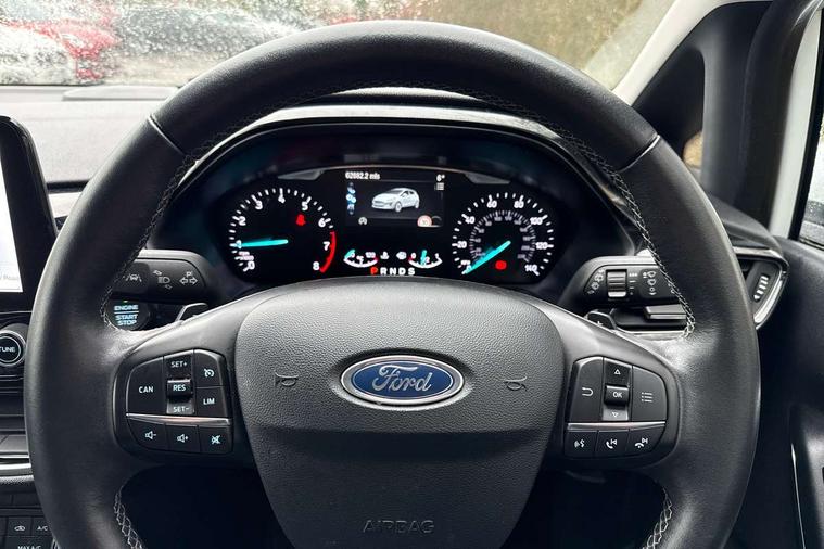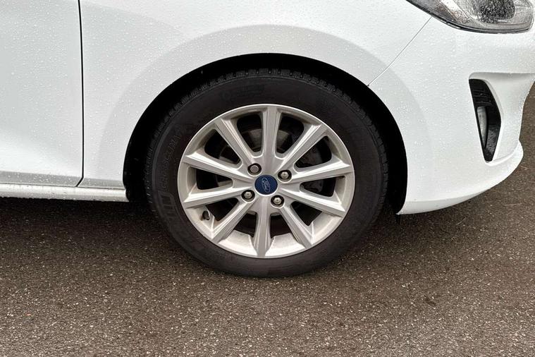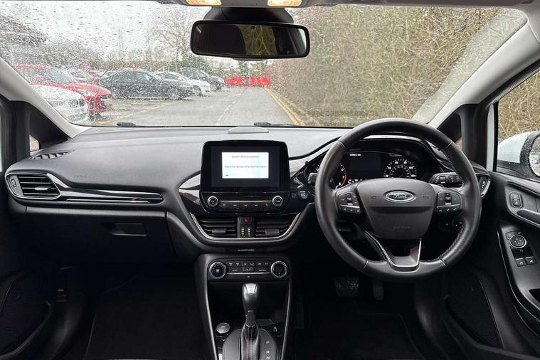 Bluetooth system, Electric power steering, Ford easy fuel, Trip computer, 2 USB ports, Auxiliary input socket, DAB Digital radio, Steering wheel mounted controls, Auto dimming rear view mirror, Automatic headlights, Body colour bumpers, Body colour door handles, Body colour electric adjustable heated door mirrors with integral indicators, Body colour rear spoiler, Chrome beltline trim, Chrome lower window surround, Cornering front fog lights, Electric front windows/one touch facility, LED Night signature to rear lights, LED rear lights, Power foldable door mirrors with puddle lights, Quickclear heated windscreen, Rain sensing wipers and auto dimming rear view mirror, Rear privacy glass, Rear wiper, Tinted glass, Upper front grille chrome surround, 12V Accessory socket in centre console, 3 spoke leather trimmed steering wheel with audio control, 60/40 split folding rear seat, Adjustable head restraints, Ambient lighting, Boot carpet, Centre console with armrest and illuminated cupholders, Chrome inner door handles, Cloth upholstery, EATC - Electronic Auto Temperature control, Footwell illumination, Front and rear velour floor mats, Front map reading lights, Front seat and rear pockets, Height adjustable driver's seat, Illuminated glovebox, Leather gear knob, Leather trimmed handbrake handle, Load area light, Luxury woven headliner, Overhead console with sunglasses holder, Pollen filter, Rake/reach adjustable steering wheel, Rear centre head restraint, Driver assistance pack - Fiesta/Titanium/Titanium X/Active B+O/Active X/ST-Line X, NCAP Pack - Fiesta, 3 point seatbelts on all rear seats, ABS+EBA, Curtain airbags, Driver and passenger airbags, Drivers knee airbag, Electronic stability control with hill start assist, Front passenger airbag deactivation, Front side airbags, Seatbelt warning, Tyre pressure monitoring system, MyKey system, Remote central locking & engine immobiliser, Thatcham Cat.1 alarm,